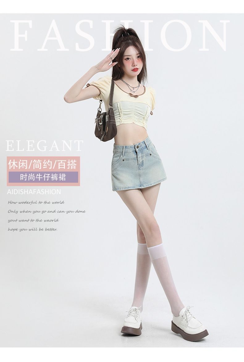 높은 허리 데님 치마 여자 봄 원피스 2025 새로운 A 라인 치마 작은 뜨거운 소녀 반바지 엉덩이 치마스토어 가기