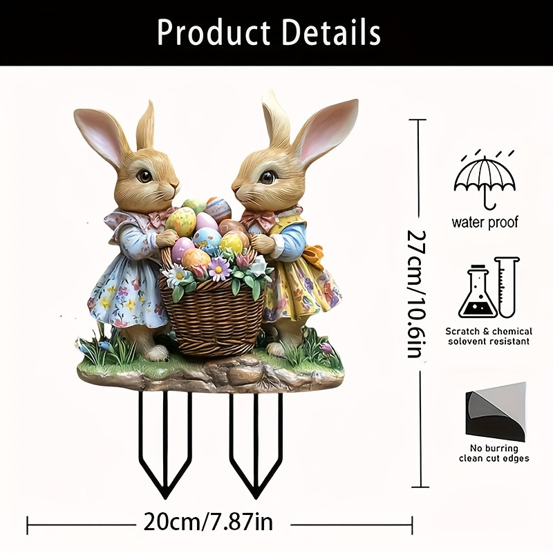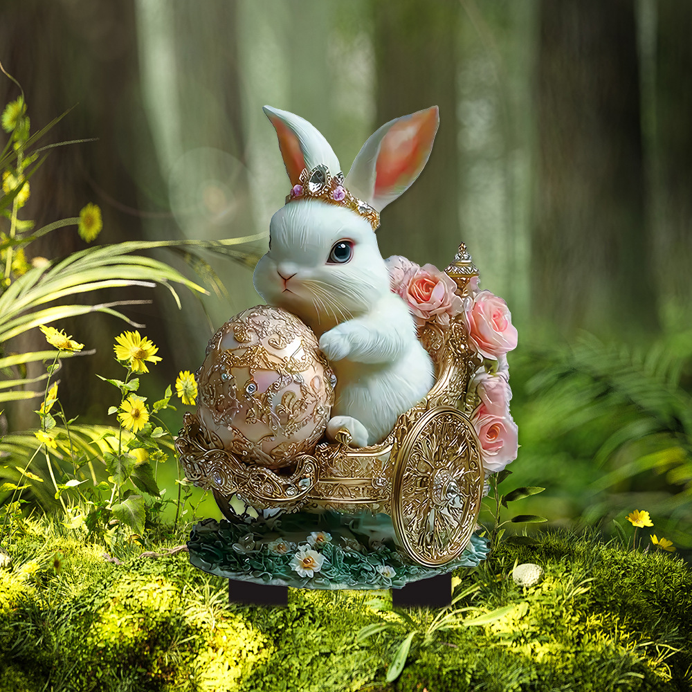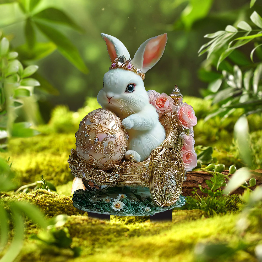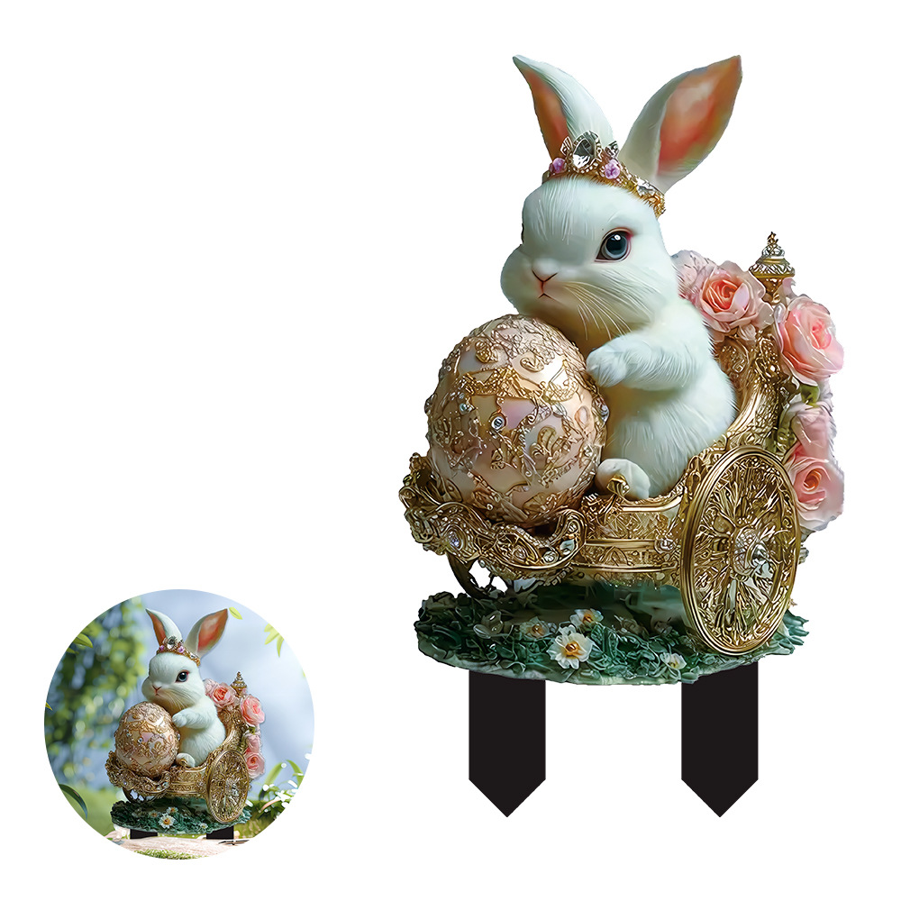 국경 간 만화 토끼 동물 계란 2D 아크릴 방수 야외 안뜰 장식 바닥 삽입 미화 소품