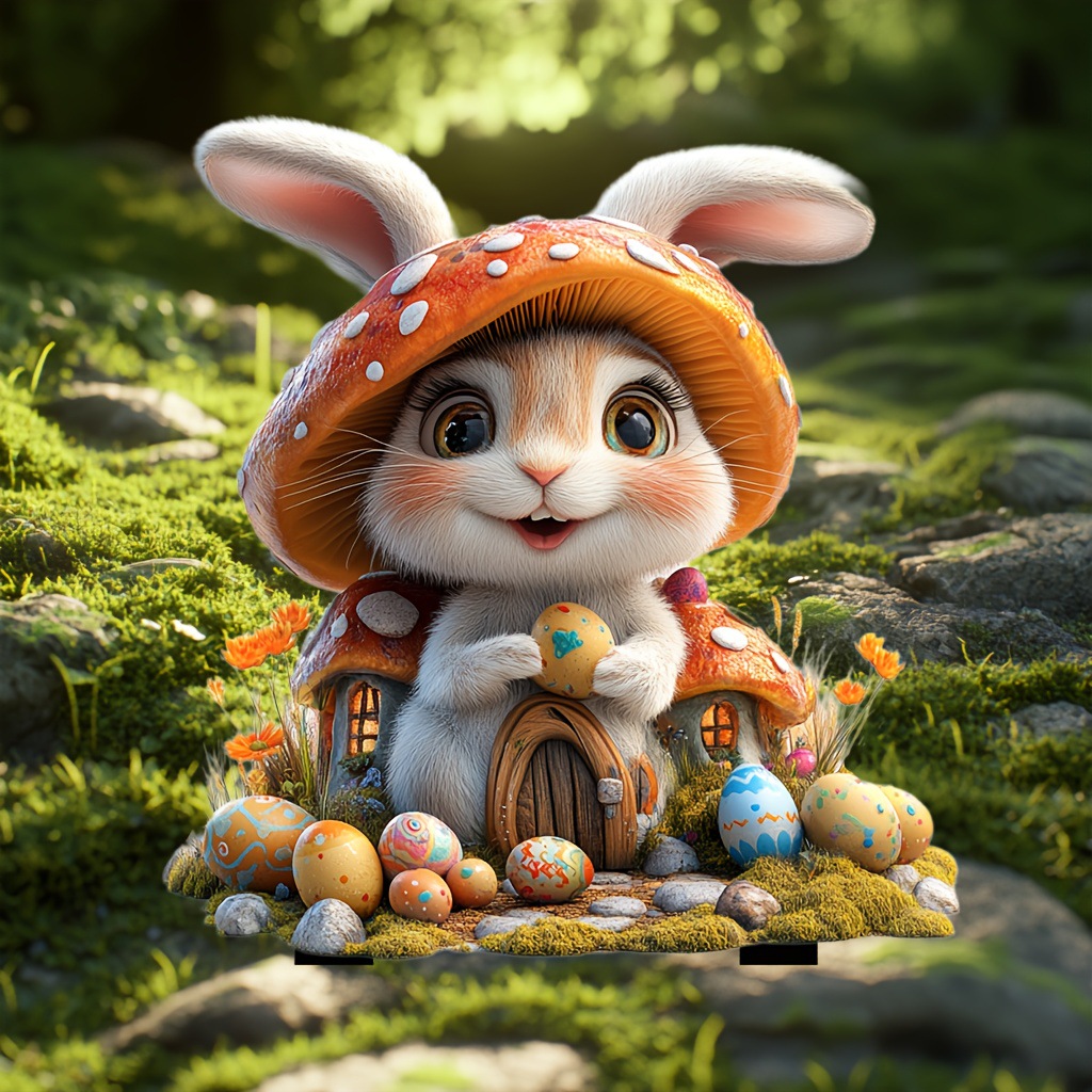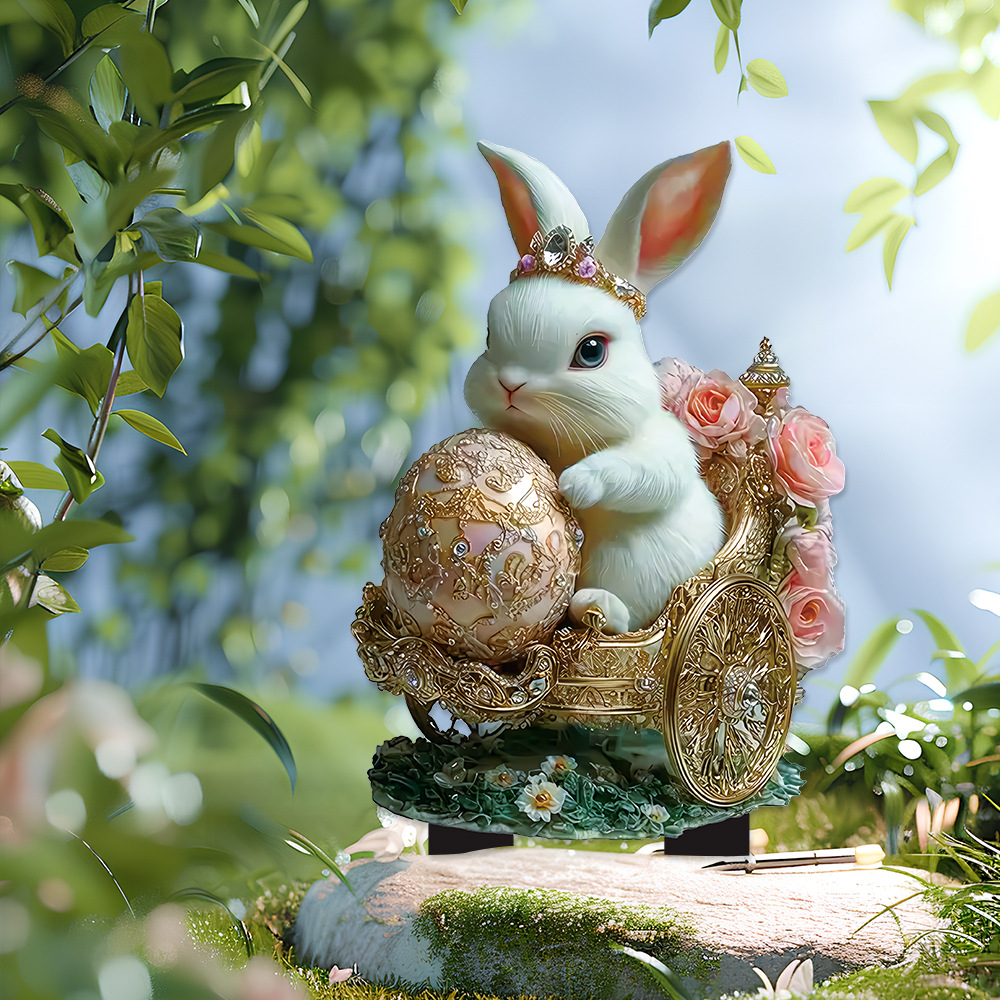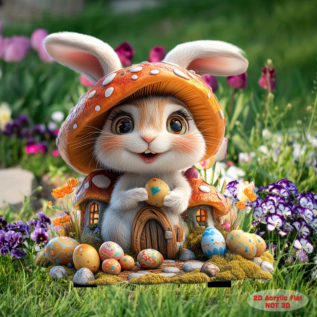 국경 간 만화 토끼 동물 계란 2D 아크릴 방수 야외 안뜰 장식 바닥 삽입 미화 소품