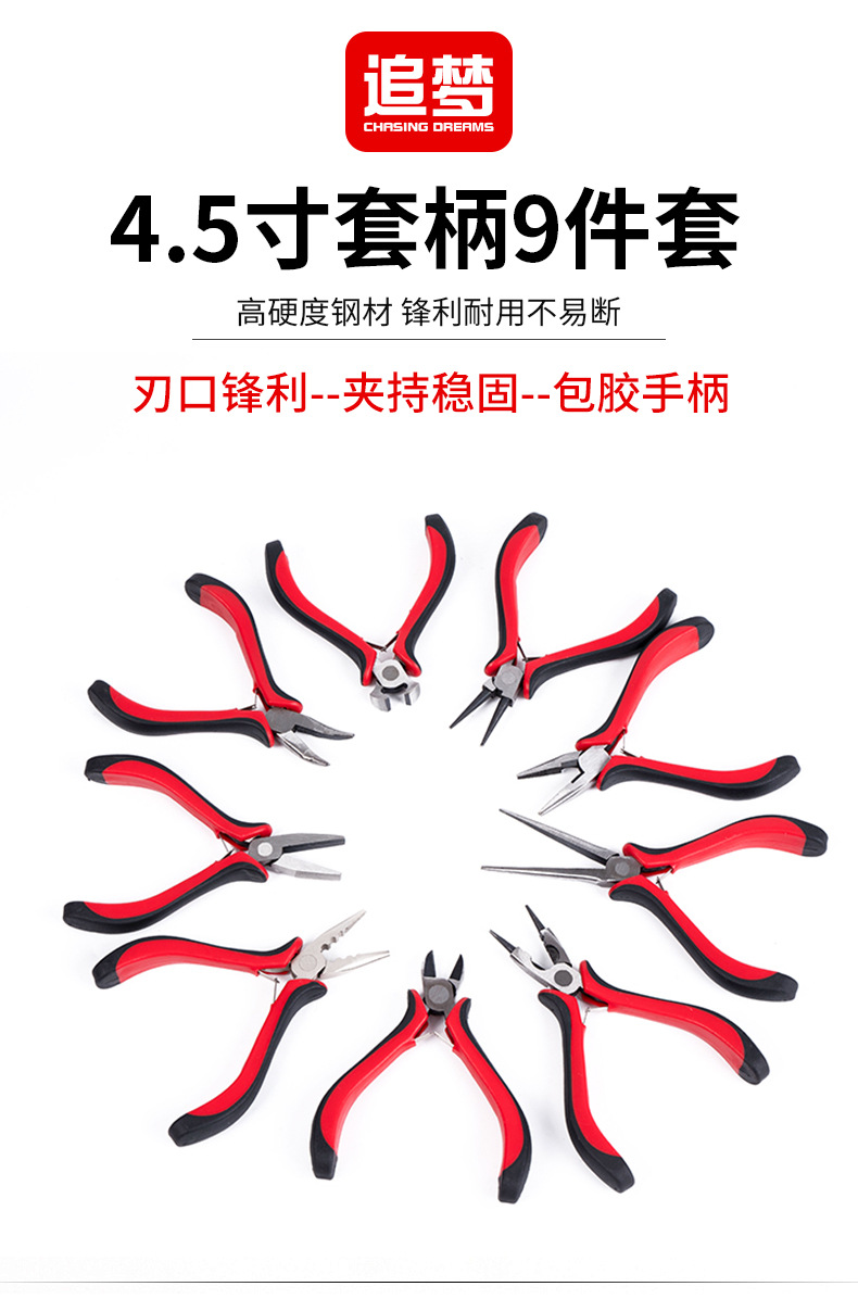빨간색과 검은 색 핸들 9 피스 세트 제조 업체 산업 공급 4.5 인치 펜치 도구 DIY 수제 보석 펜치