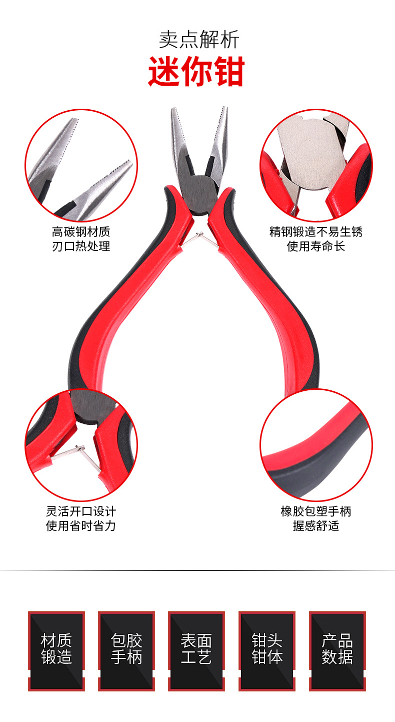 빨간색과 검은 색 핸들 9 피스 세트 제조 업체 산업 공급 4.5 인치 펜치 도구 DIY 수제 보석 펜치스토어 가기