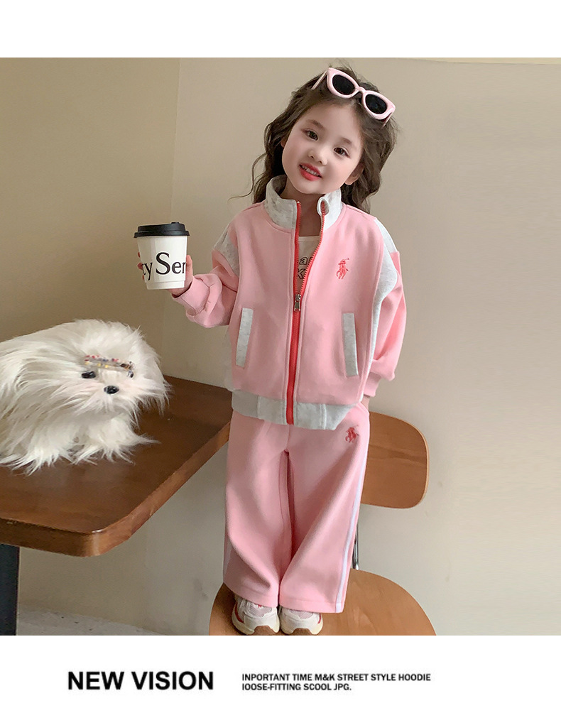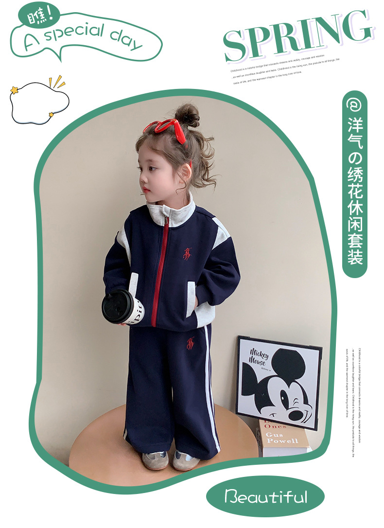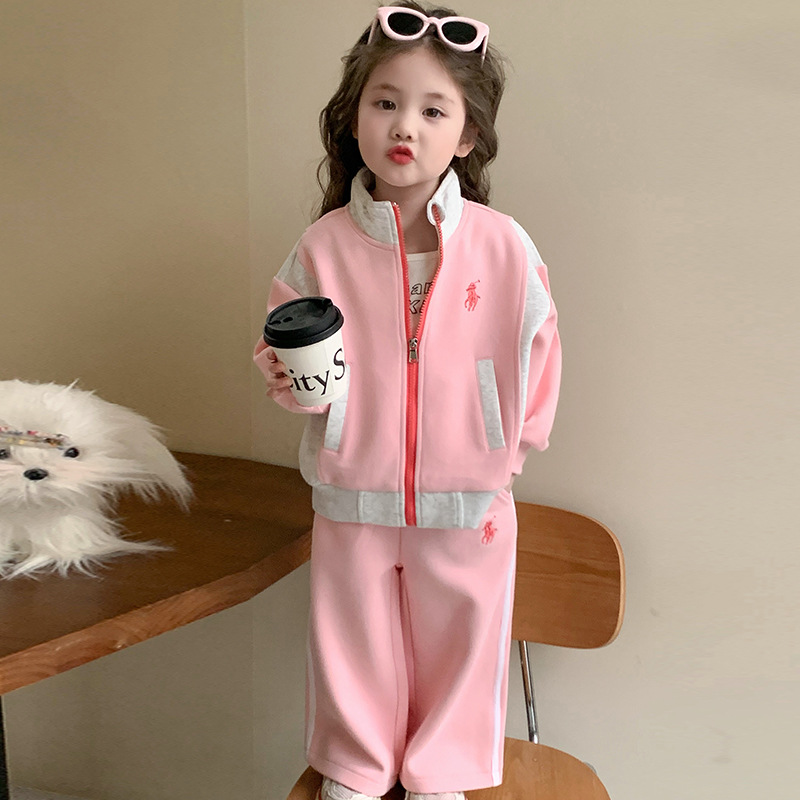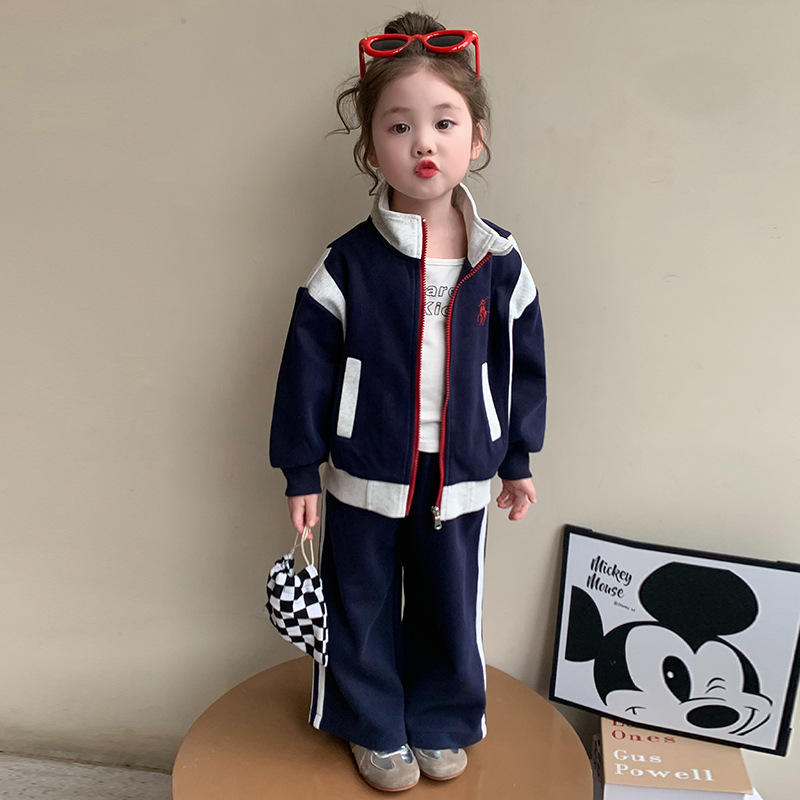 여자 봄 옷 어린이 스포츠 세트 2025 새로운 서양식 아기 한국 카디건 스웨터 캐주얼 투피스 트렌디스토어 가기