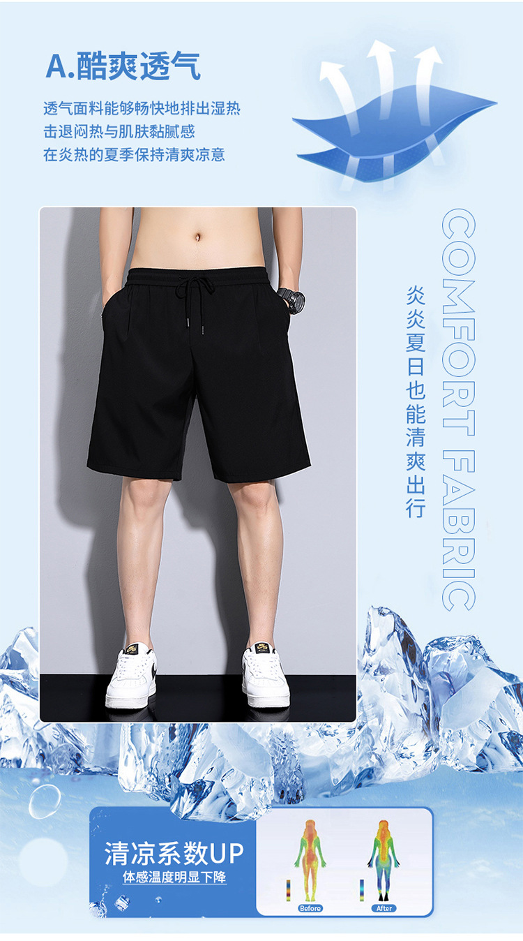 여름 캐주얼 반바지 남성용 새로운 슬림 핏 슬리밍 안티 주름 핫 팬츠 얇은 빠른 건조 아이스 실크 루즈스토어 가기
