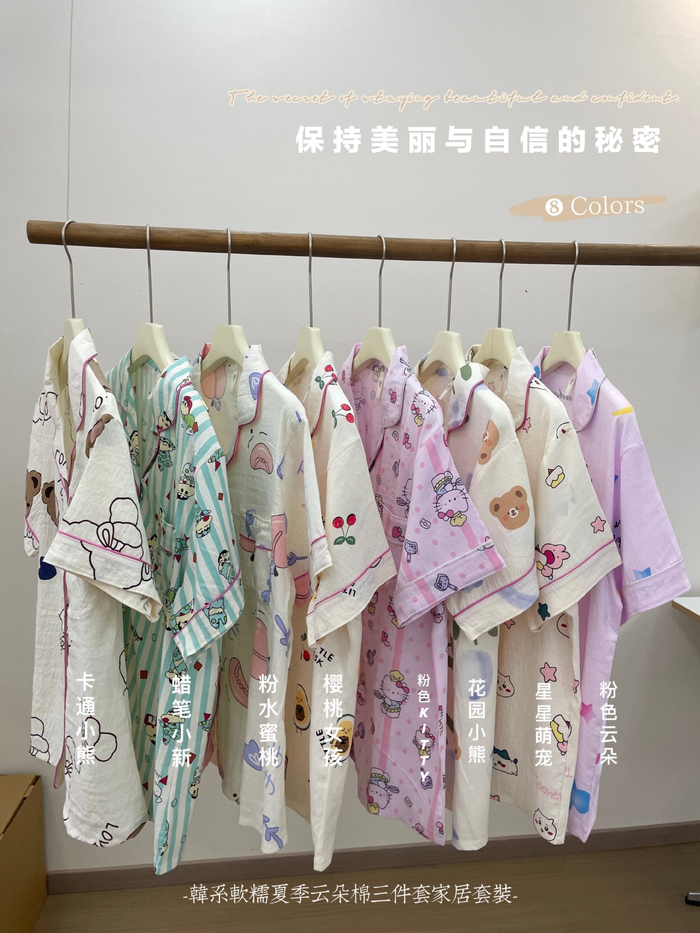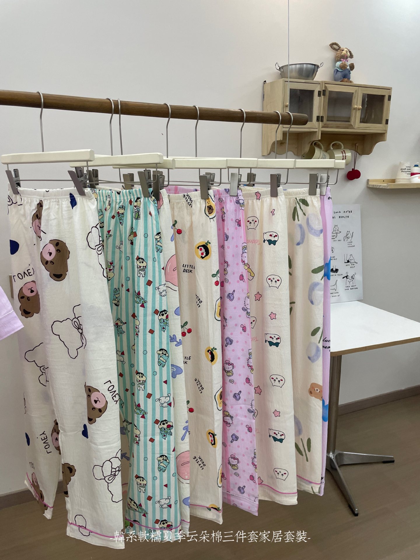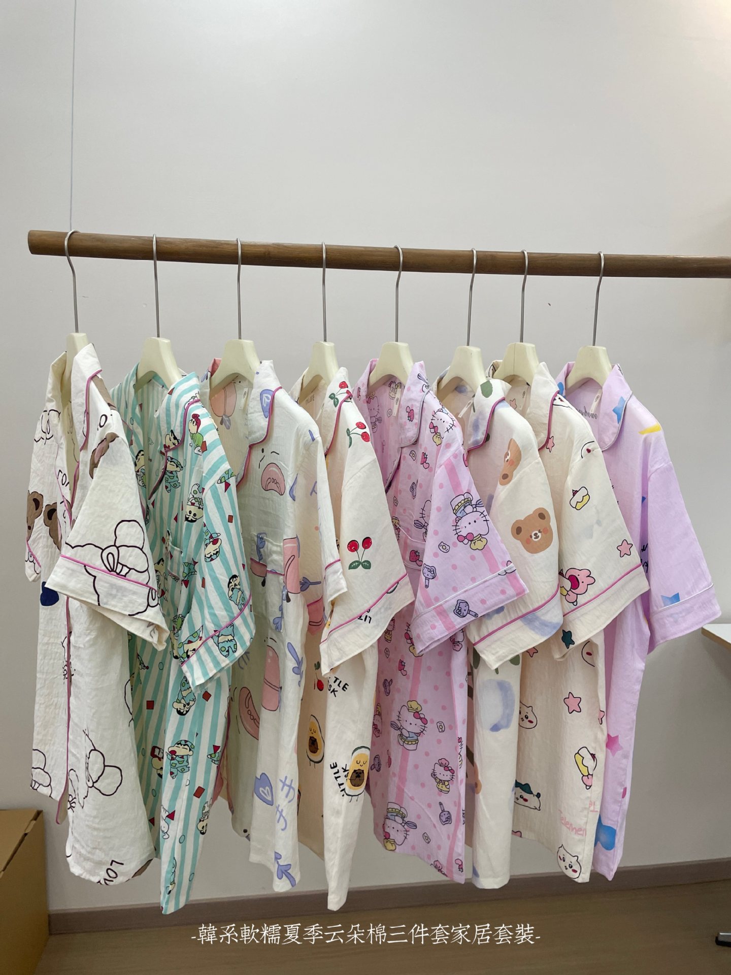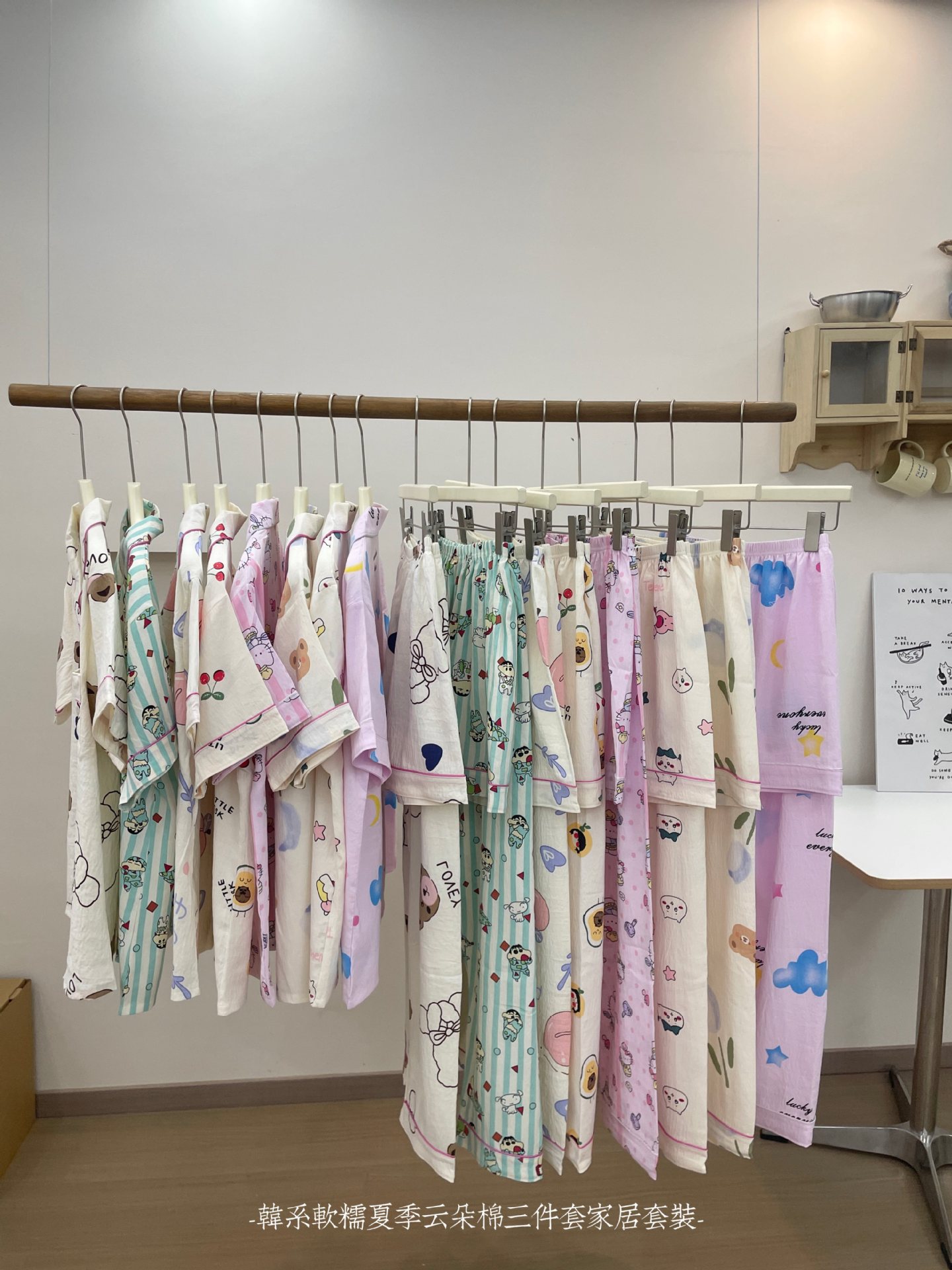 재고 라이브 120g 구름 면 3 조각 잠옷 여성 가을 달콤한 반팔 반바지 바지 홈 옷스토어 가기