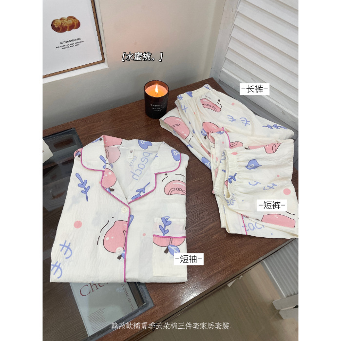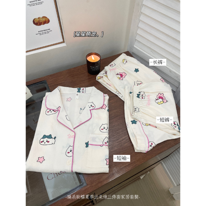 재고 라이브 120g 구름 면 3 조각 잠옷 여성 가을 달콤한 반팔 반바지 바지 홈 옷