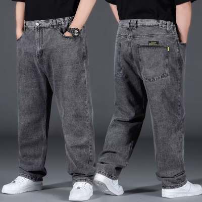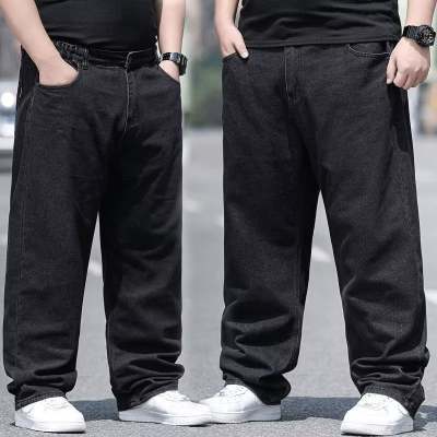 플러스 팻 플러스 여름 지방 남성용 청바지 남성용 루즈 스트레이트 캐주얼 올 매치 지방 사람들의 딥 크로치 착용 방지 남성용 바지 블랙 코튼스토어 가기