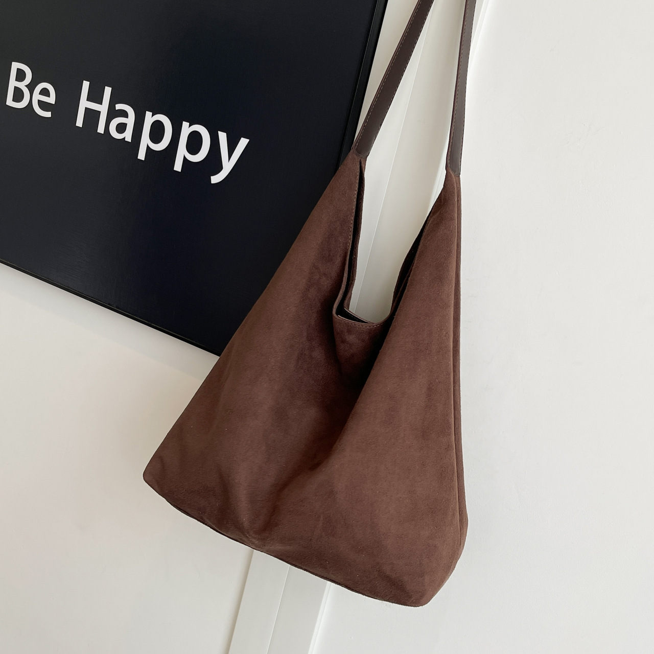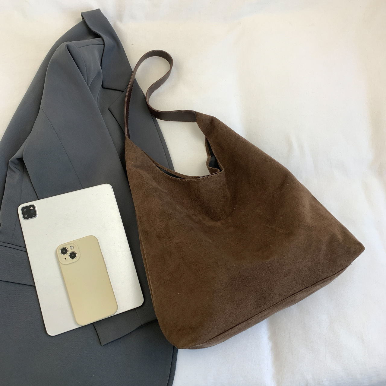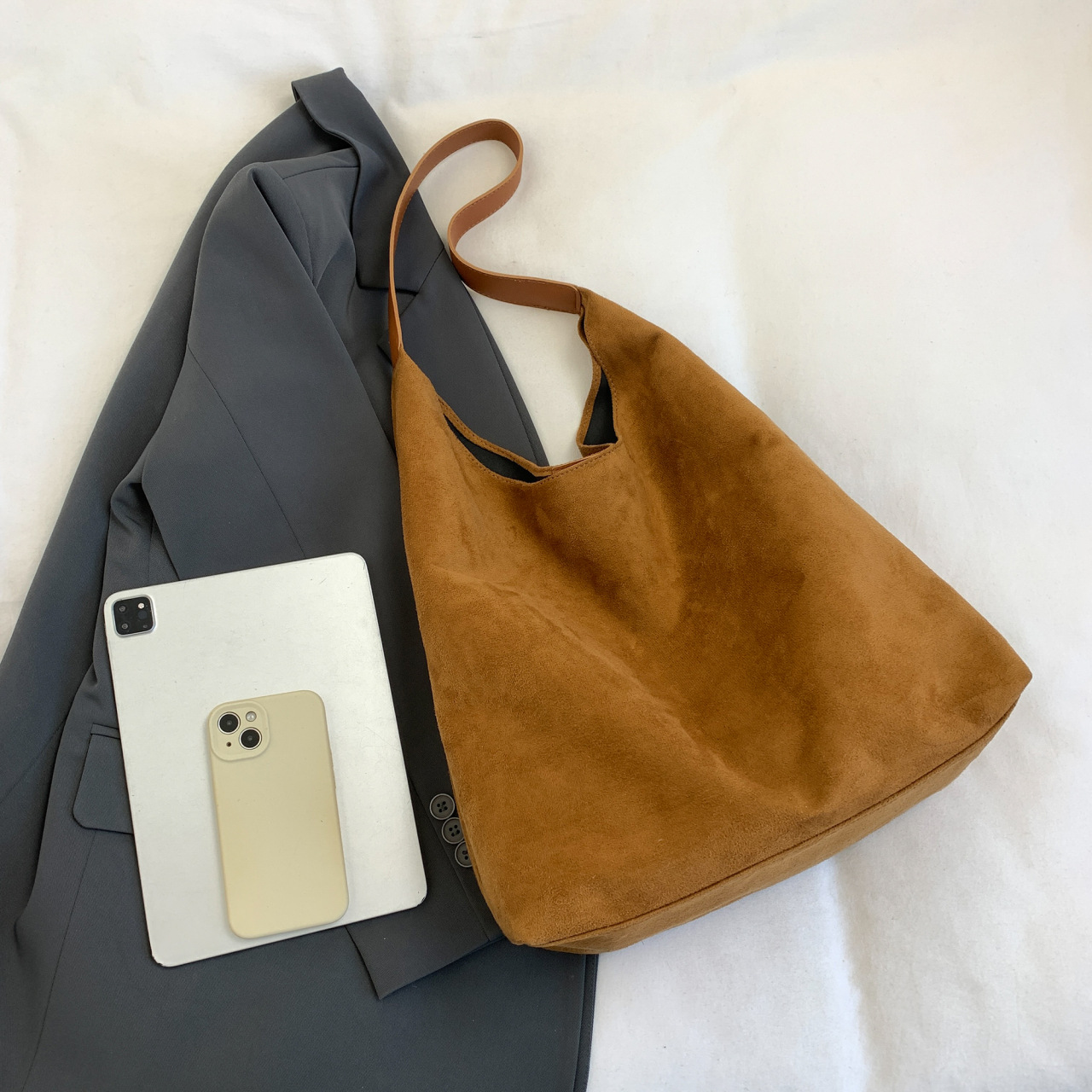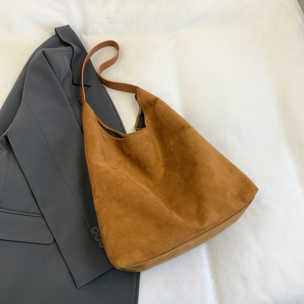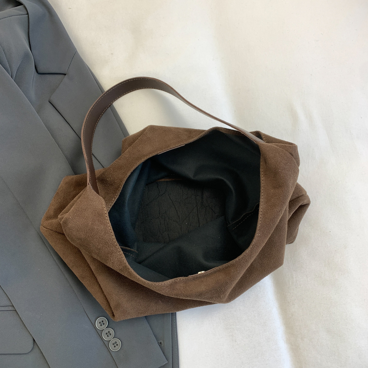 빈티지 캐주얼 숄더 백 여성 2025 새로운 유행 휴대용 버킷 가방 언더암 가방 스웨이드 토트 백스토어 가기