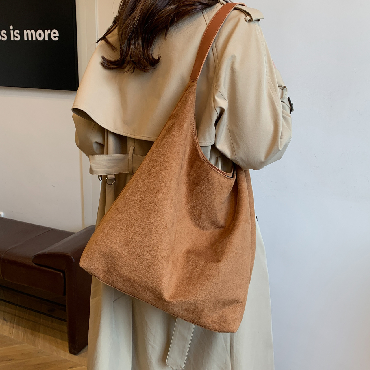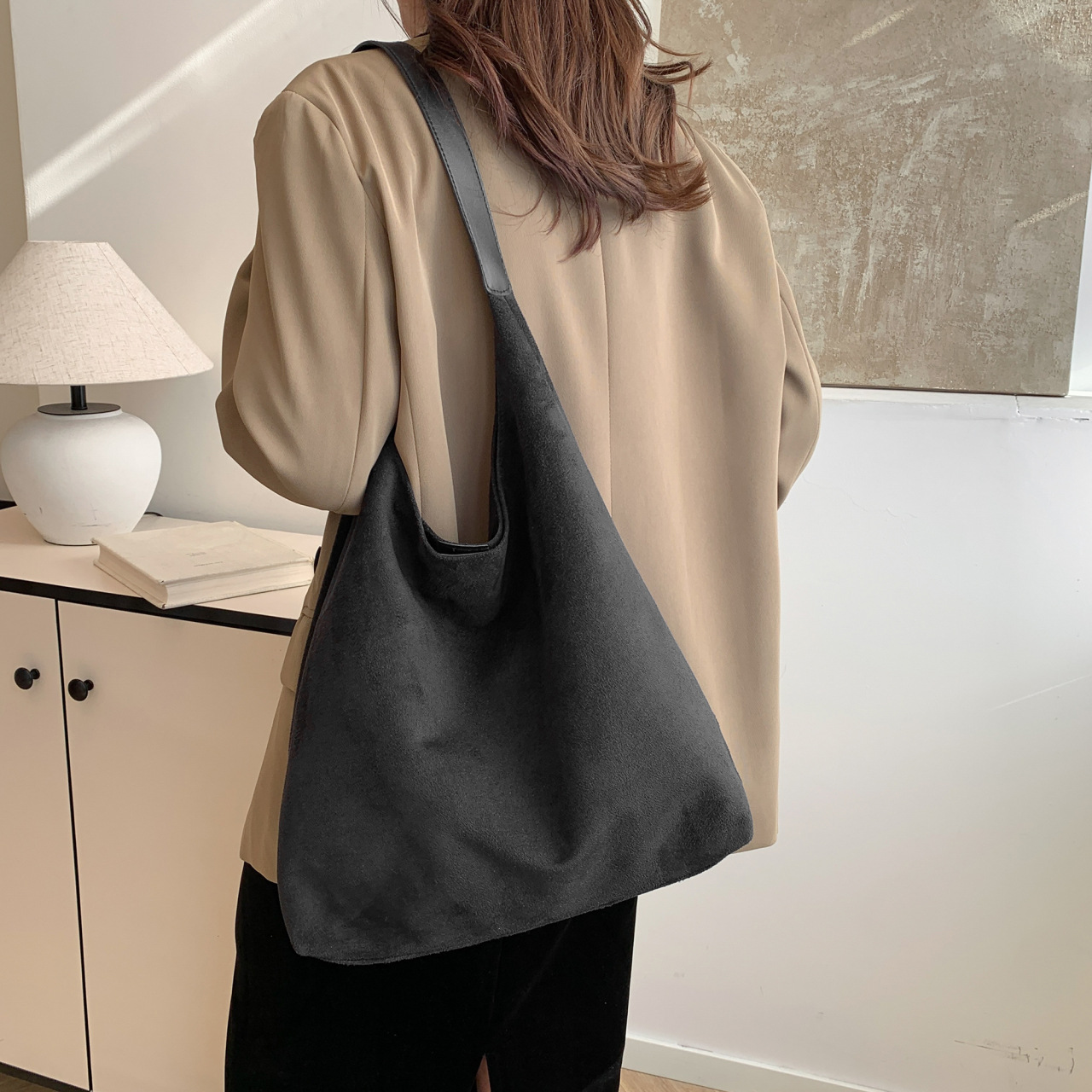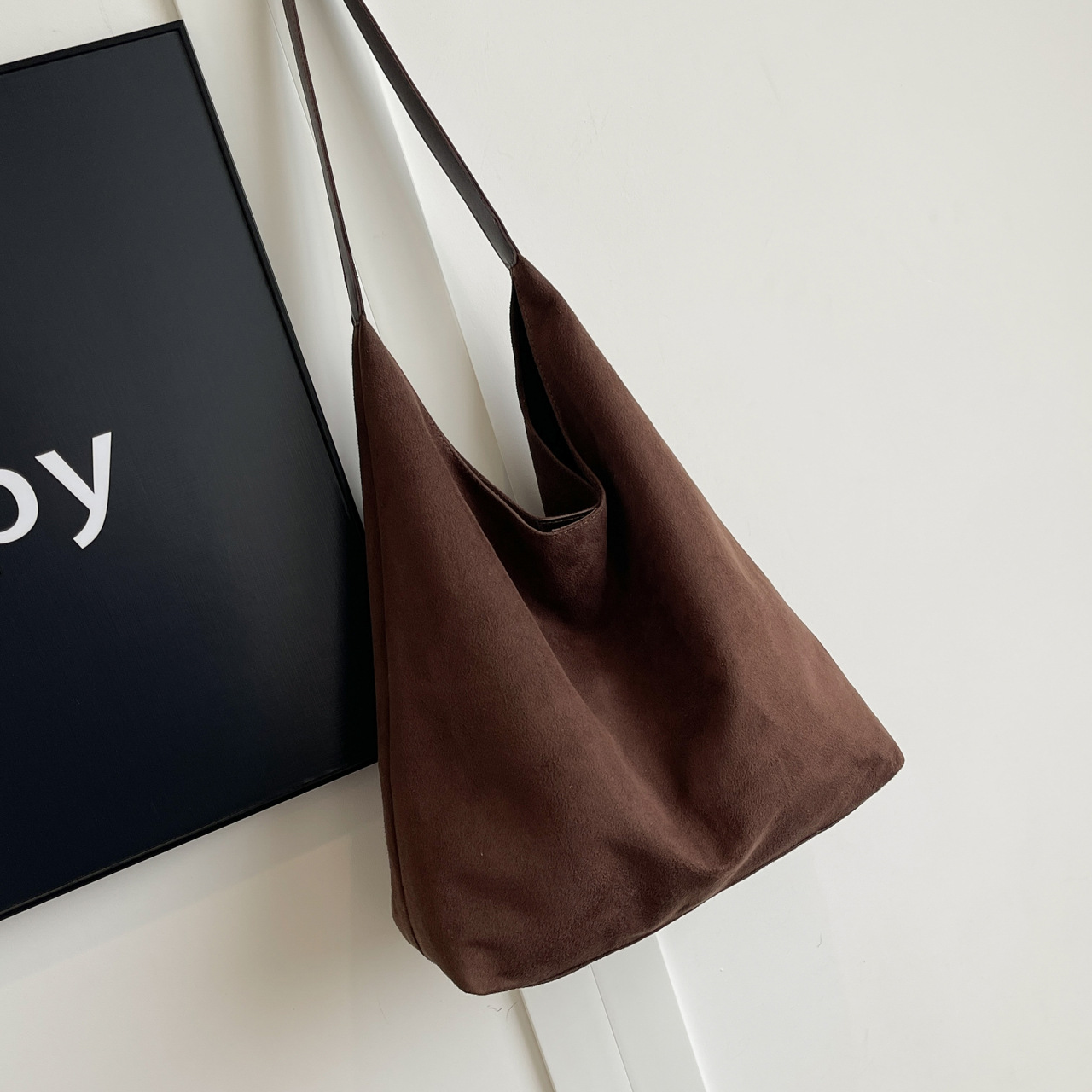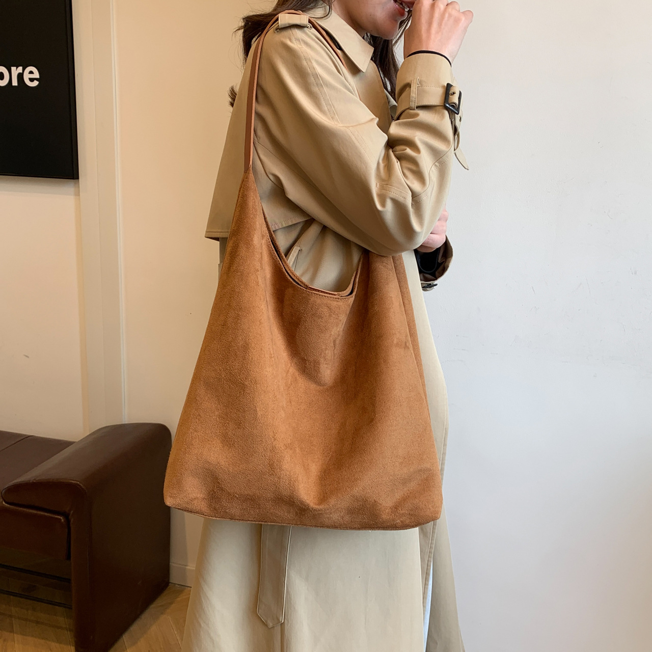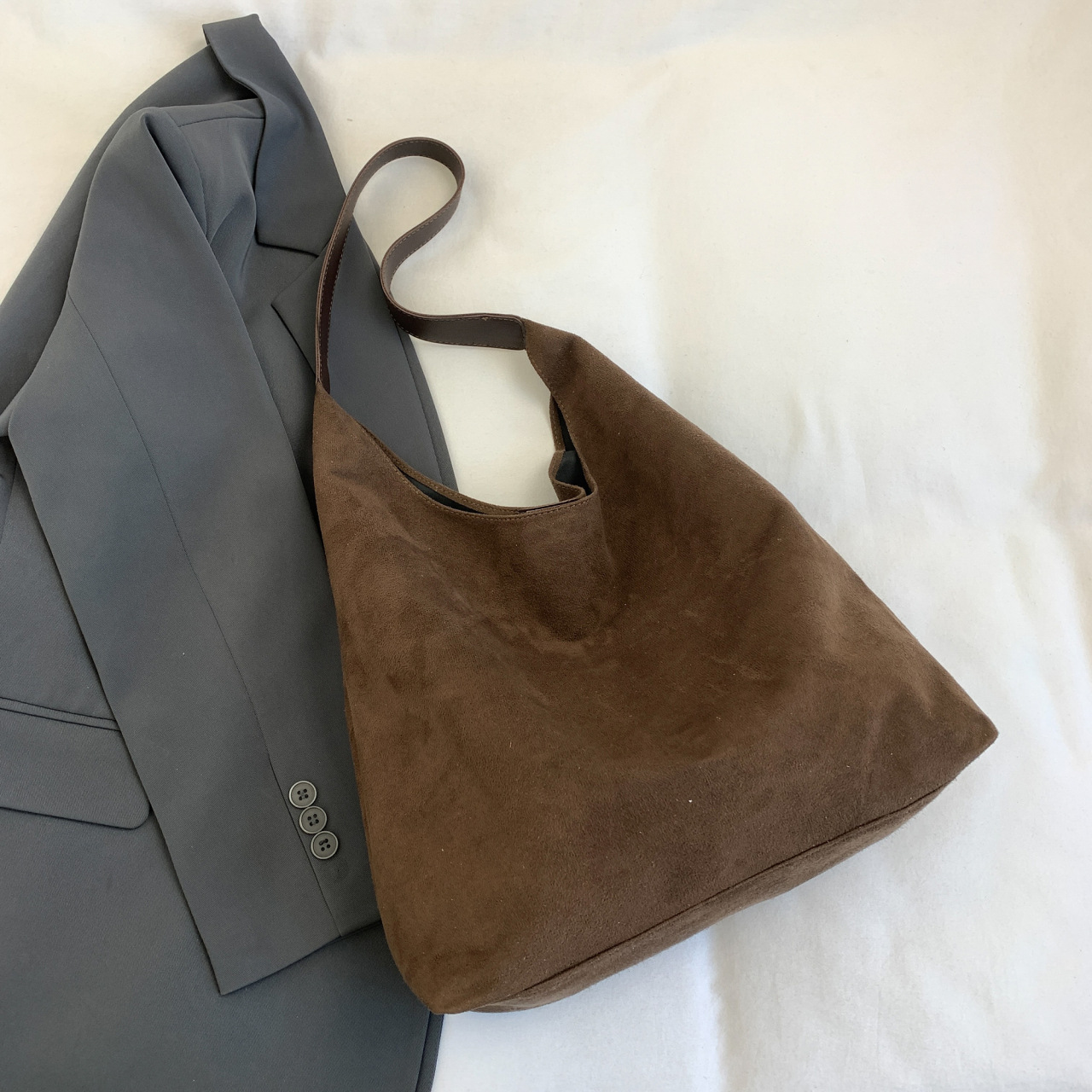 빈티지 캐주얼 숄더 백 여성 2025 새로운 유행 휴대용 버킷 가방 언더암 가방 스웨이드 토트 백스토어 가기