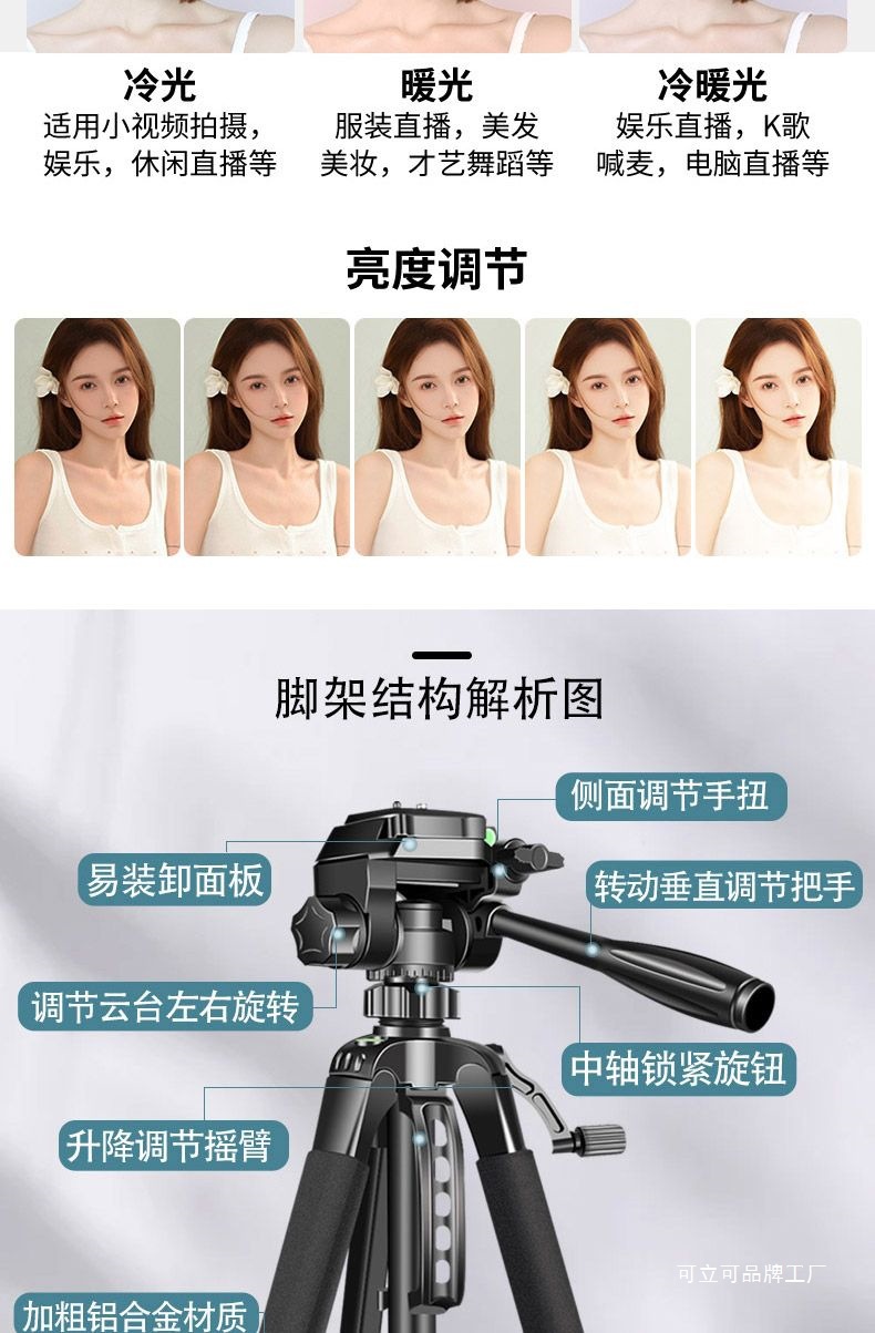 새로운 라이브 방송 플로어 더블 헤드 브래킷 휴대 전화 셀카 전용 야외 삼각대 데스크탑 더블 위치 채우기 조명