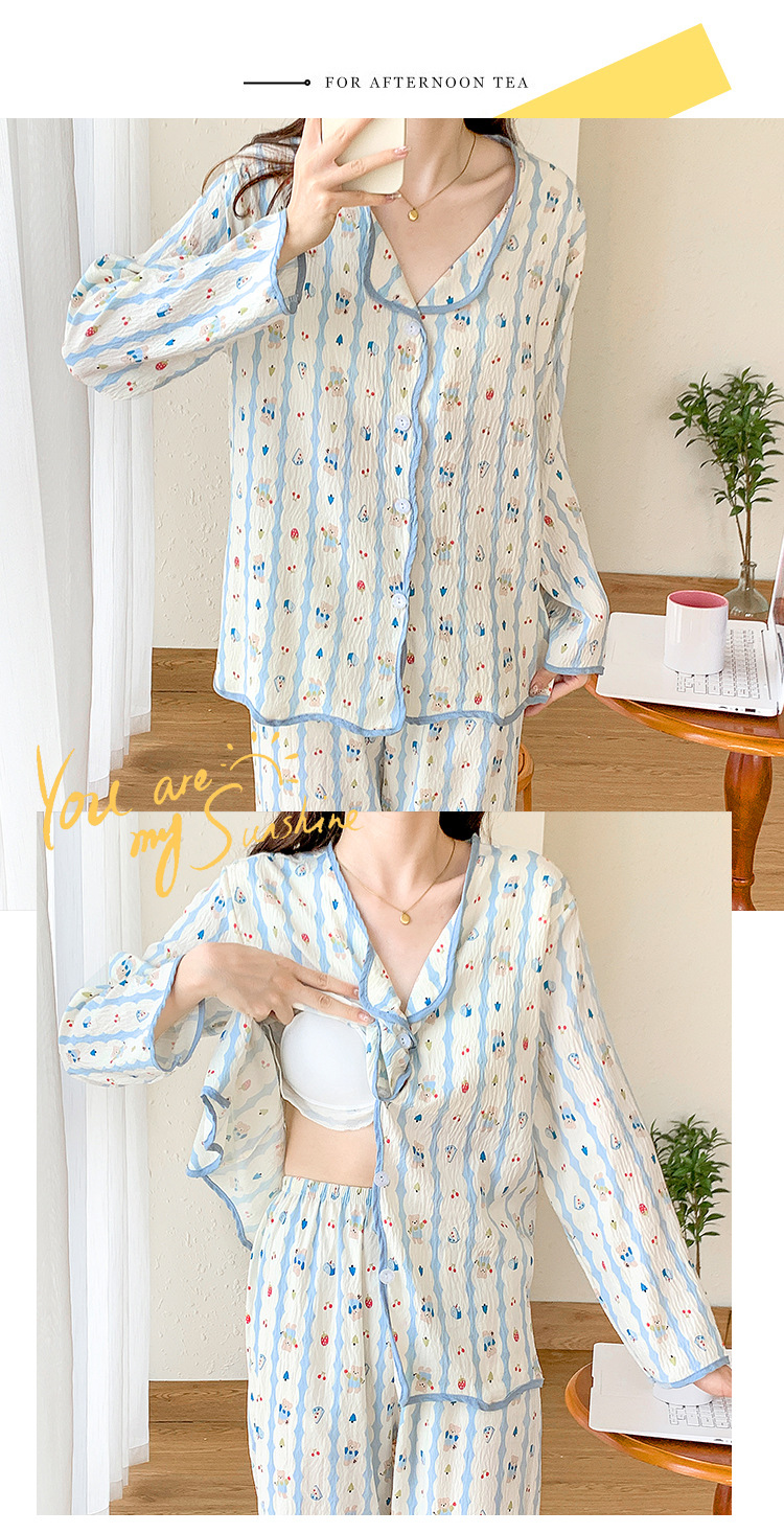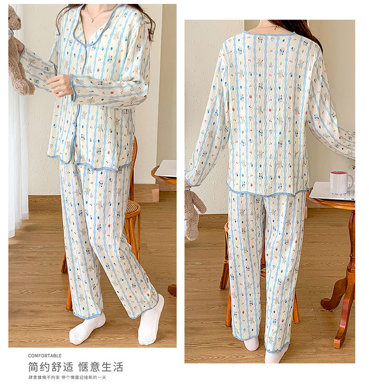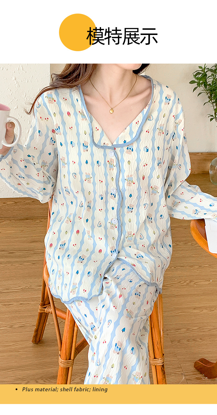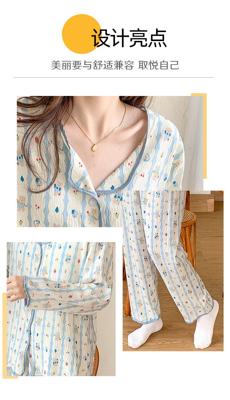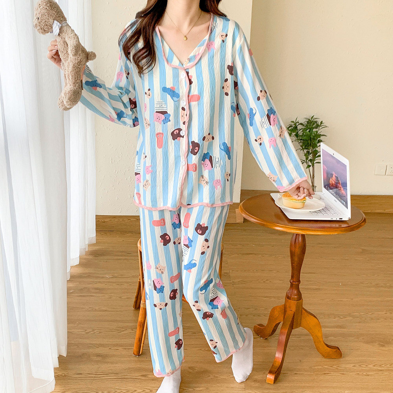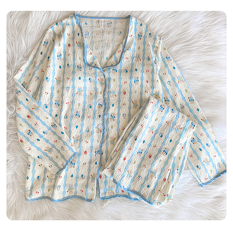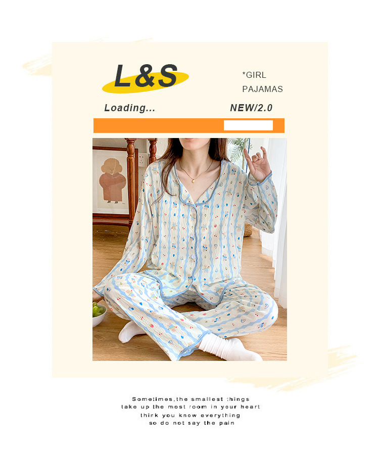 봄 및 가을 긴 소매 바지 구름 장식 달콤한 귀여운 만화 학생 홈 의류 가슴 패드와 여성의 잠옷 세트스토어 가기