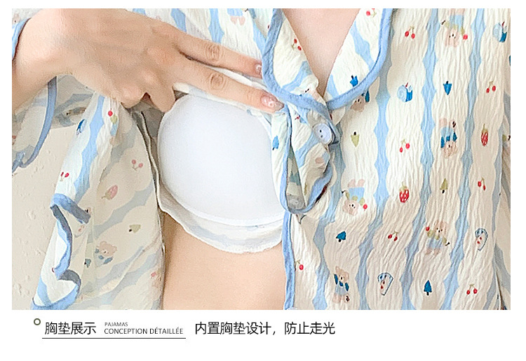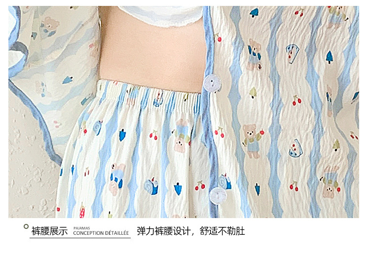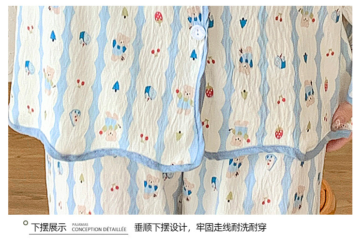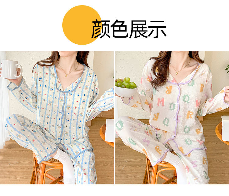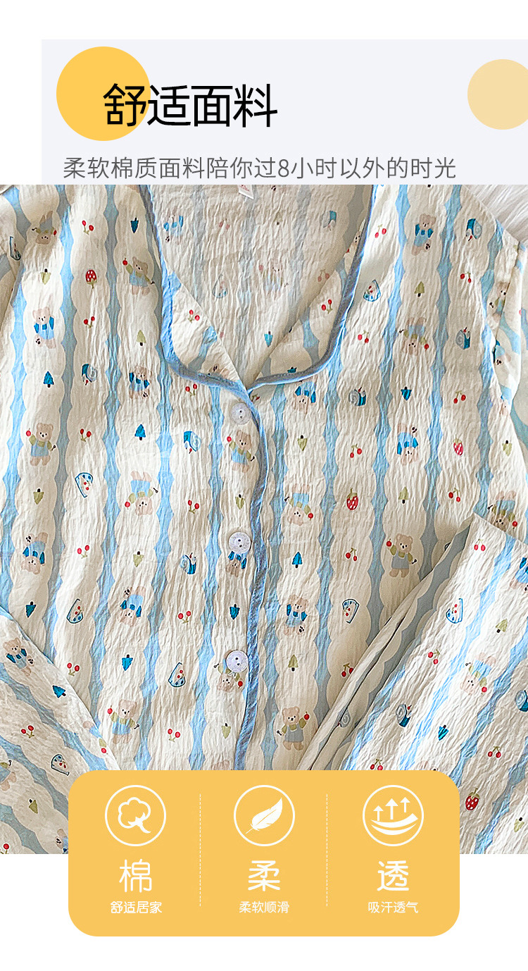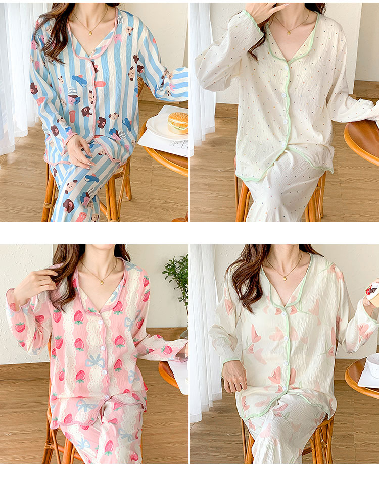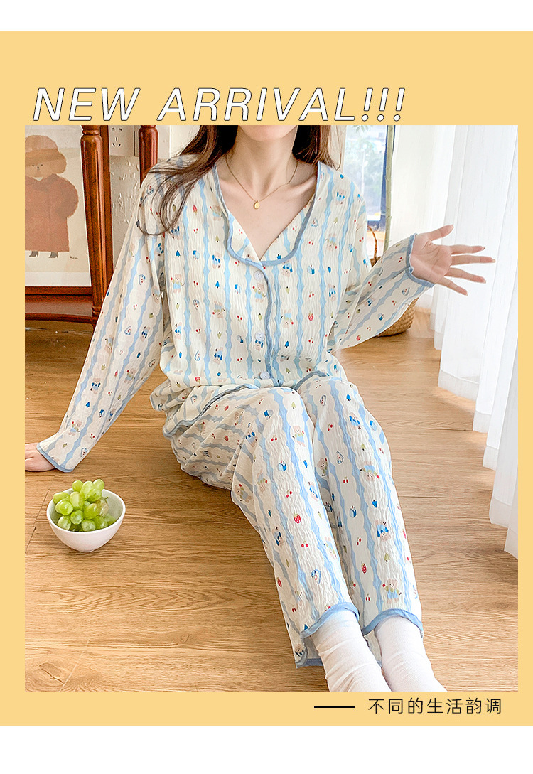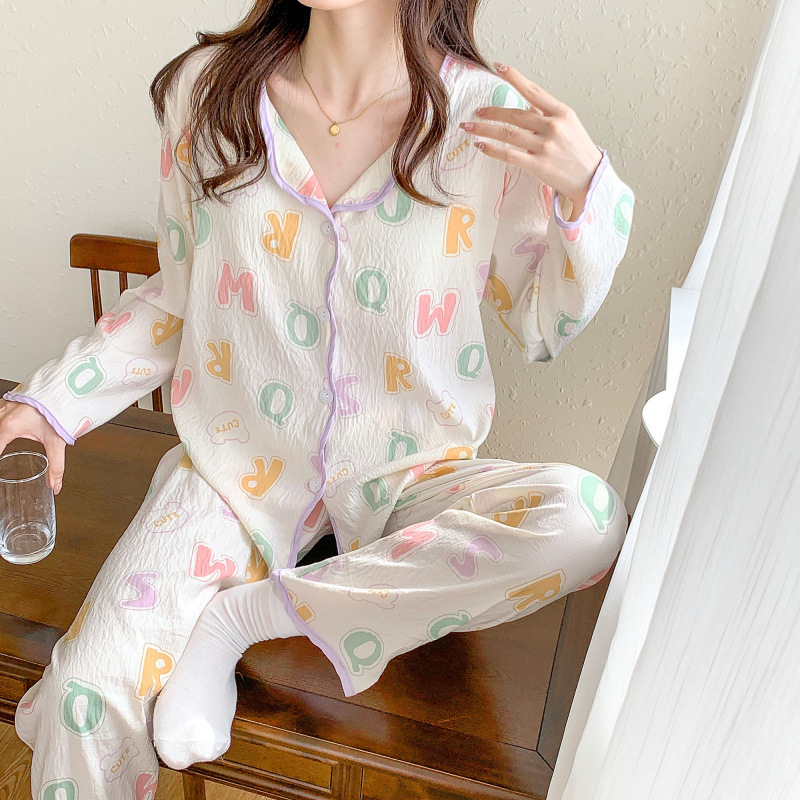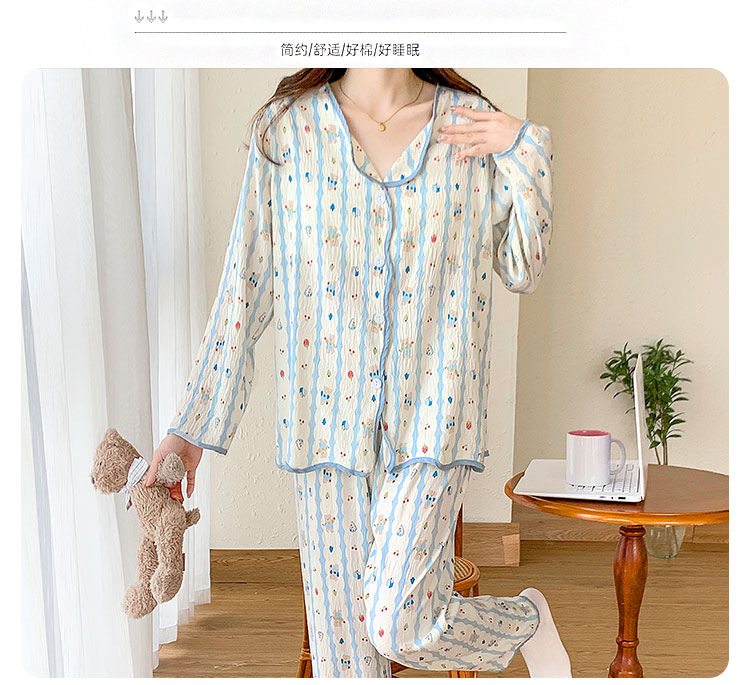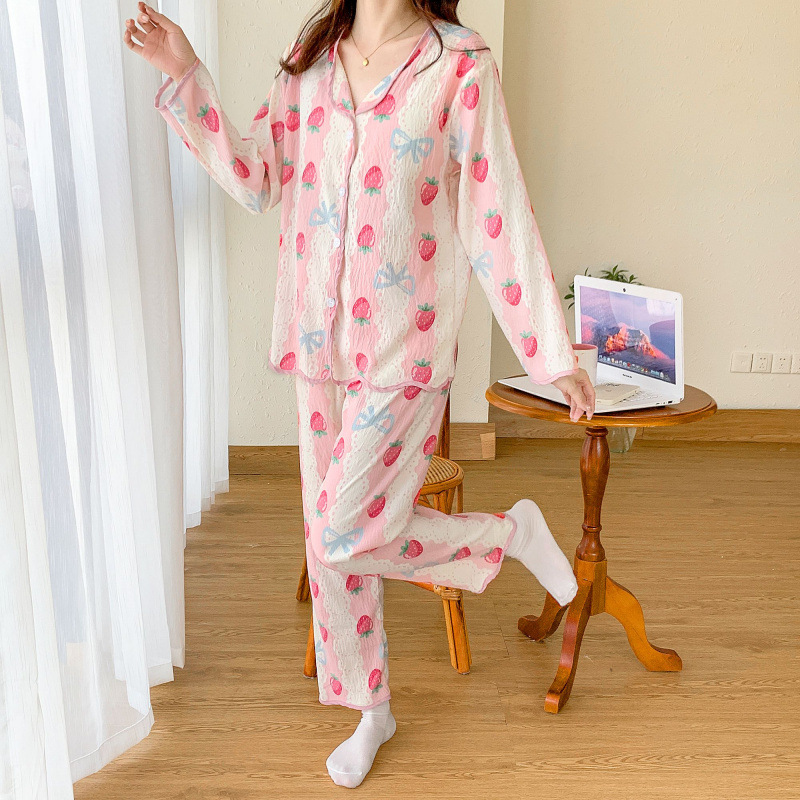 봄 및 가을 긴 소매 바지 구름 장식 달콤한 귀여운 만화 학생 홈 의류 가슴 패드와 여성의 잠옷 세트스토어 가기