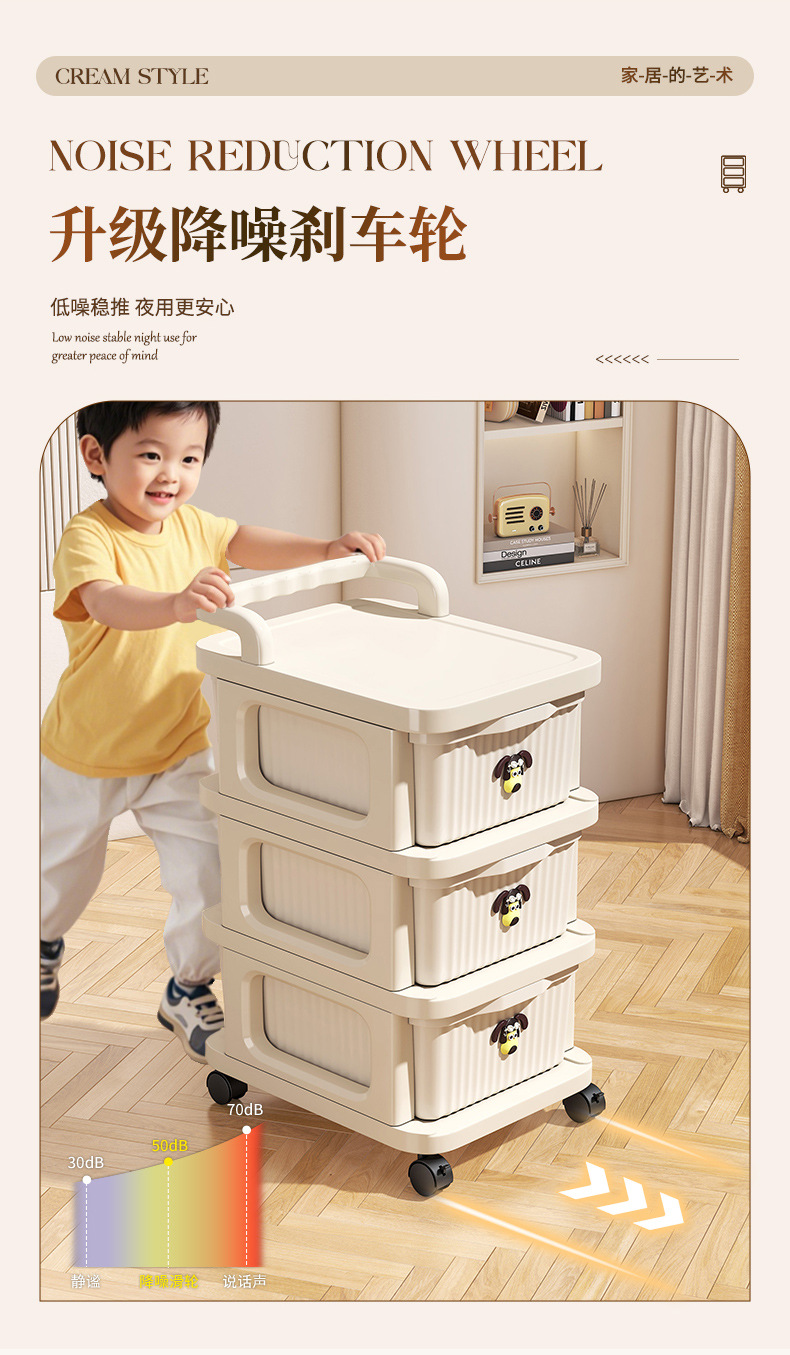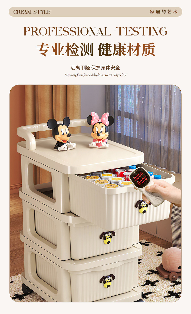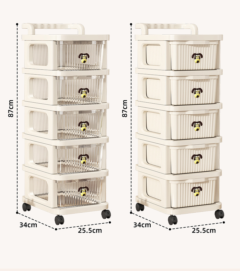 가정용 스낵 장난감 카트 다층 서랍 만화 스타일 잡화 저장 랙 이동식 방진 보관 캐비닛