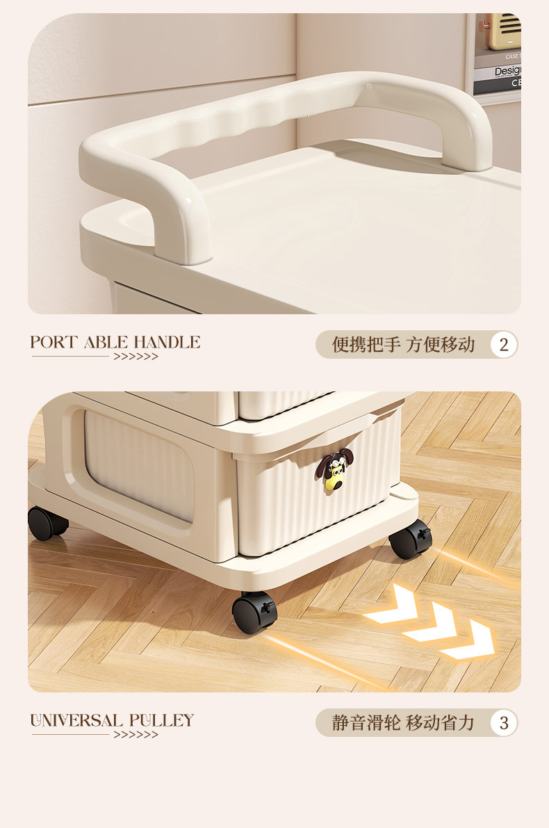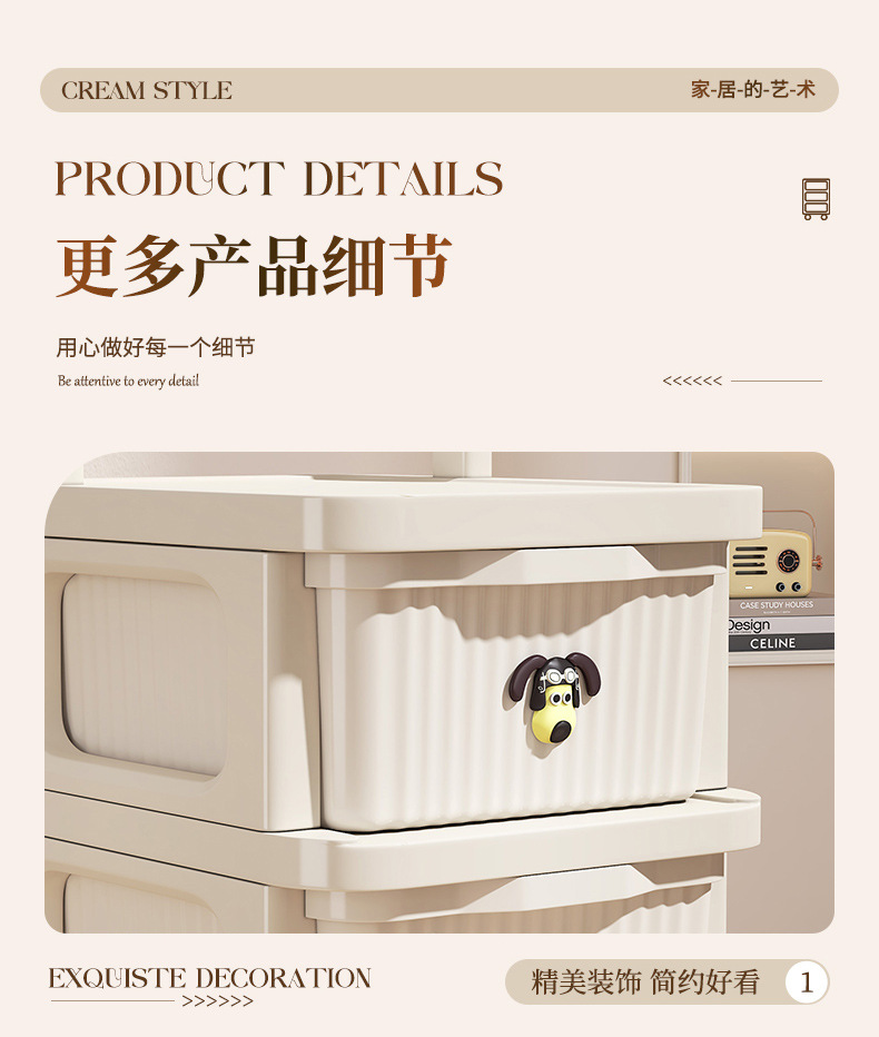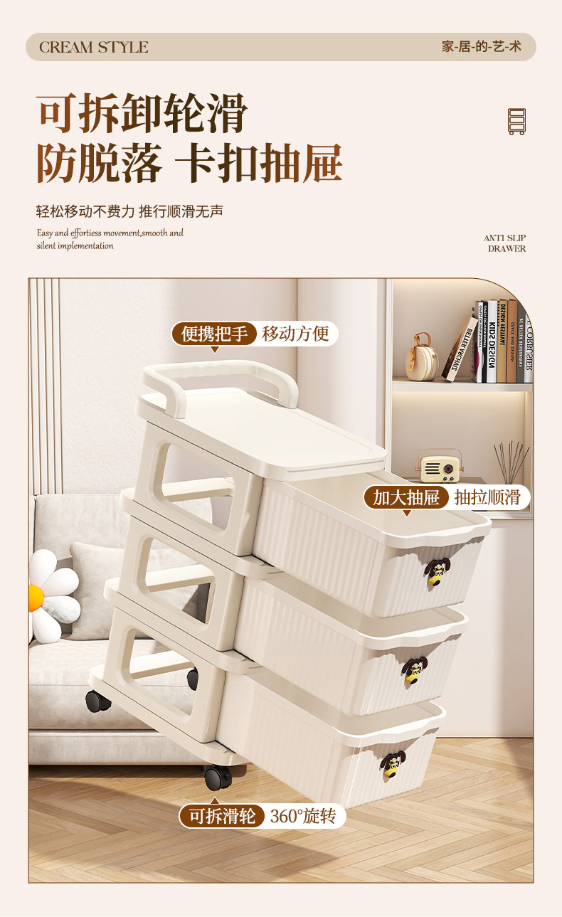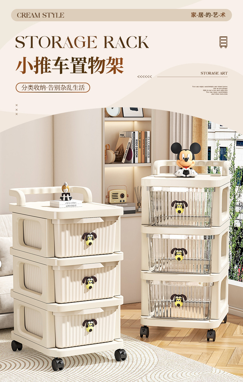 가정용 스낵 장난감 카트 다층 서랍 만화 스타일 잡화 저장 랙 이동식 방진 보관 캐비닛