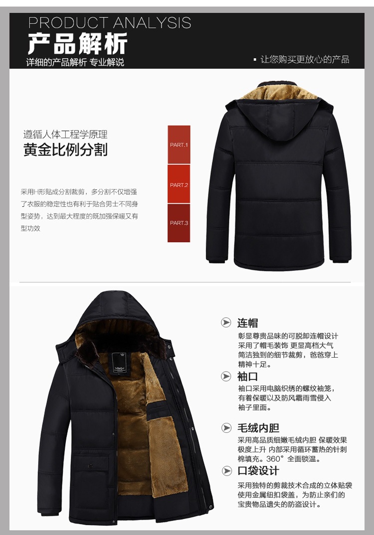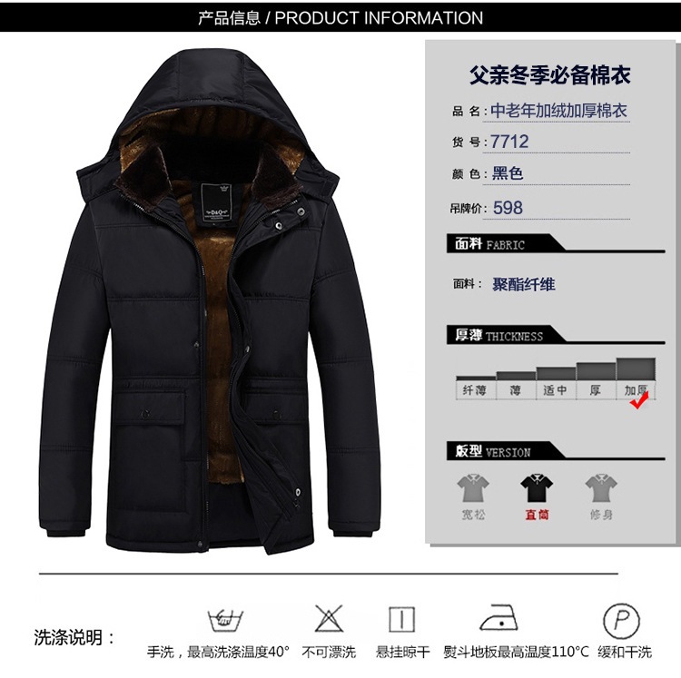 국경을 넘는 면화 패딩 재킷 남성용 겨울 기모 중년 및 노인 남성용 두꺼운 코트 아버지를위한 면화 패딩 재킷 겨울 의류