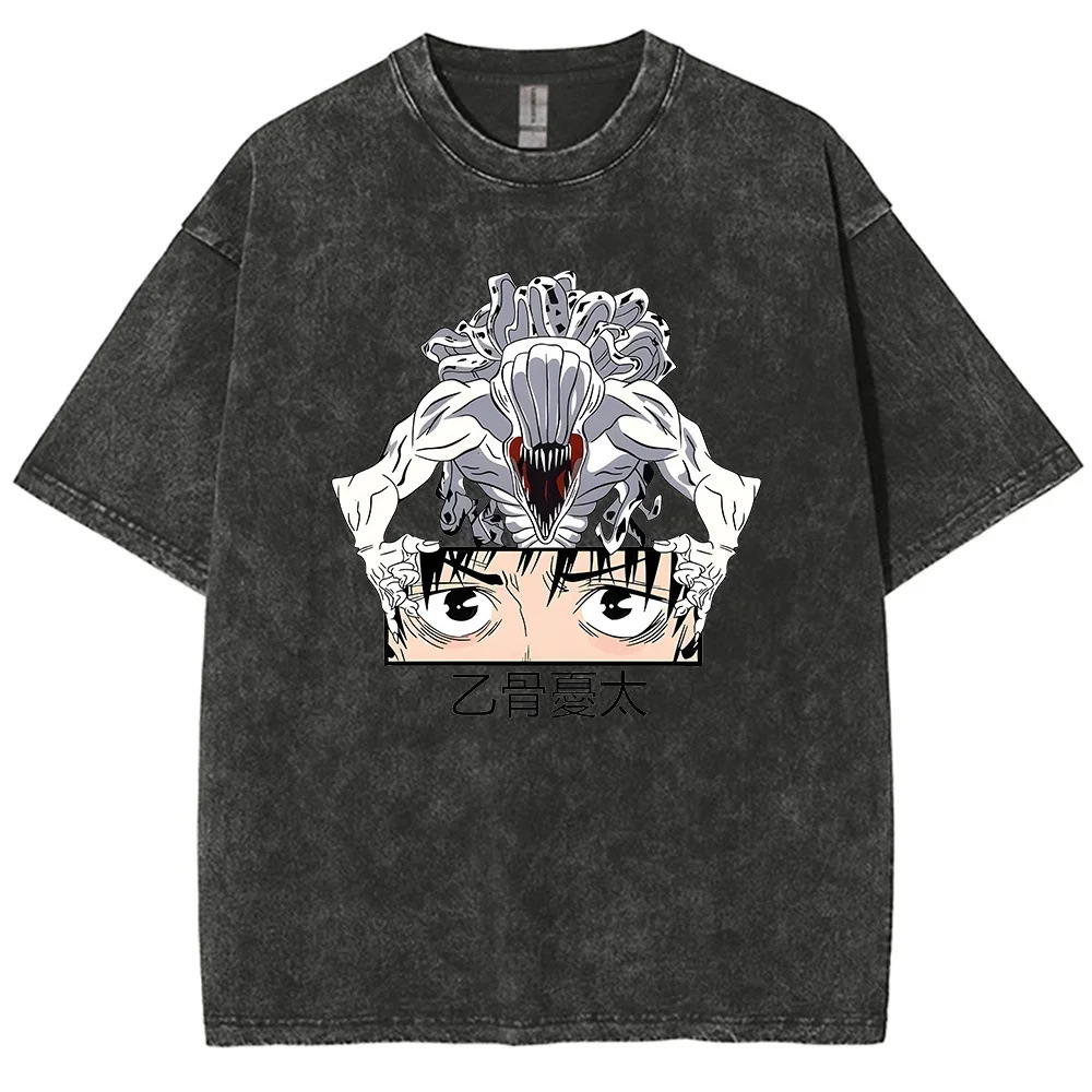 국경 간 대외 무역 2025 새로운 아마존 느슨한 편안한 복고풍 블랙 티셔츠 짧은 소매 상단 애니메이션 그립스토어 가기