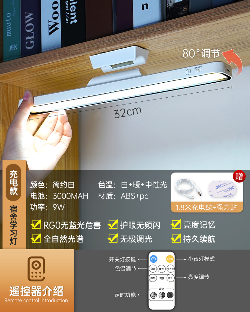 도매 충전식 벽 램프 방 침실 침대 옆 램프 눈 보호 독서 벽 램프 기숙사 조명 테이블 램프 스트립스토어 가기