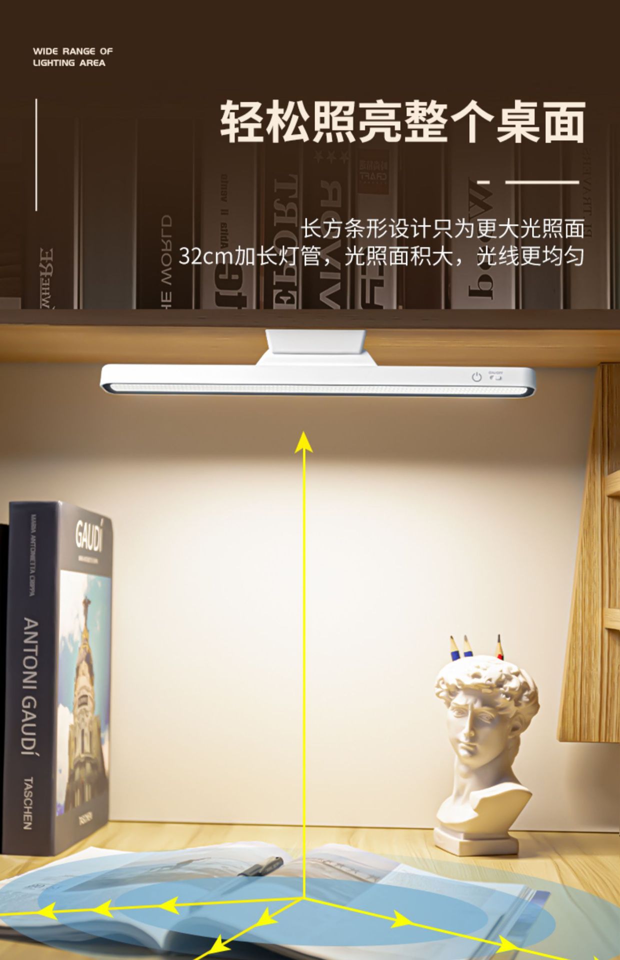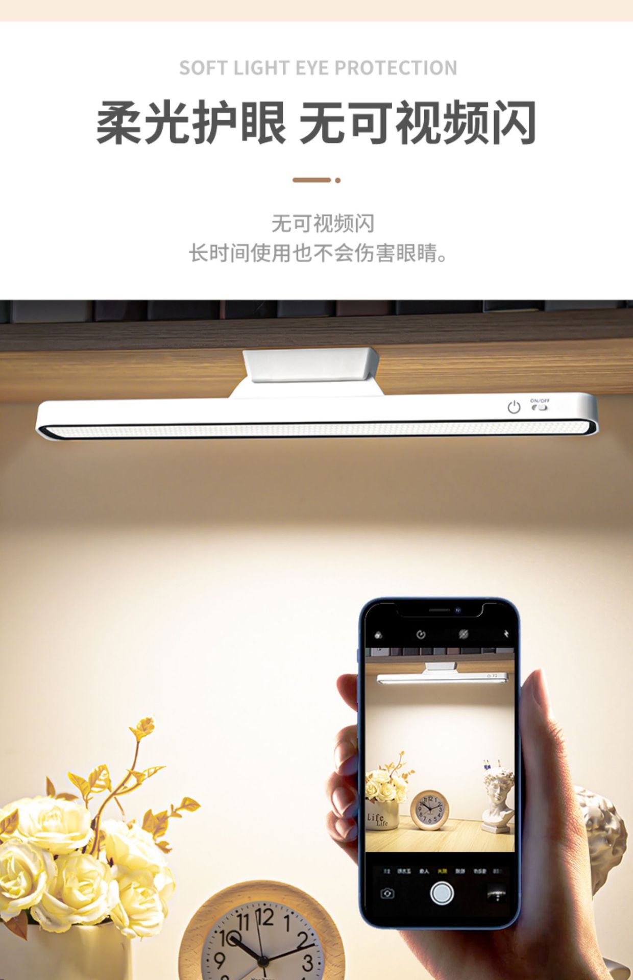 • 32cm 3색 조명 [충전식 모델] 터치 + 3색 조명 + 무단계 디밍☆하얀색