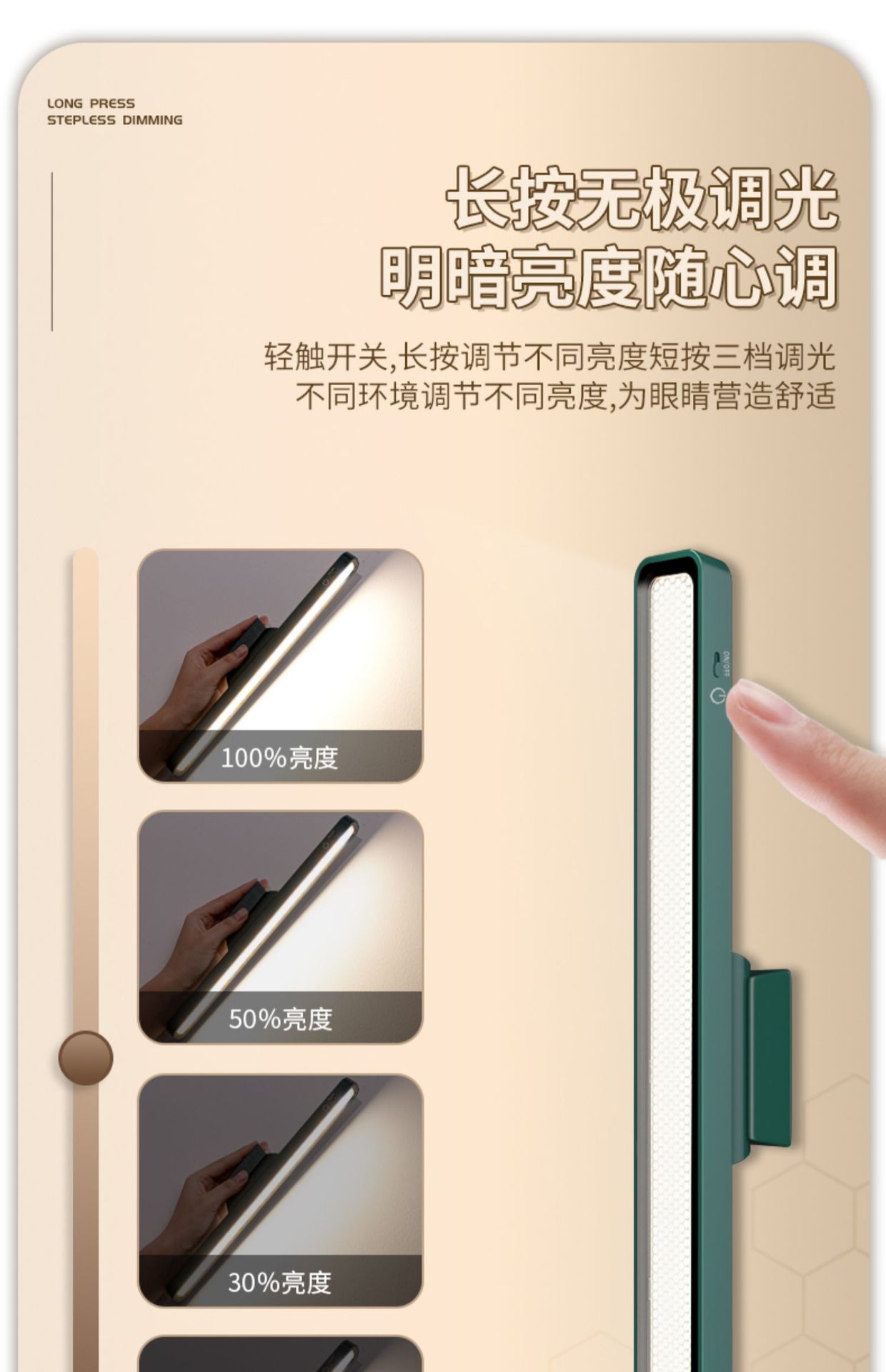 • 32cm 3색 조명 [충전식 모델] 터치 + 3색 조명 + 무단계 디밍★진한 녹색 + 충전 헤드