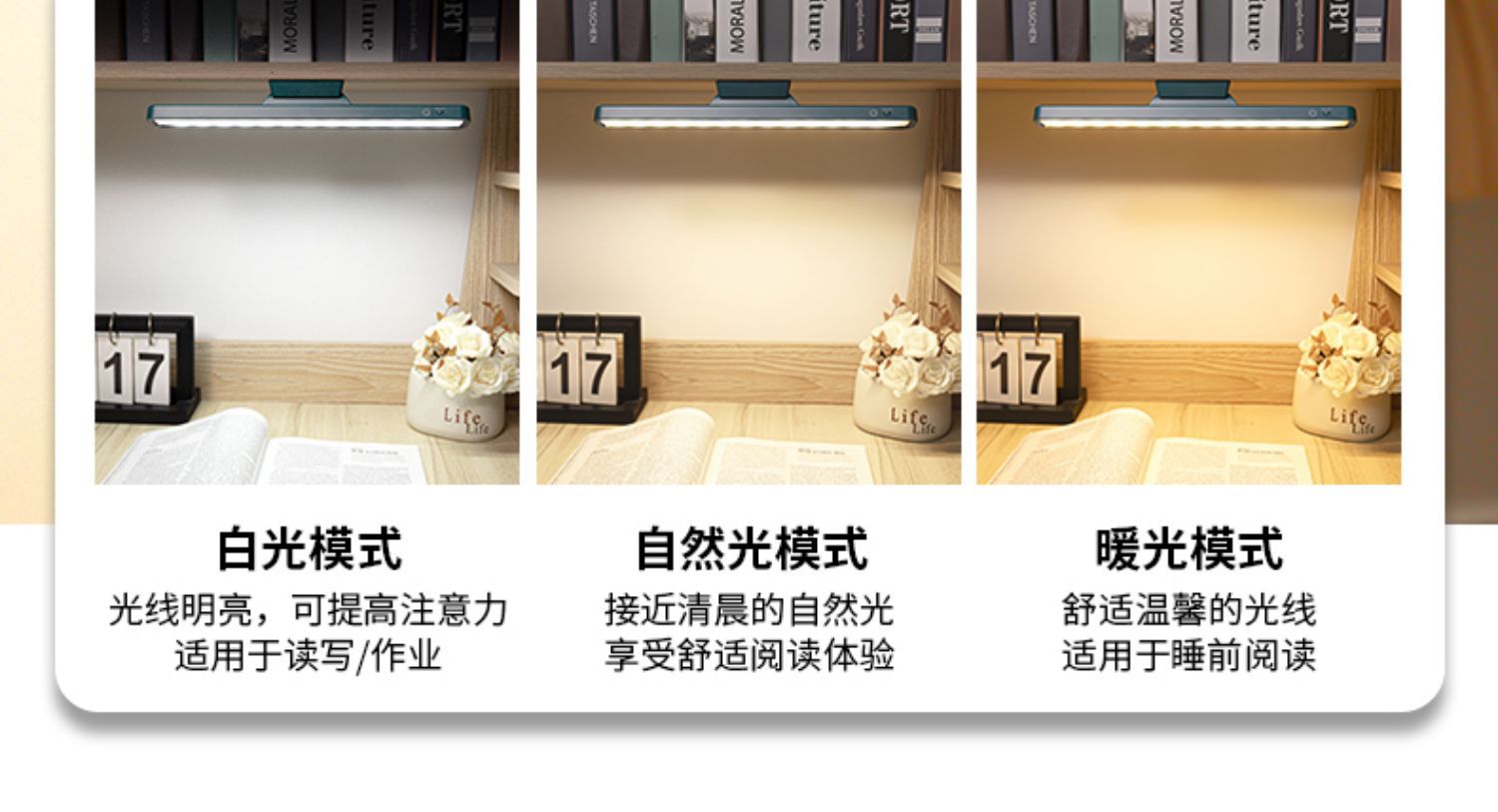 • 매우 긴☆42cm 3색 조명 [플러그인 모델] 밝기 메모리 + 무단계 디밍★하얀색
