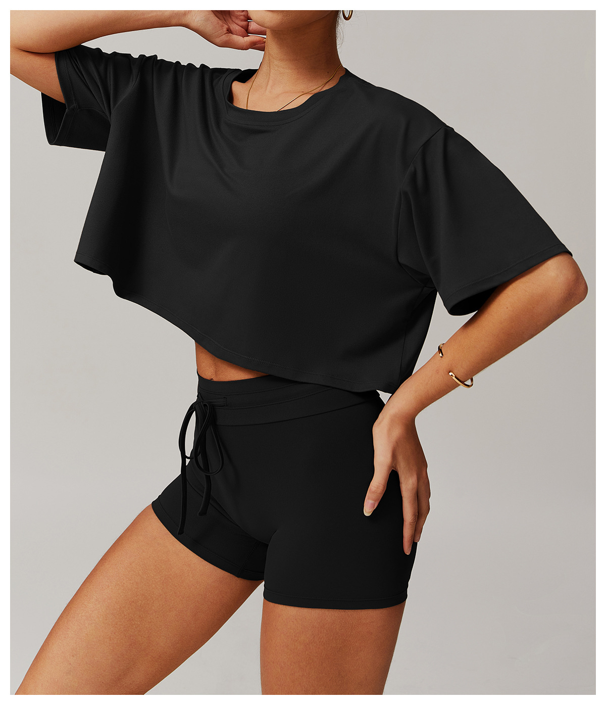 유럽 및 미국 스타일의 기모 처리된 스포츠 반팔 상의, 편안한 라운드넥 숏 티셔츠, 피트니스, 러닝, 요가복 5034스토어 가기