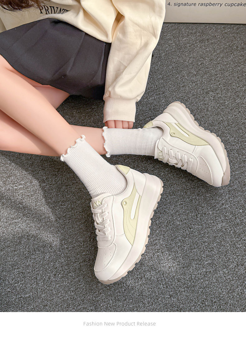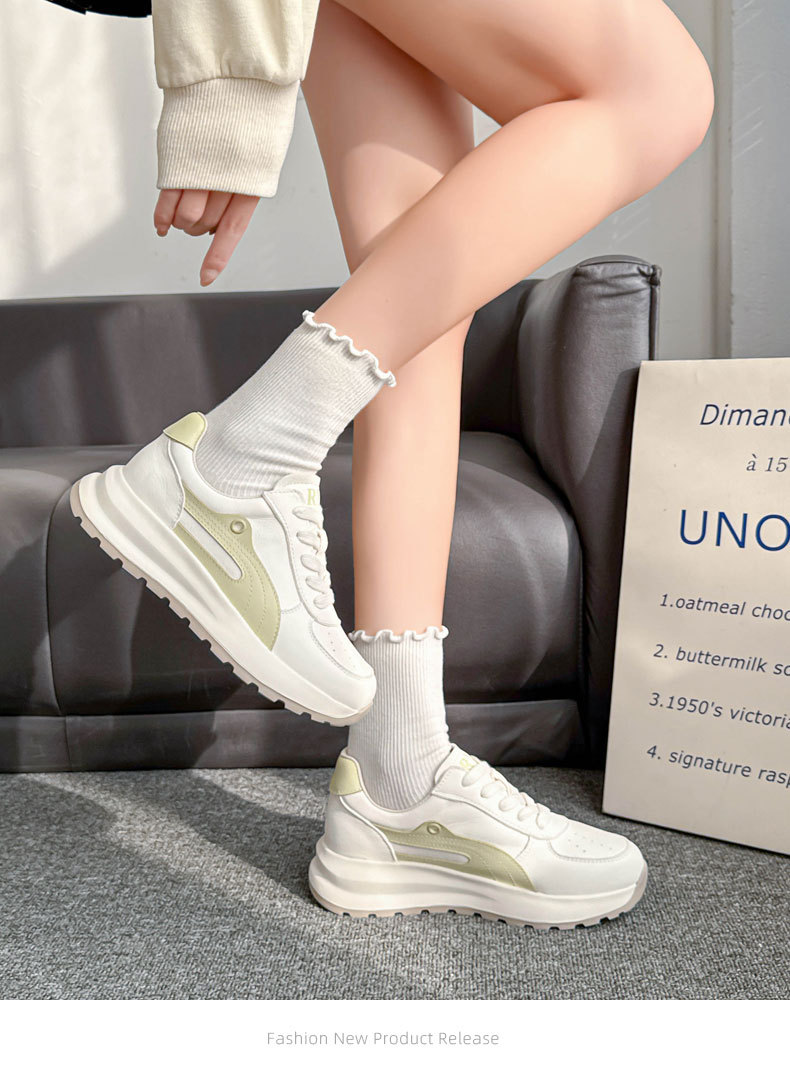 새로운 1 층 소 가죽 여성 신발 폭발 올 매치 작은 흰색 신발 두꺼운 밑창 레이스 업 폭발로 슬림 스포츠 캐주얼 신발 증가스토어 가기