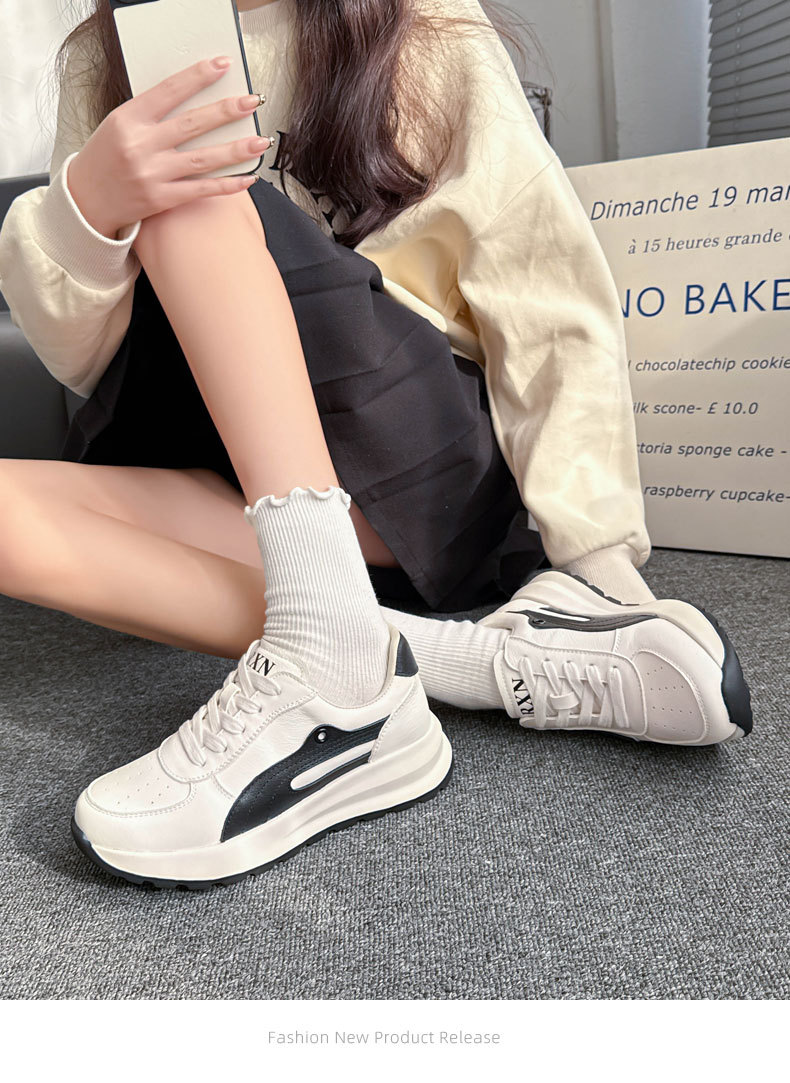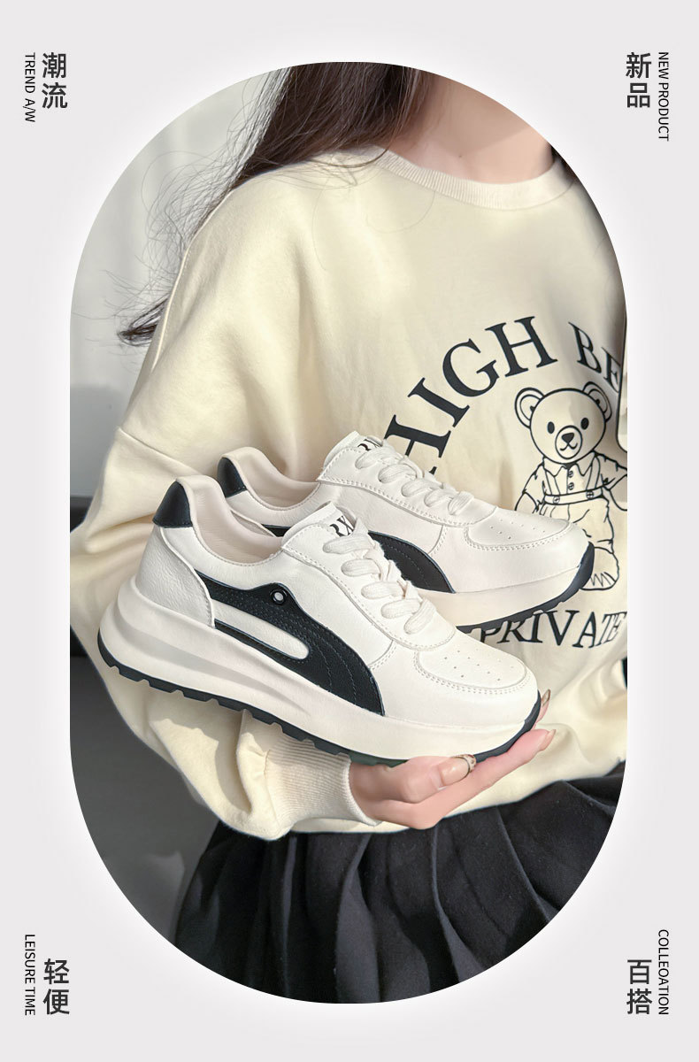 새로운 1 층 소 가죽 여성 신발 폭발 올 매치 작은 흰색 신발 두꺼운 밑창 레이스 업 폭발로 슬림 스포츠 캐주얼 신발 증가