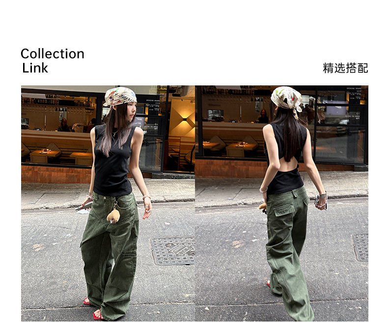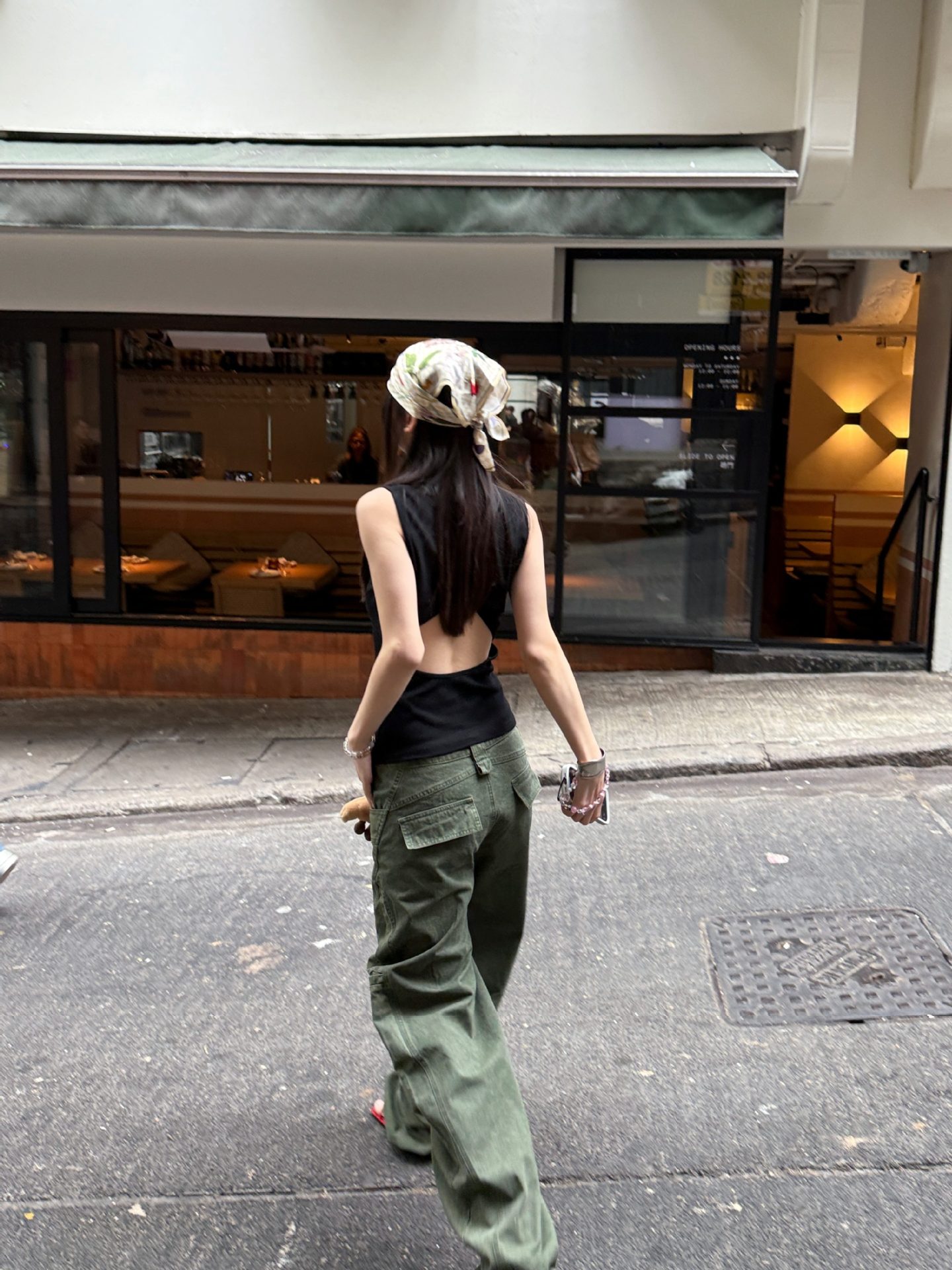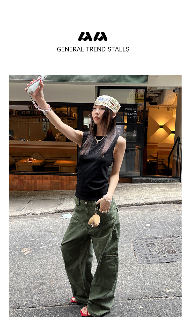 MMFISH 유행 거리 단색 중공 민소매 높은 탄성 슬림 주름 허리 등이없는 조끼 25T066스토어 가기