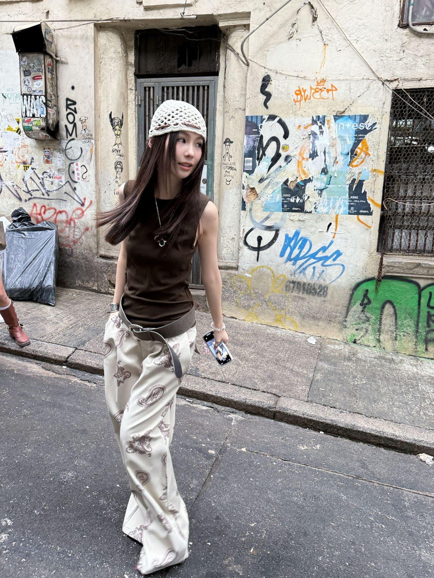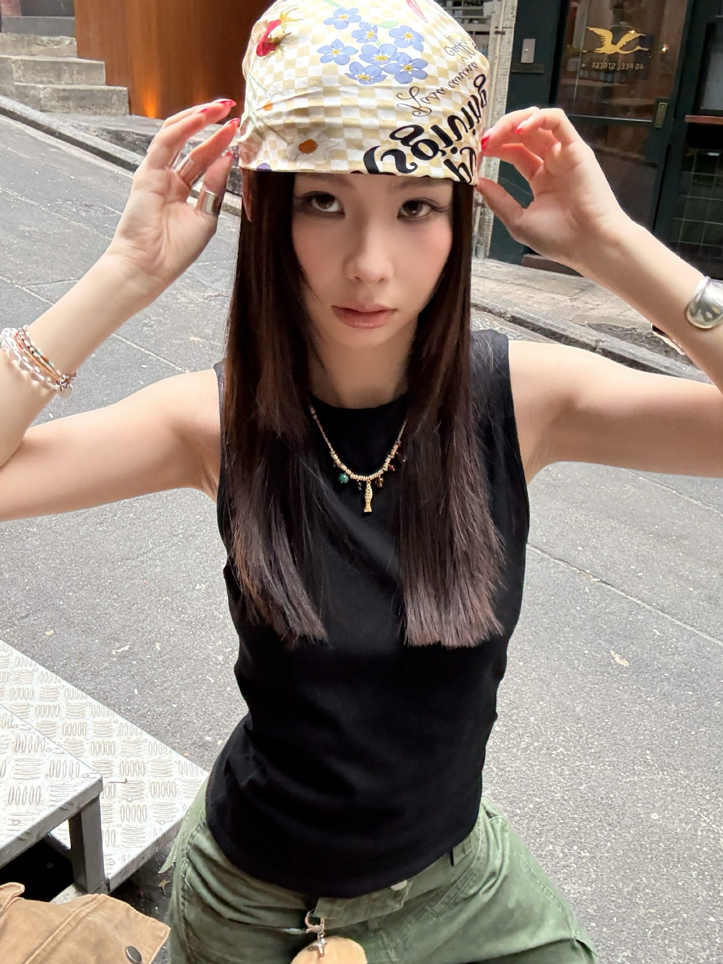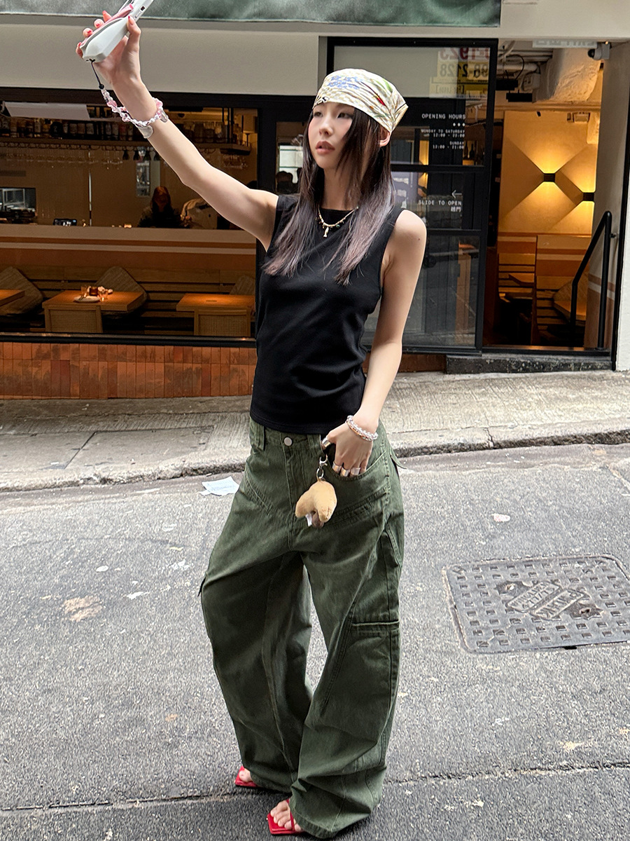 MMFISH 유행 거리 단색 중공 민소매 높은 탄성 슬림 주름 허리 등이없는 조끼 25T066스토어 가기