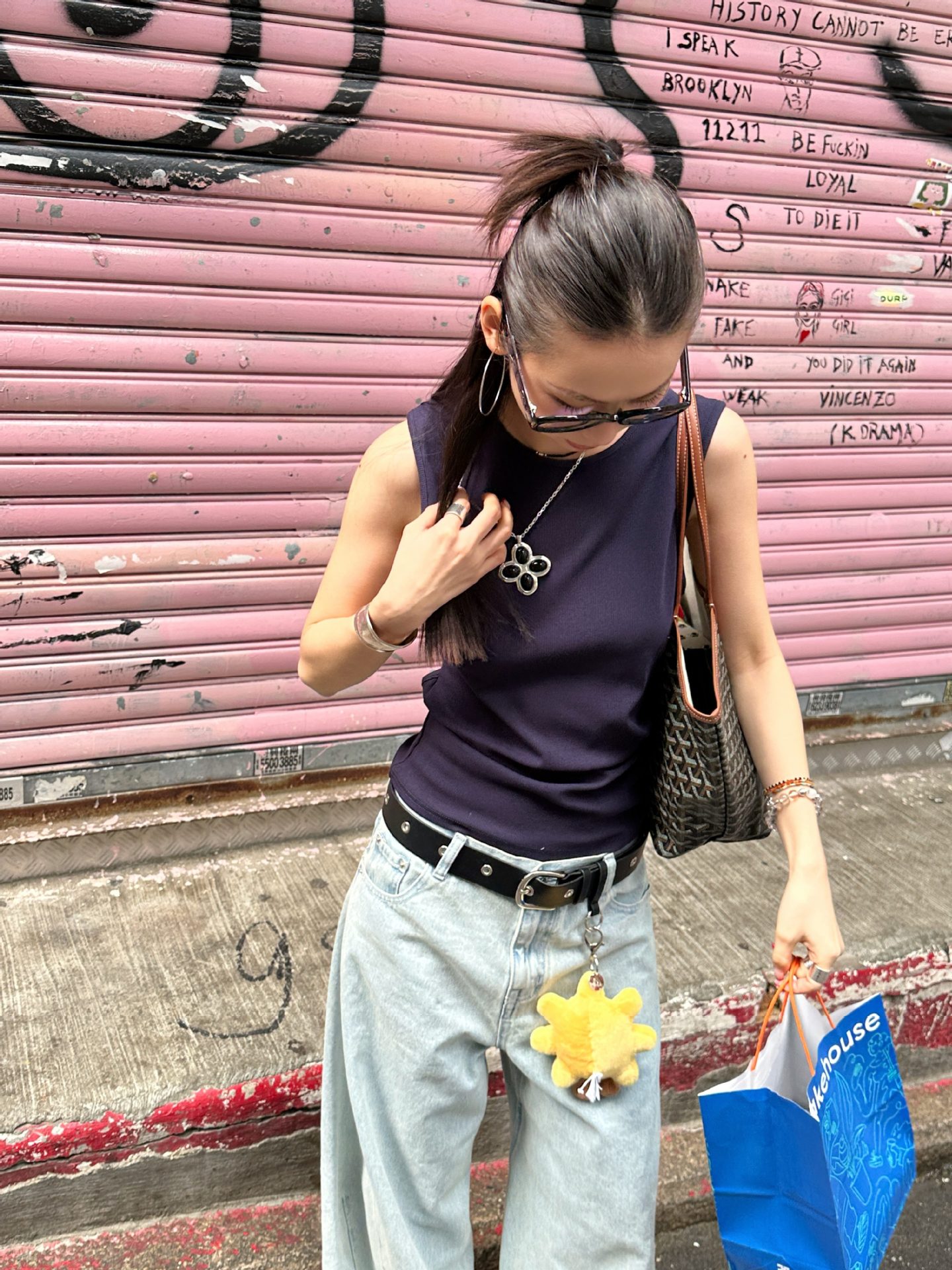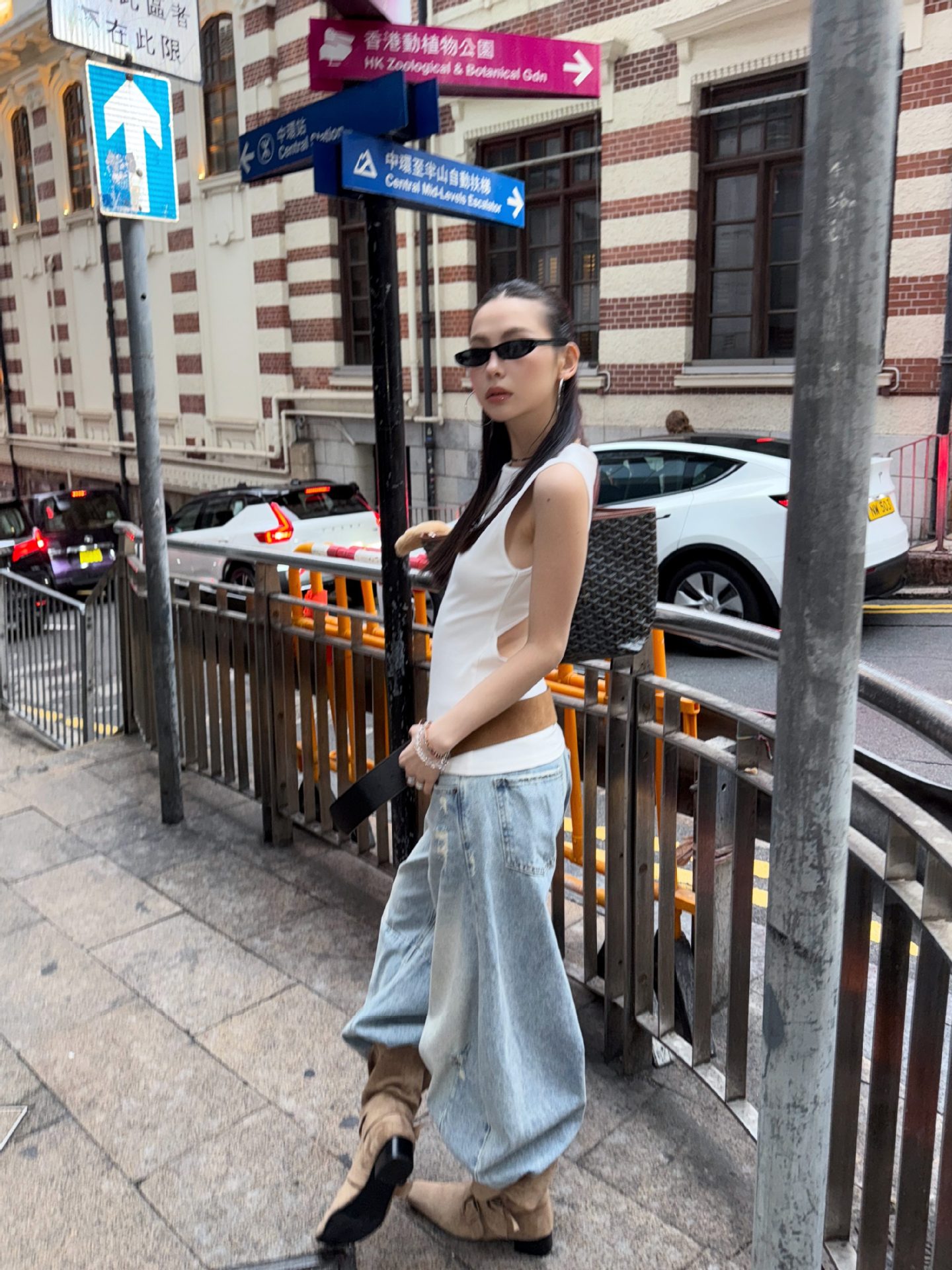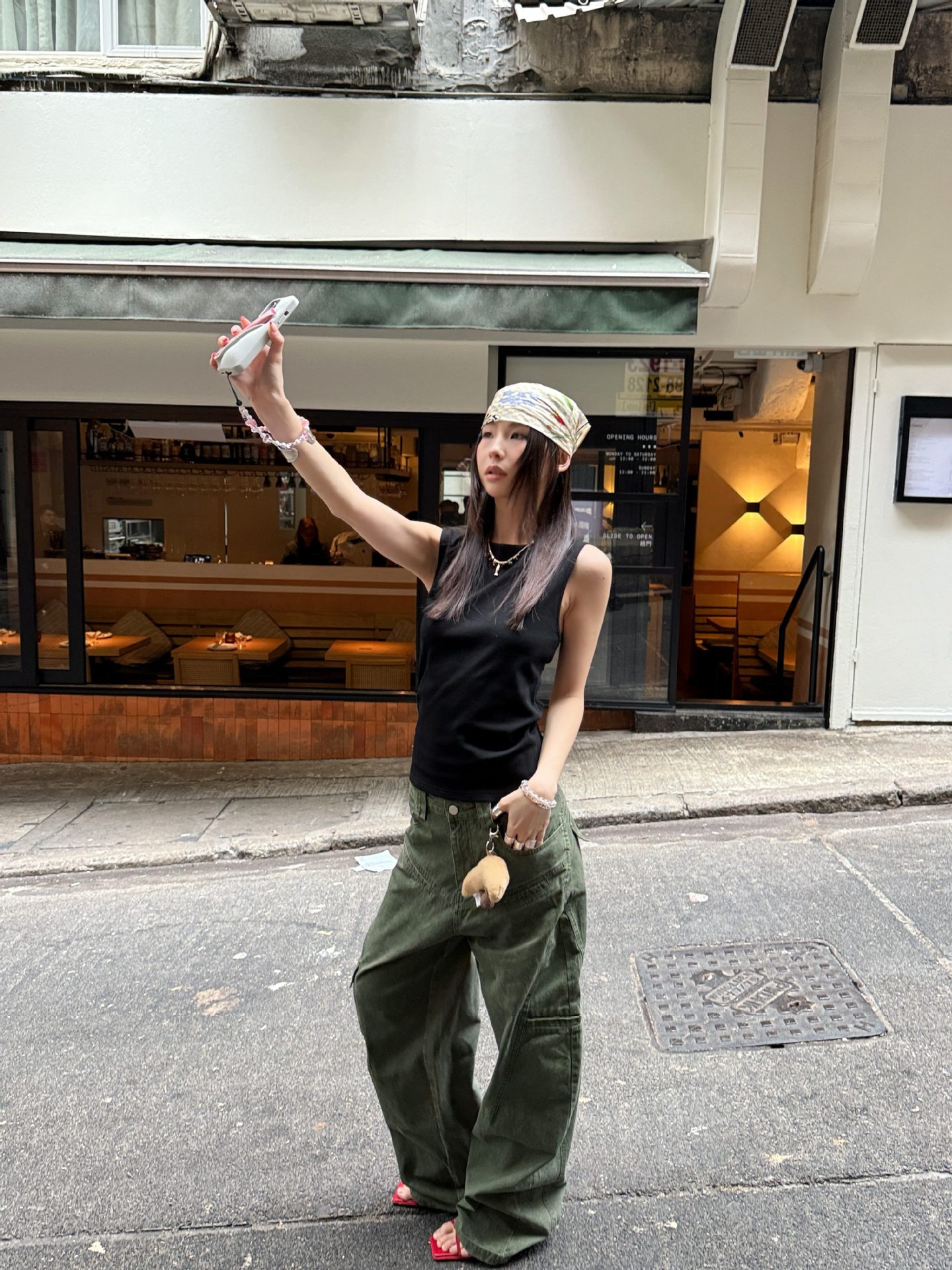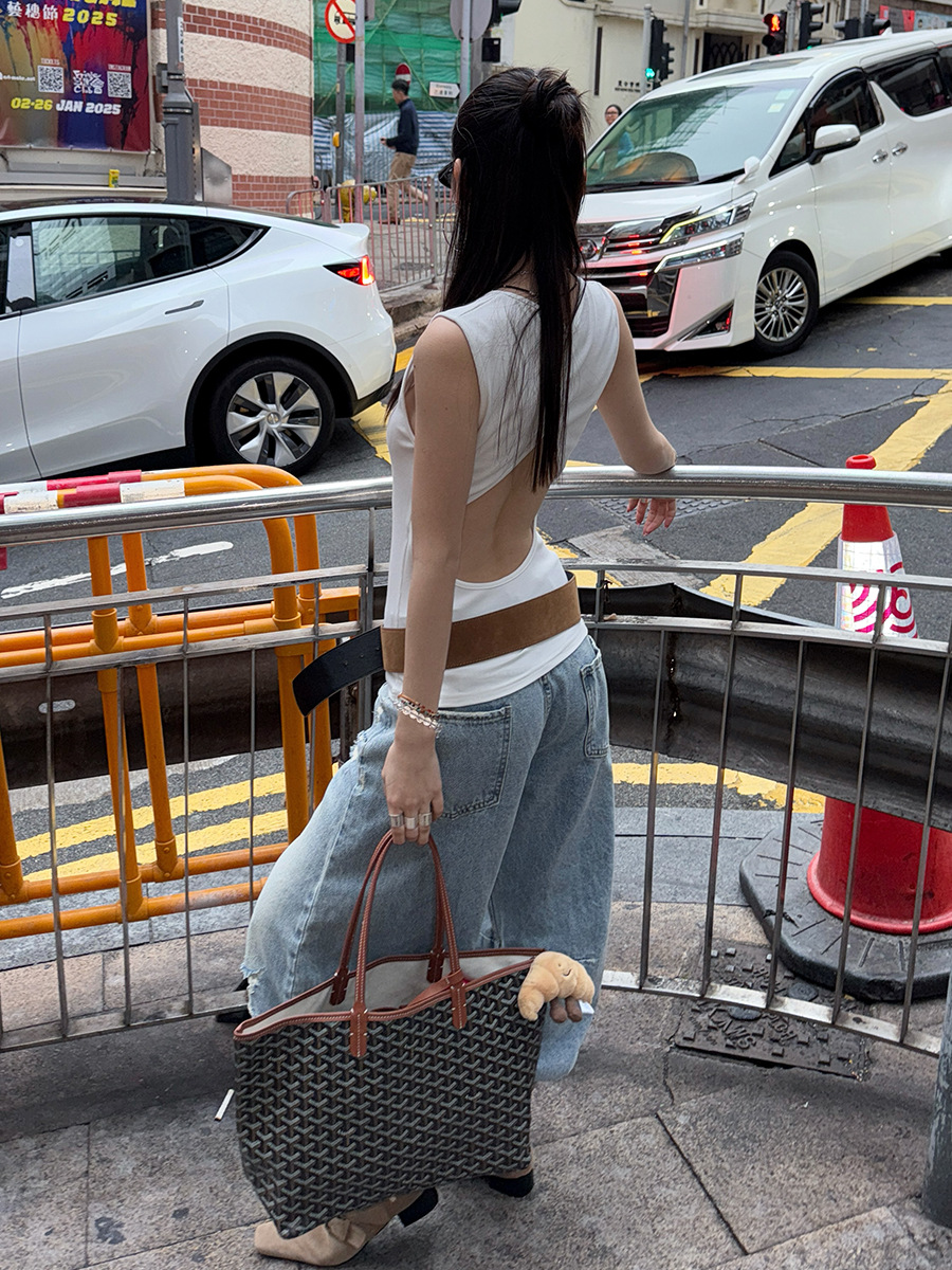 MMFISH 유행 거리 단색 중공 민소매 높은 탄성 슬림 주름 허리 등이없는 조끼 25T066