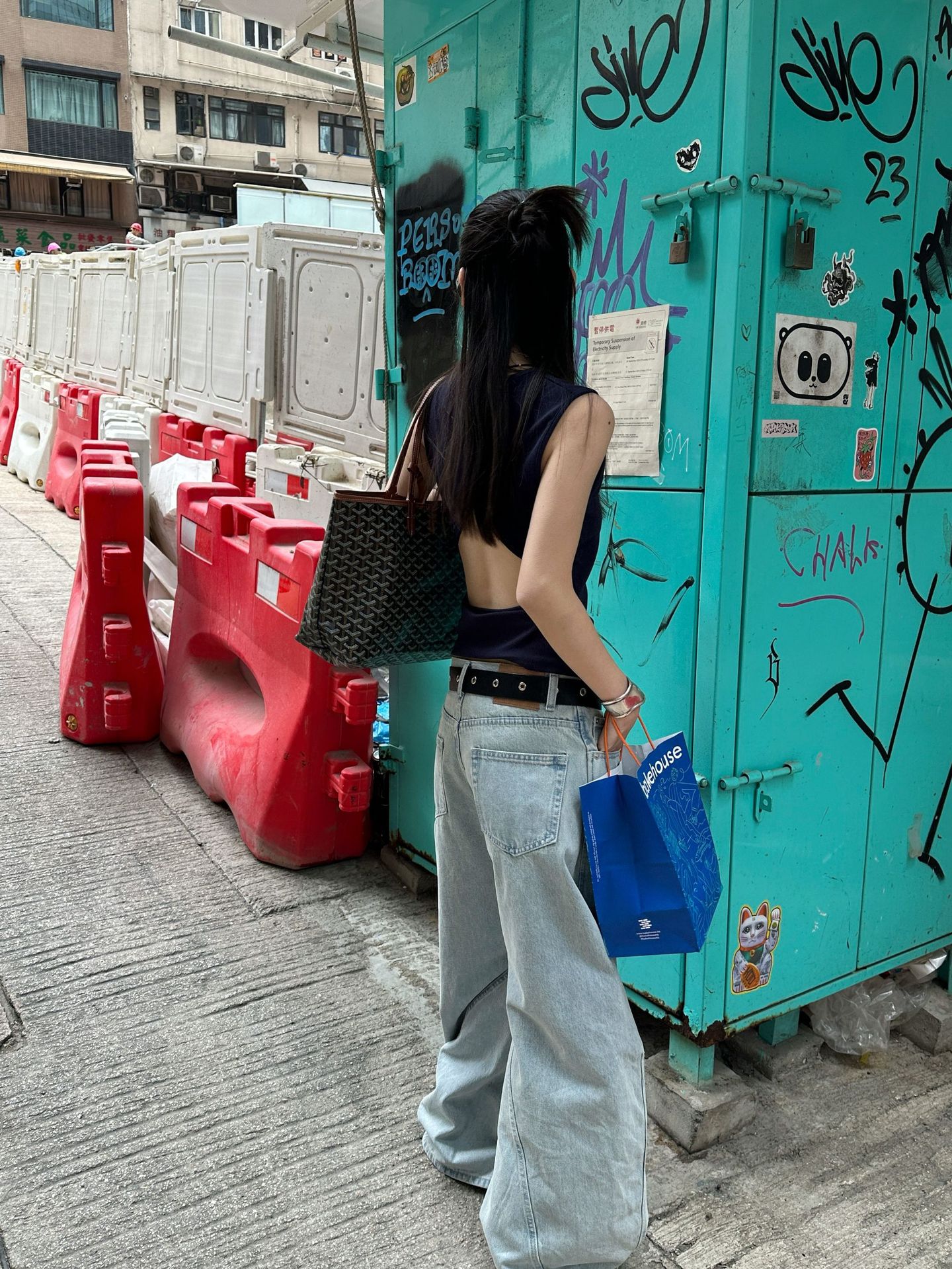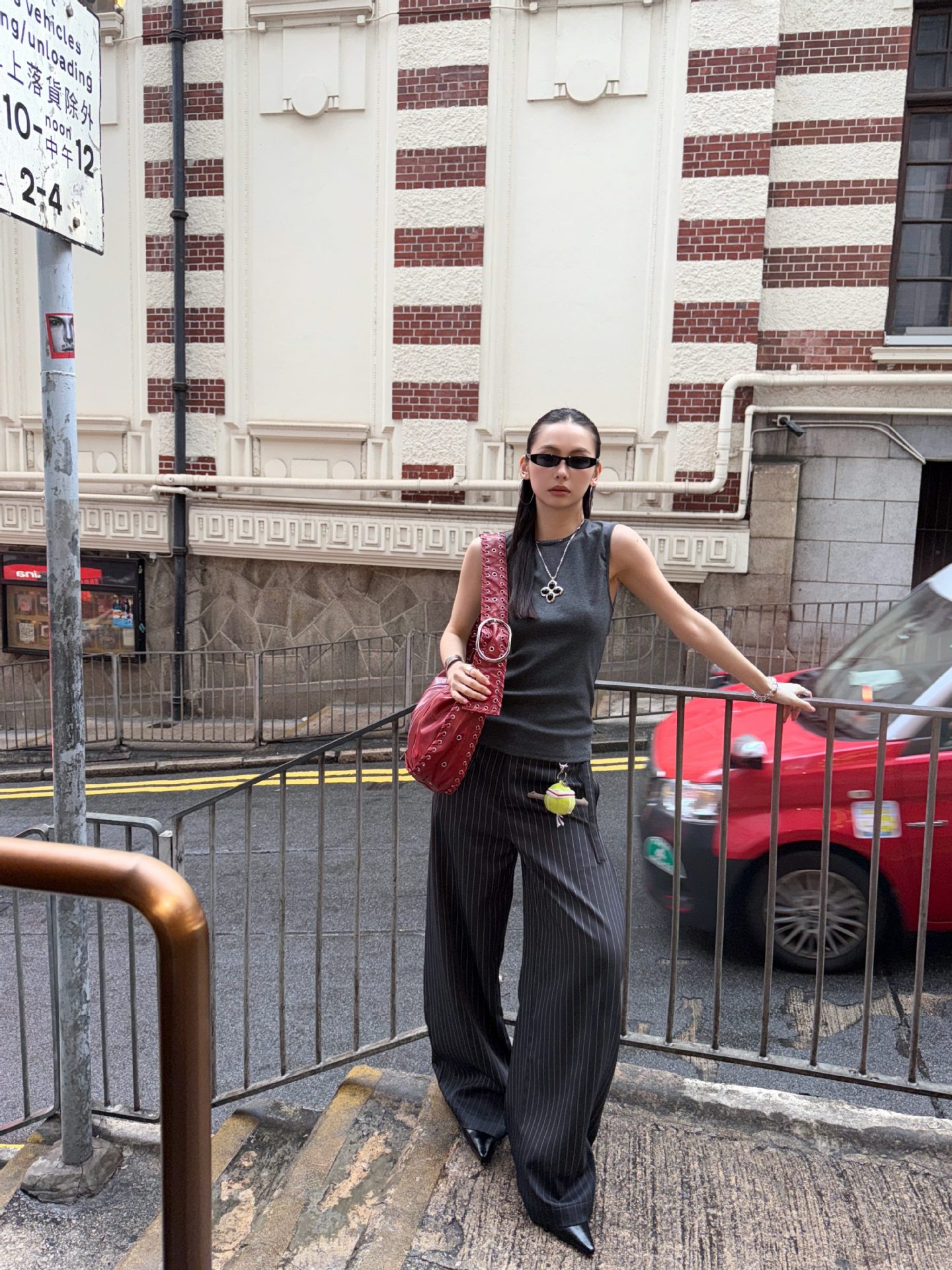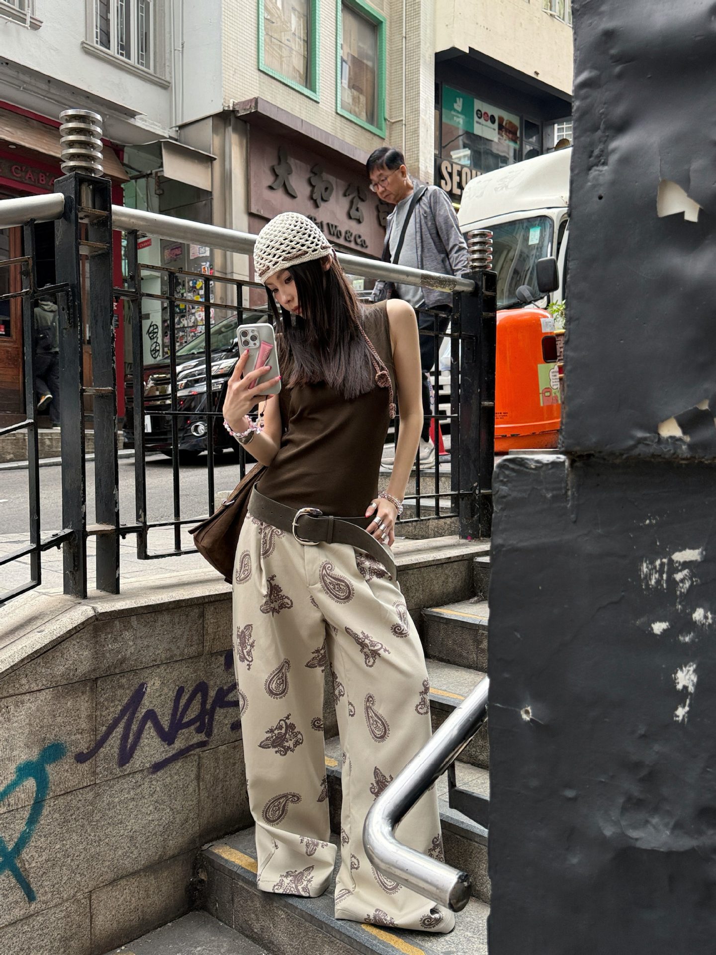 MMFISH 유행 거리 단색 중공 민소매 높은 탄성 슬림 주름 허리 등이없는 조끼 25T066