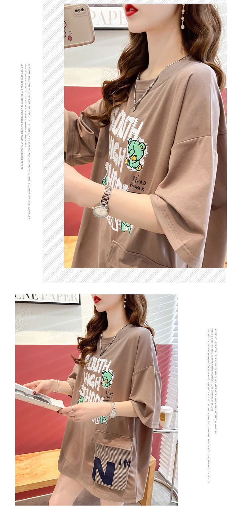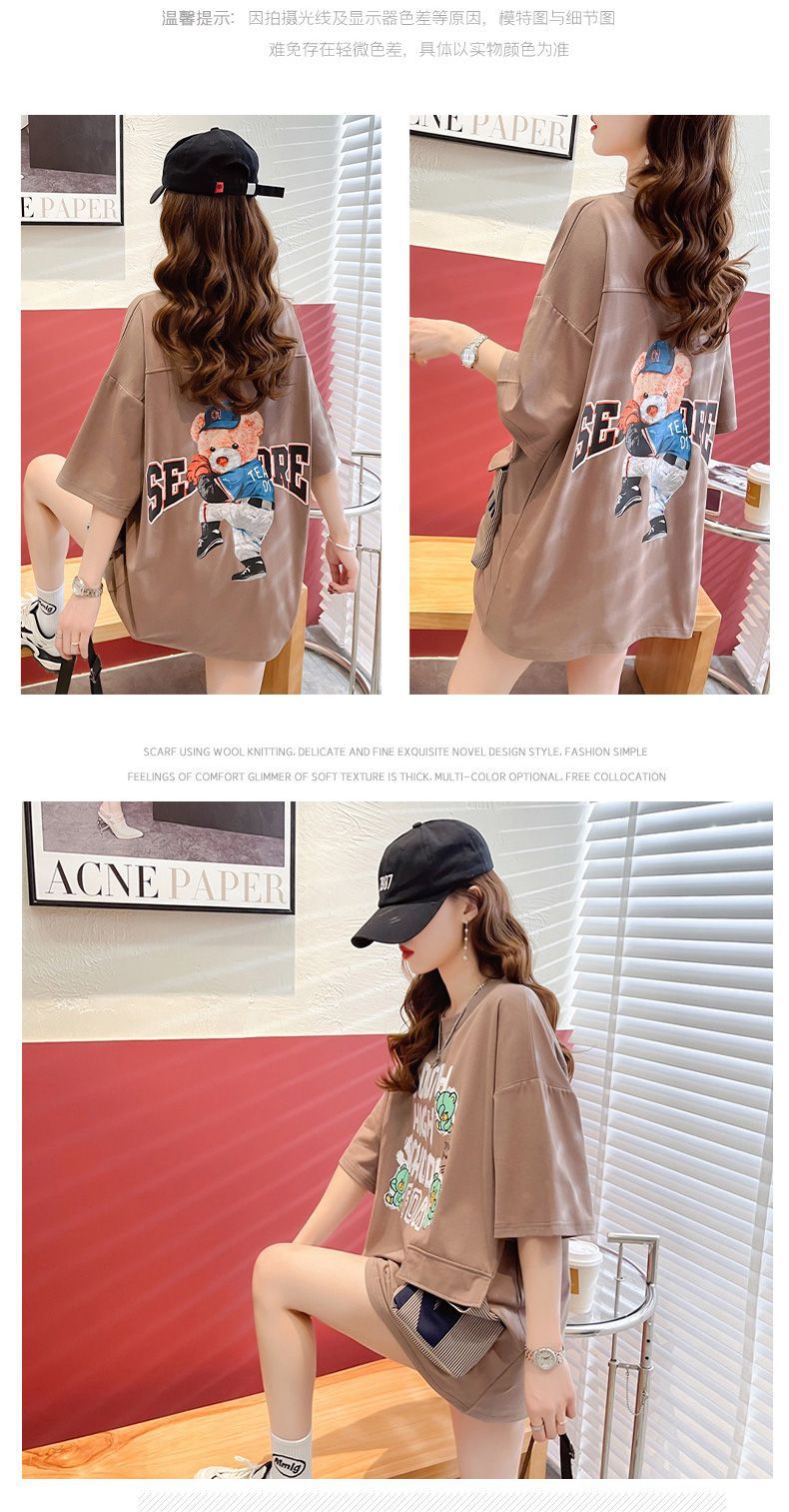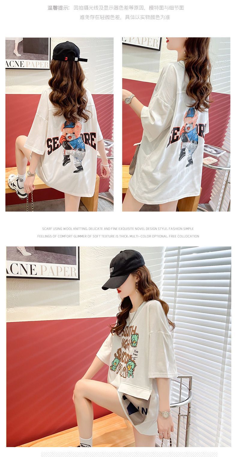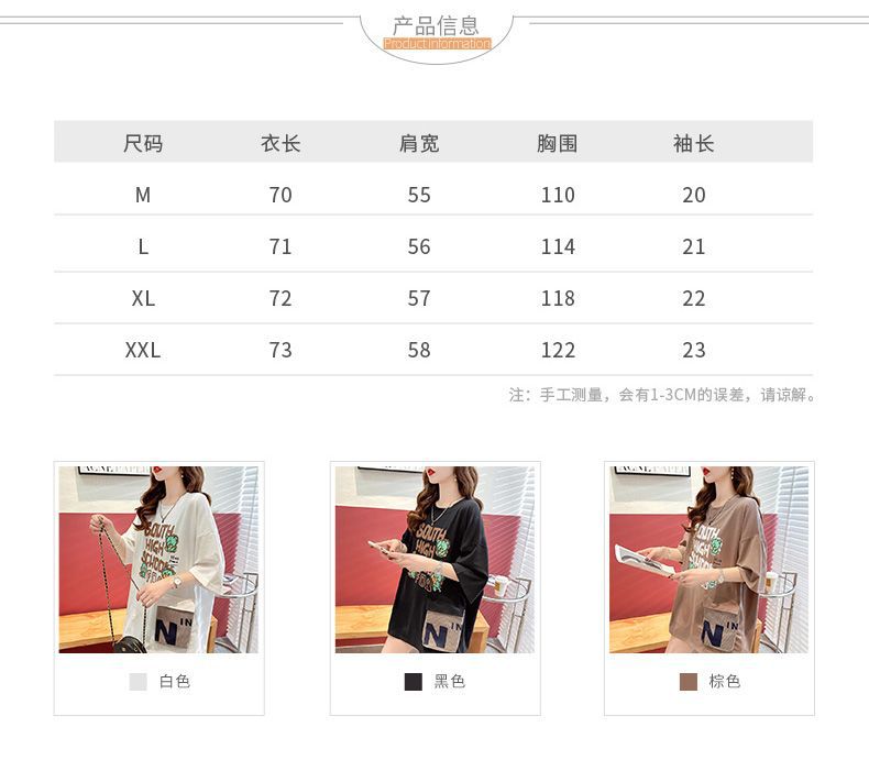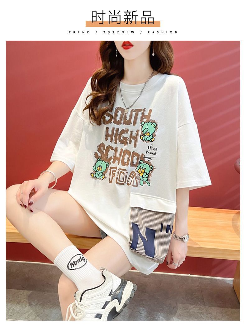 2025 년 여름 뉴 코튼 반팔 티셔츠 여성용 루즈 미드 길이 티셔츠 플러스 사이즈 탑 통통녀 배꼽 커버 슬리밍스토어 가기