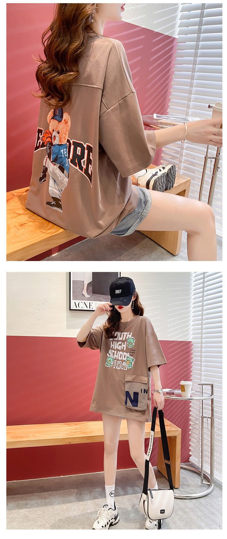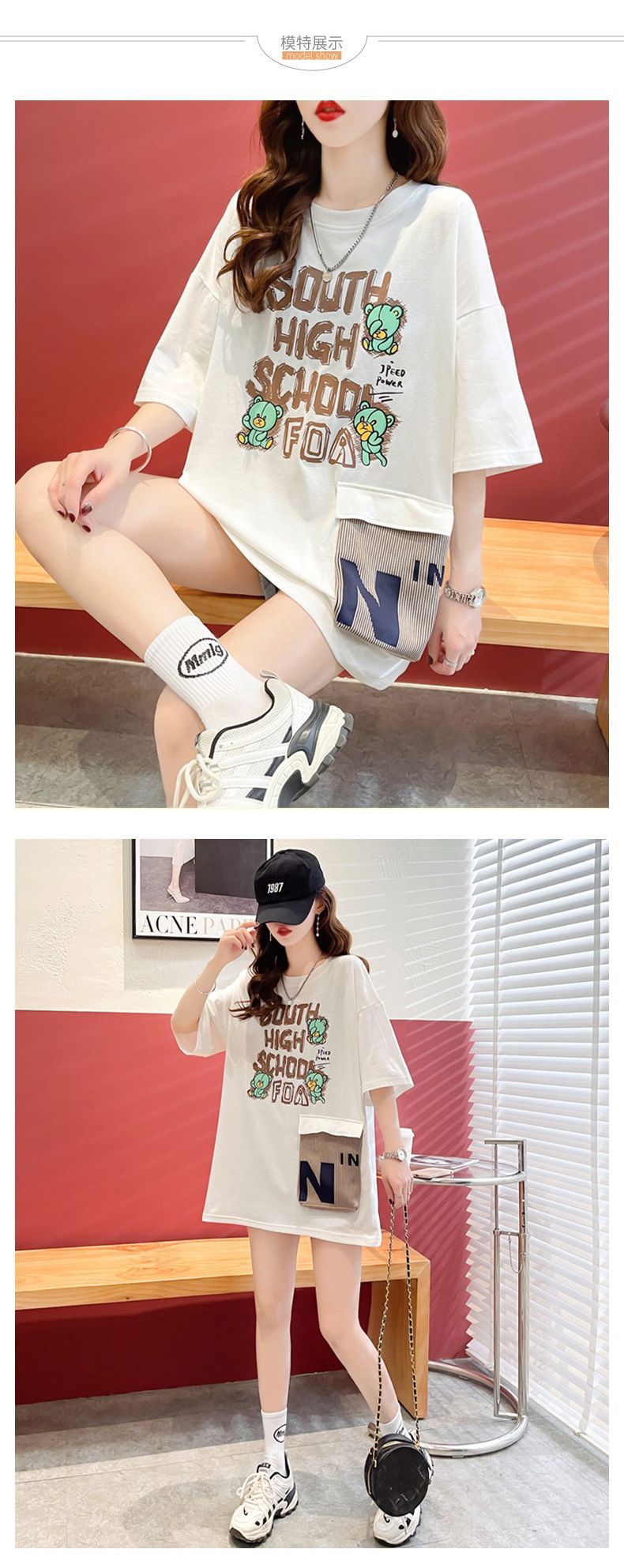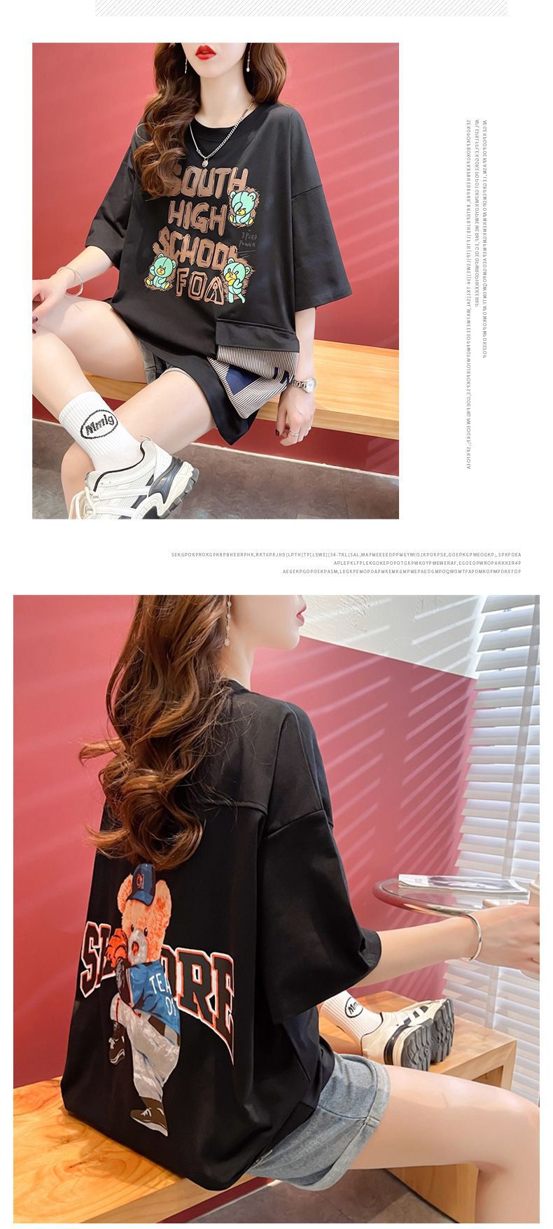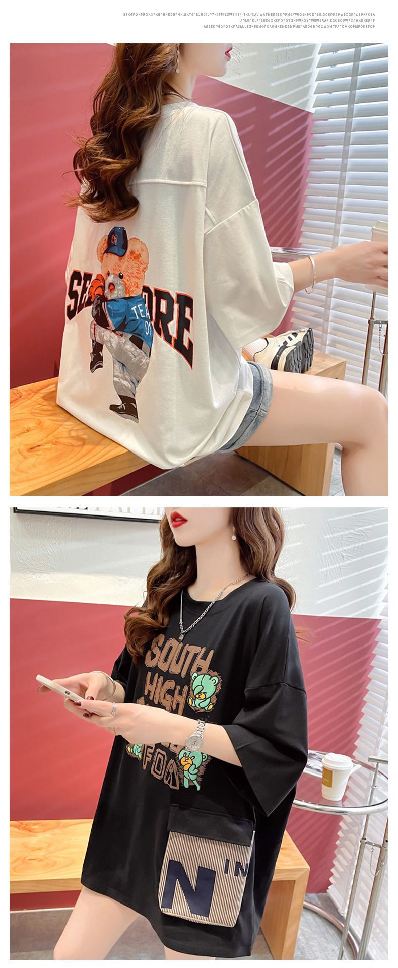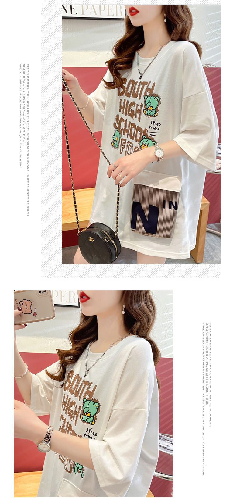 2025 년 여름 뉴 코튼 반팔 티셔츠 여성용 루즈 미드 길이 티셔츠 플러스 사이즈 탑 통통녀 배꼽 커버 슬리밍스토어 가기