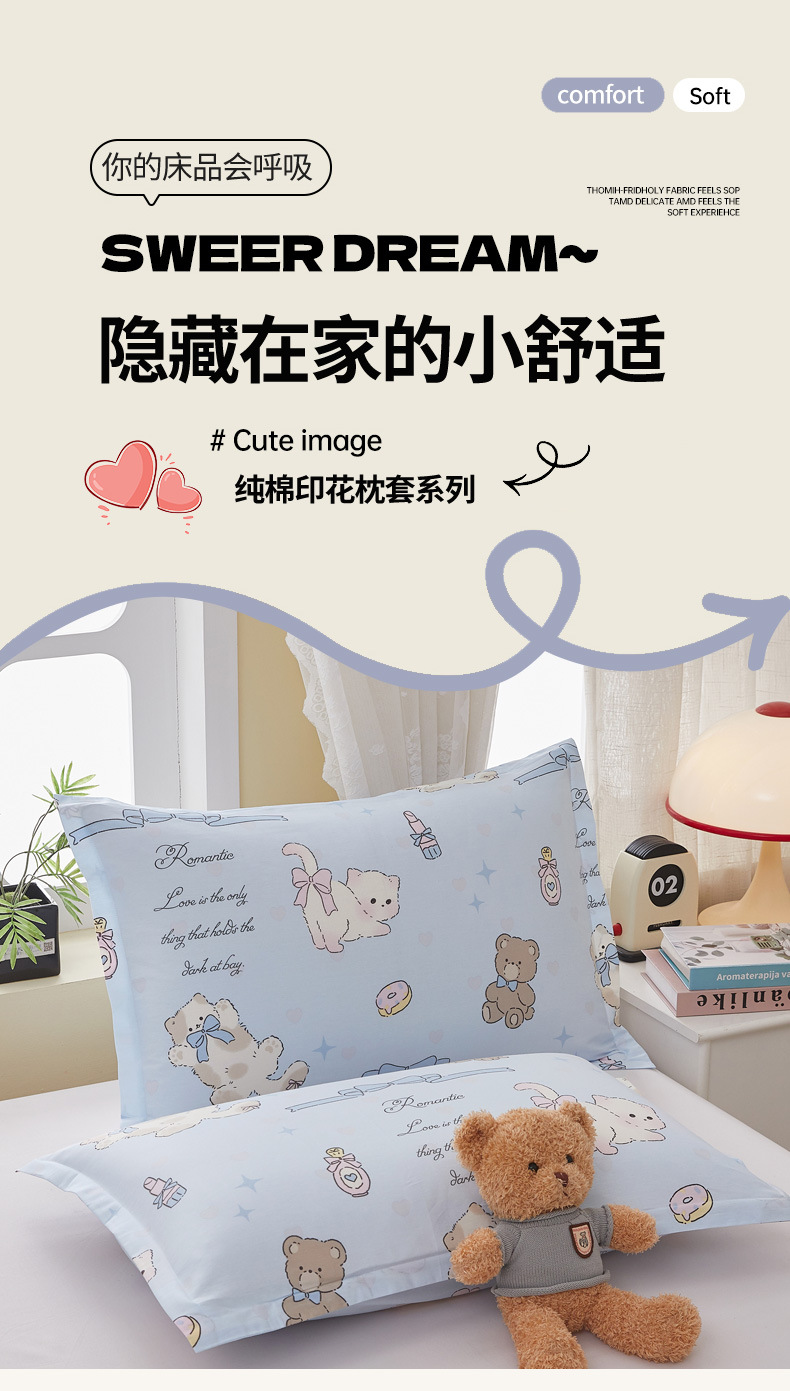 피부 친화적 인 퓨어 코튼 싱글 베개 케이스 퓨어 코튼 흡착 작은 신선한 인쇄 학생 베개 케이스 넓은 챙이 아기 베개 케이스 퓨어 코튼스토어 가기