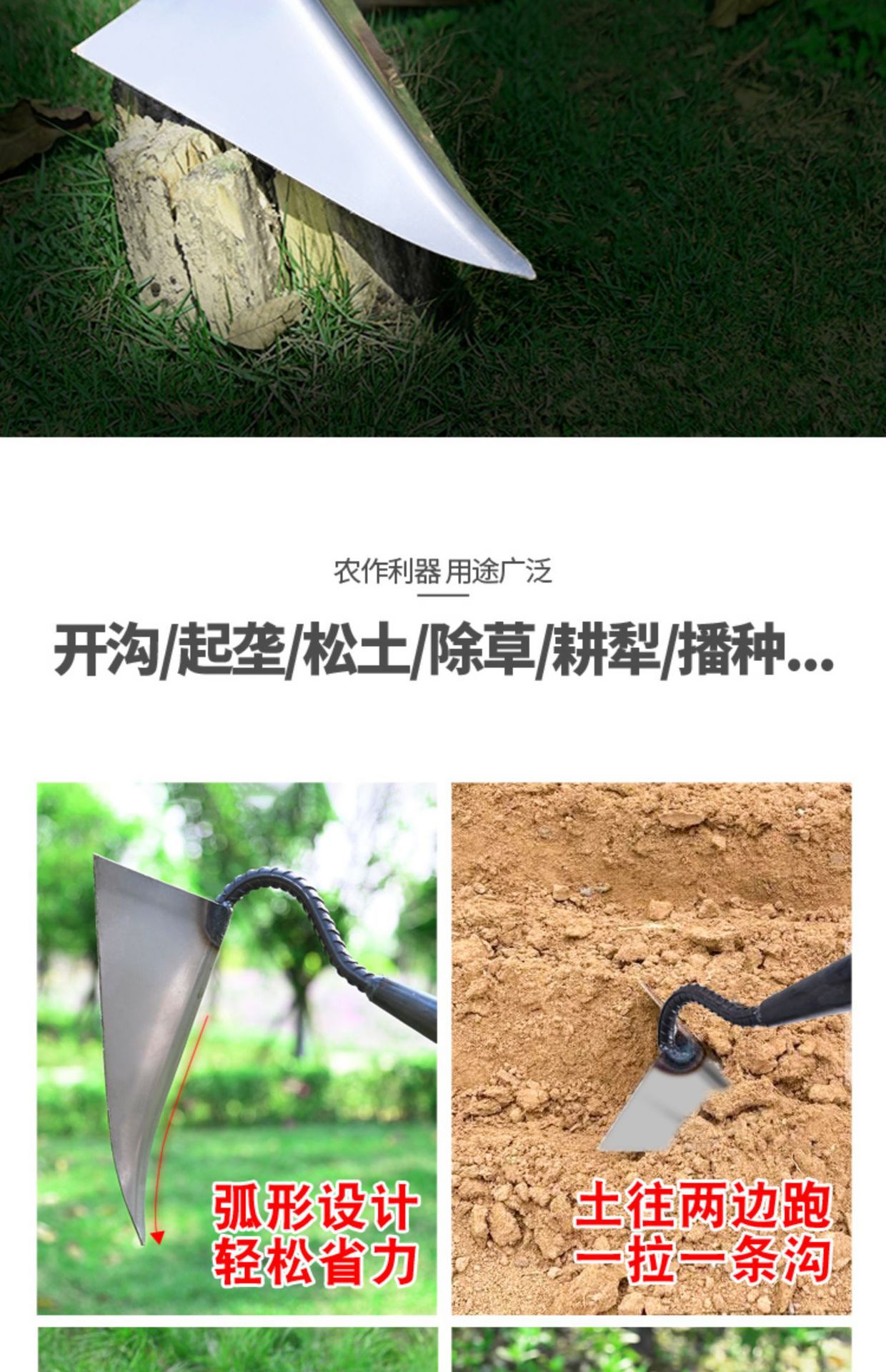 타오르는 괭이 삼각형 괭이 껴안고 도랑 괭이 도랑 오프너 느슨한 토양 팁 괭이 야채 팁 괭이 묘목 비료 농장 도구 삽을 버리다