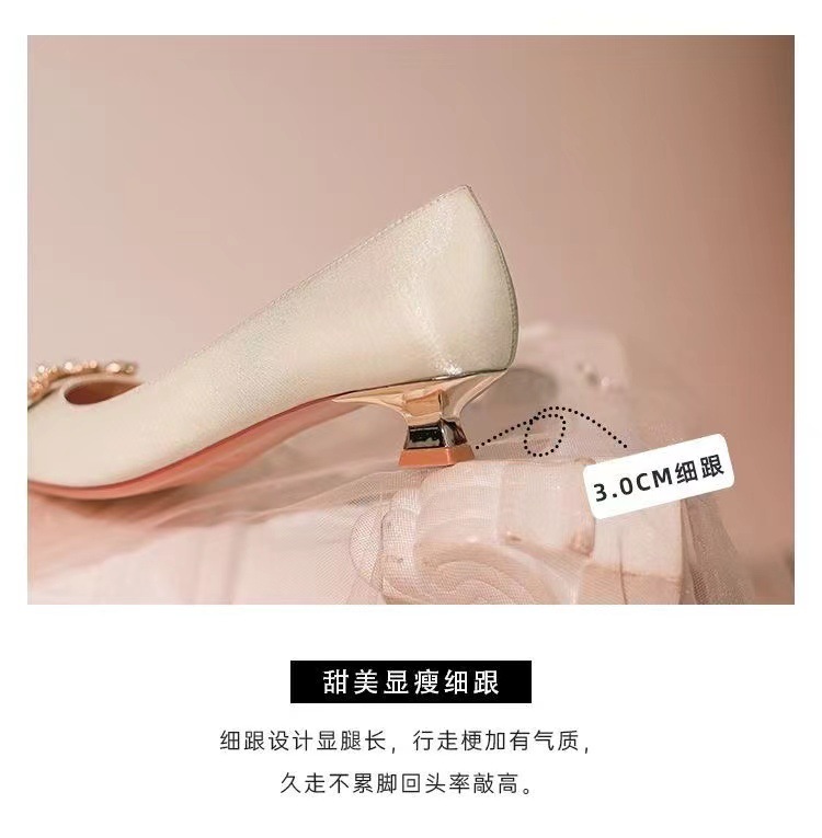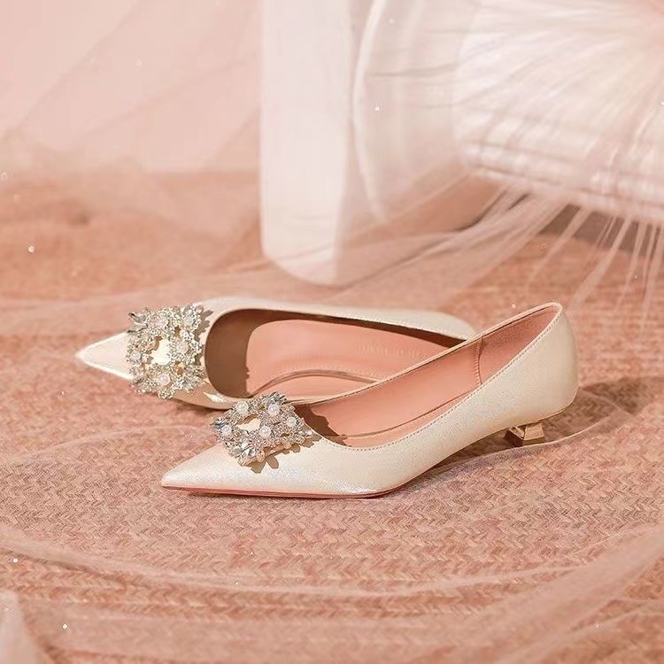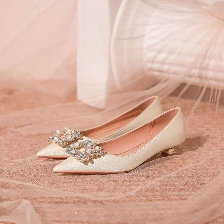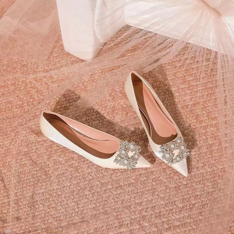 프랑스 기질 연예인 뾰족한 발가락 싱글 신발 여성 저발 약혼 원피스 지치지 않는 신부 들러리 신발 임산부 웨딩 신발스토어 가기