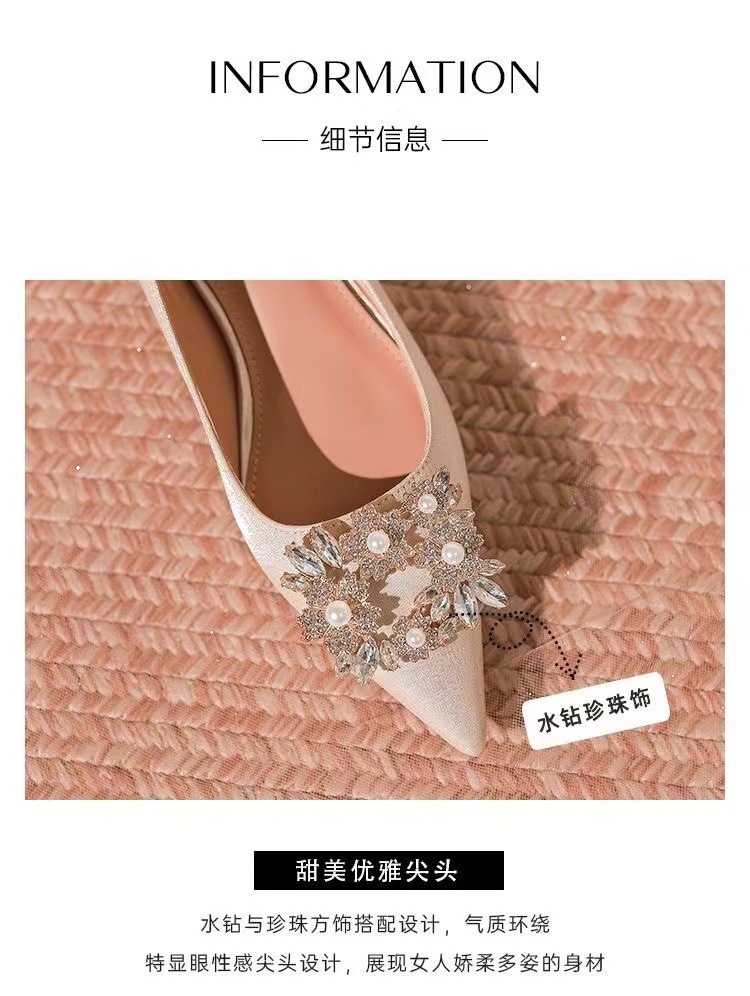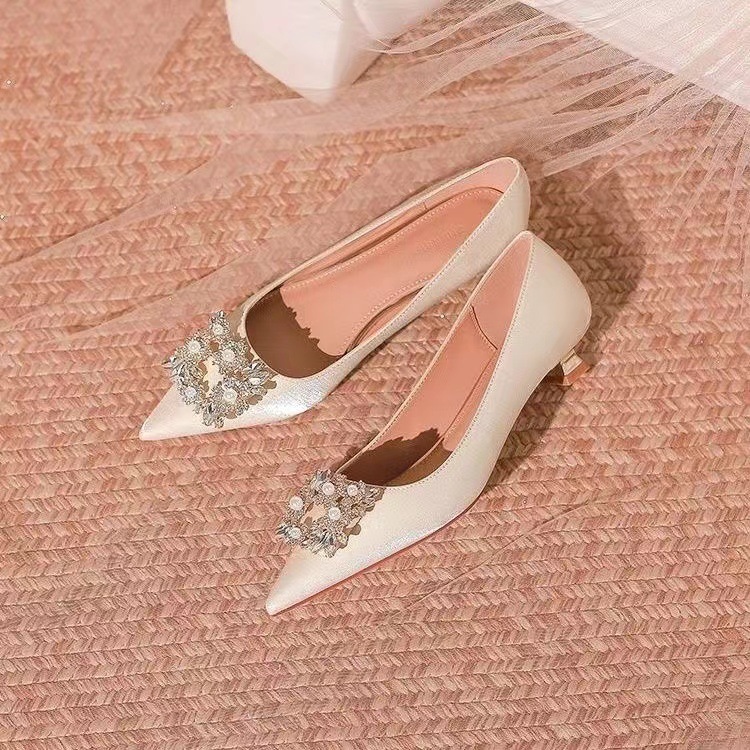 프랑스 기질 연예인 뾰족한 발가락 싱글 신발 여성 저발 약혼 원피스 지치지 않는 신부 들러리 신발 임산부 웨딩 신발