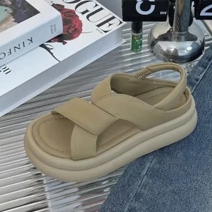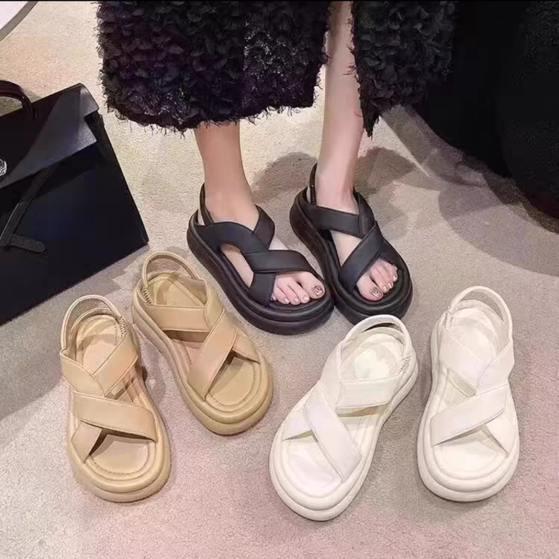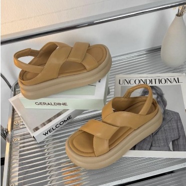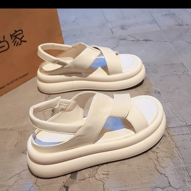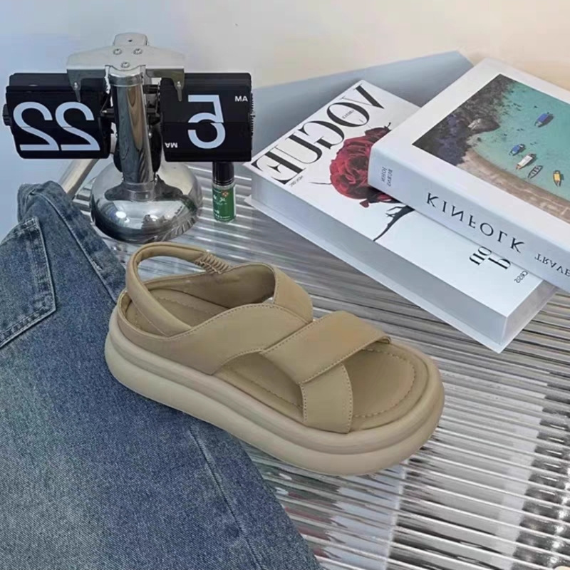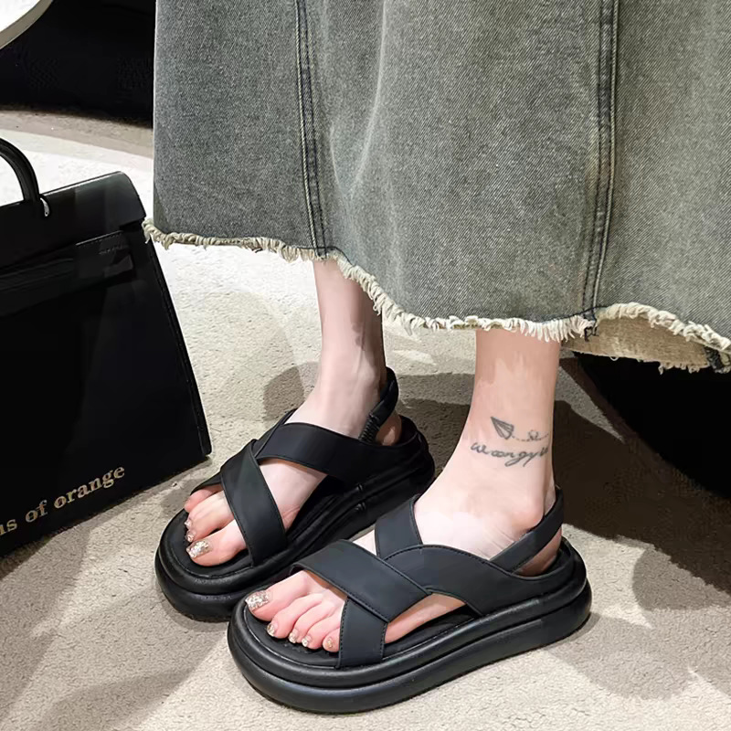 두꺼운 솔리드 솔리드 컬러 샌들 2025 봄과 여름 새로운 한국 버전의 탄성 스트랩 여성 신발 캐주얼 휴가 비치 슈즈스토어 가기