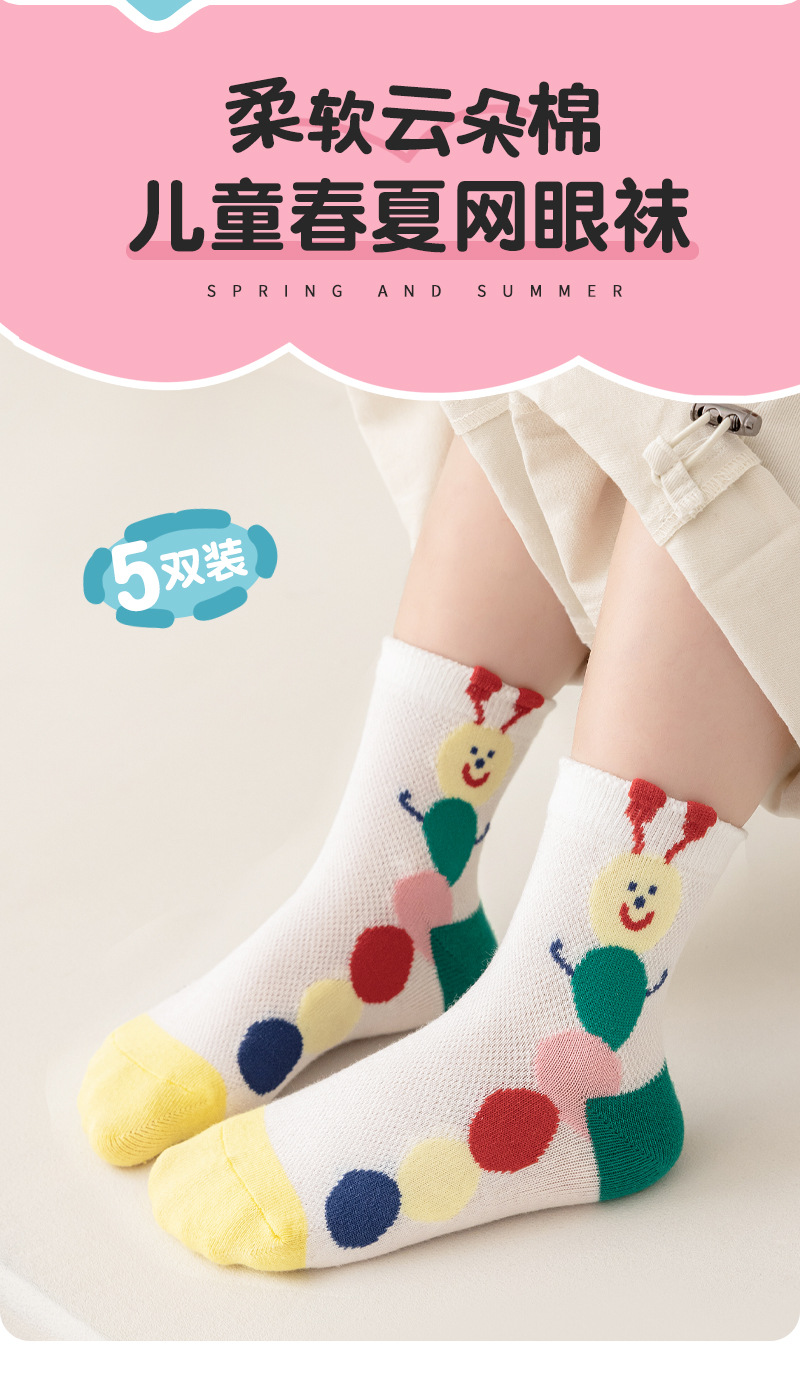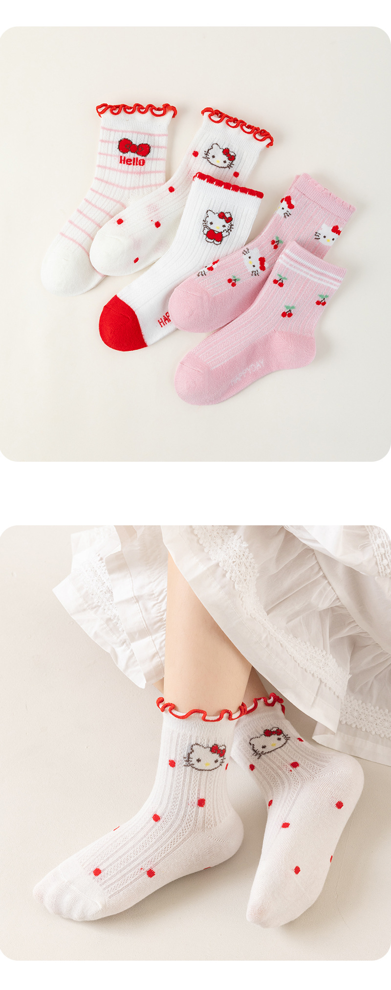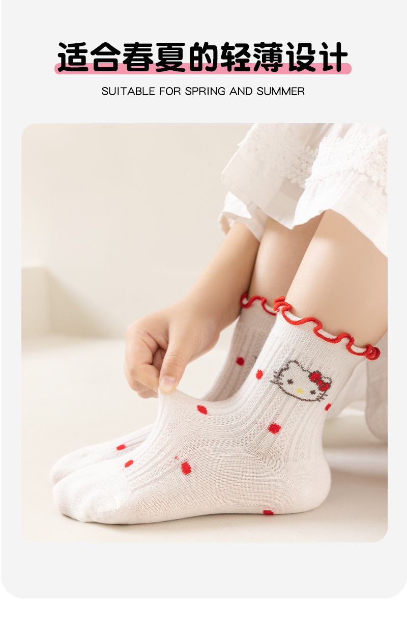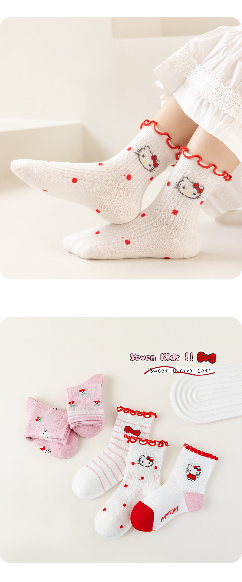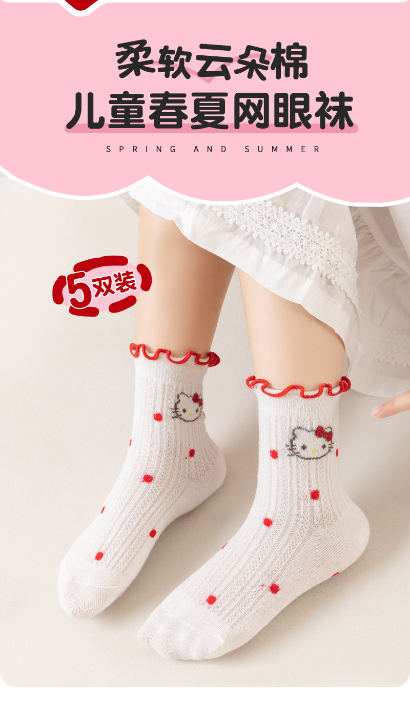 어린이 양말 도매 무료배송 2026 봄 여름 신상 메쉬 카툰 체리 고양이 프릴 장식 여아 중목 양말