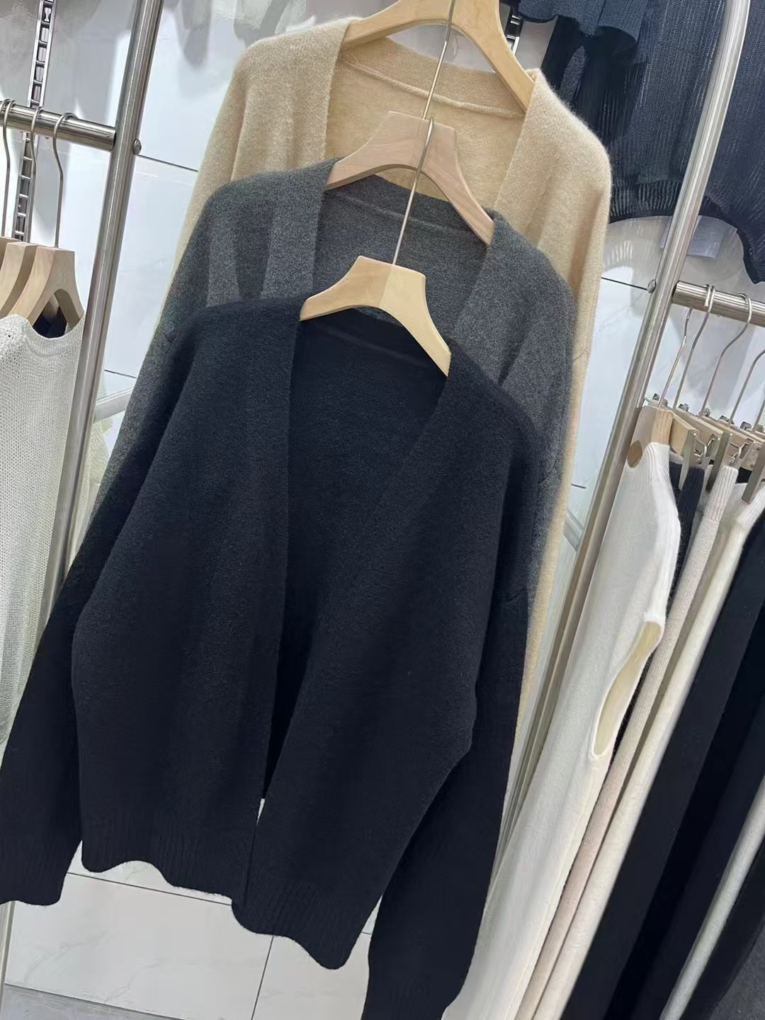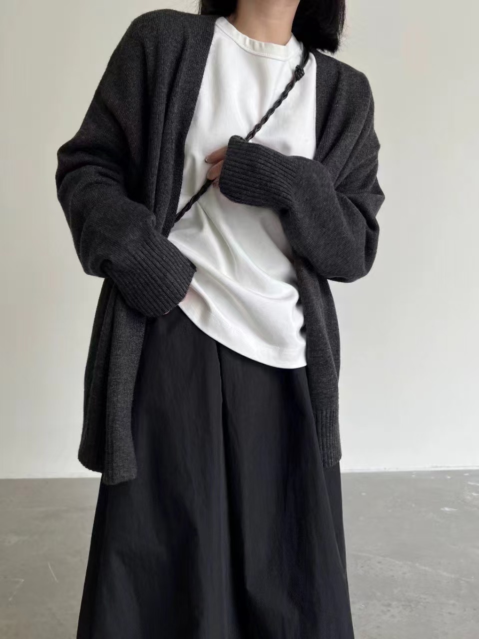 대외 무역 새로운 단색 캐주얼 게으른 스타일 느슨한 긴팔 니트 카디건 여성을위한 간단한 올 매치 버클 프리 스웨터 재킷