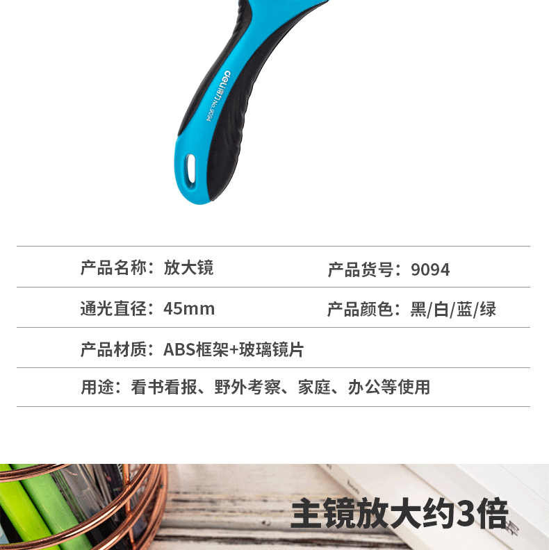 델리 9094 돋보기 휴대용 3 배 오래된 신문 독서 어린이 관찰 유리 도매스토어 가기