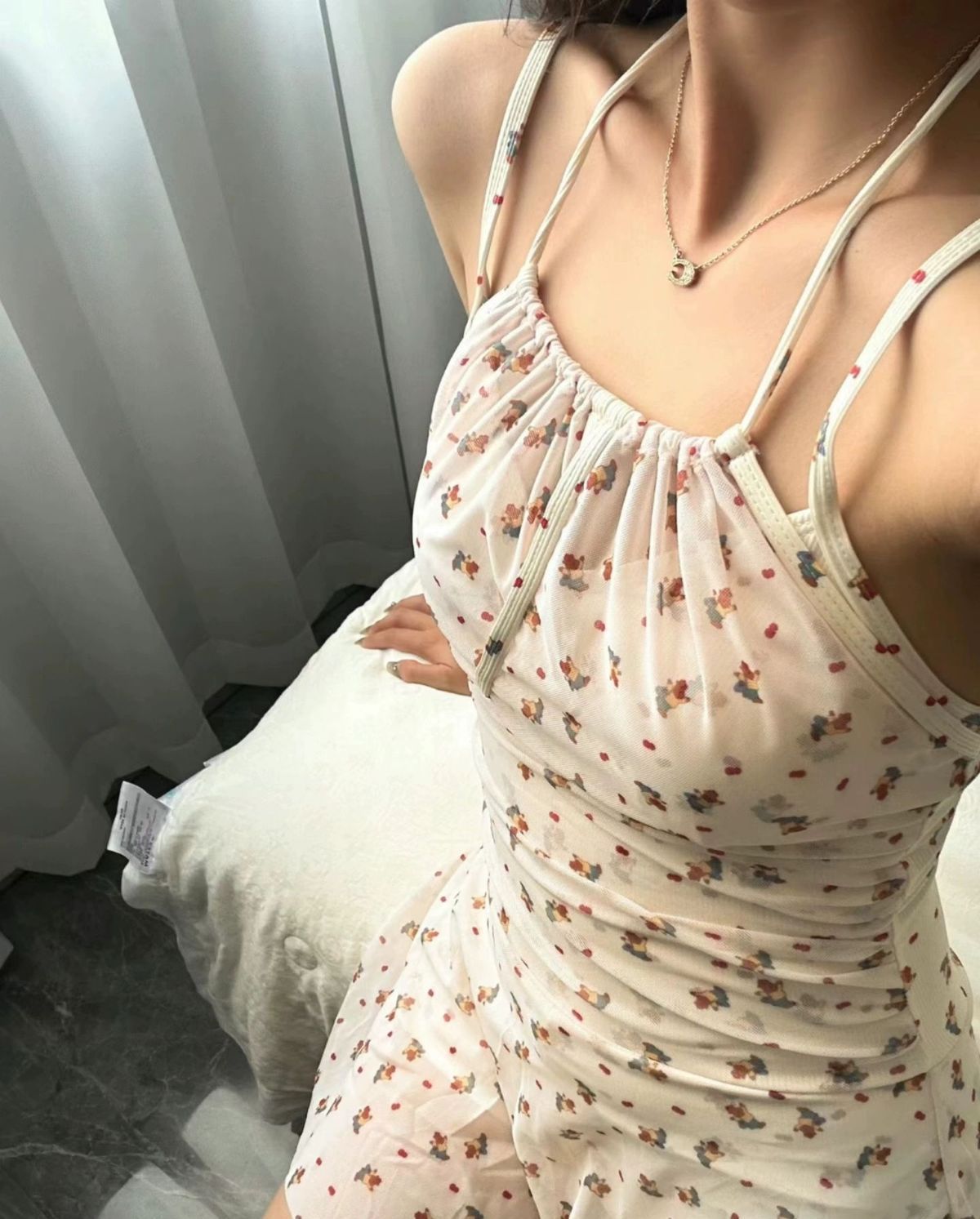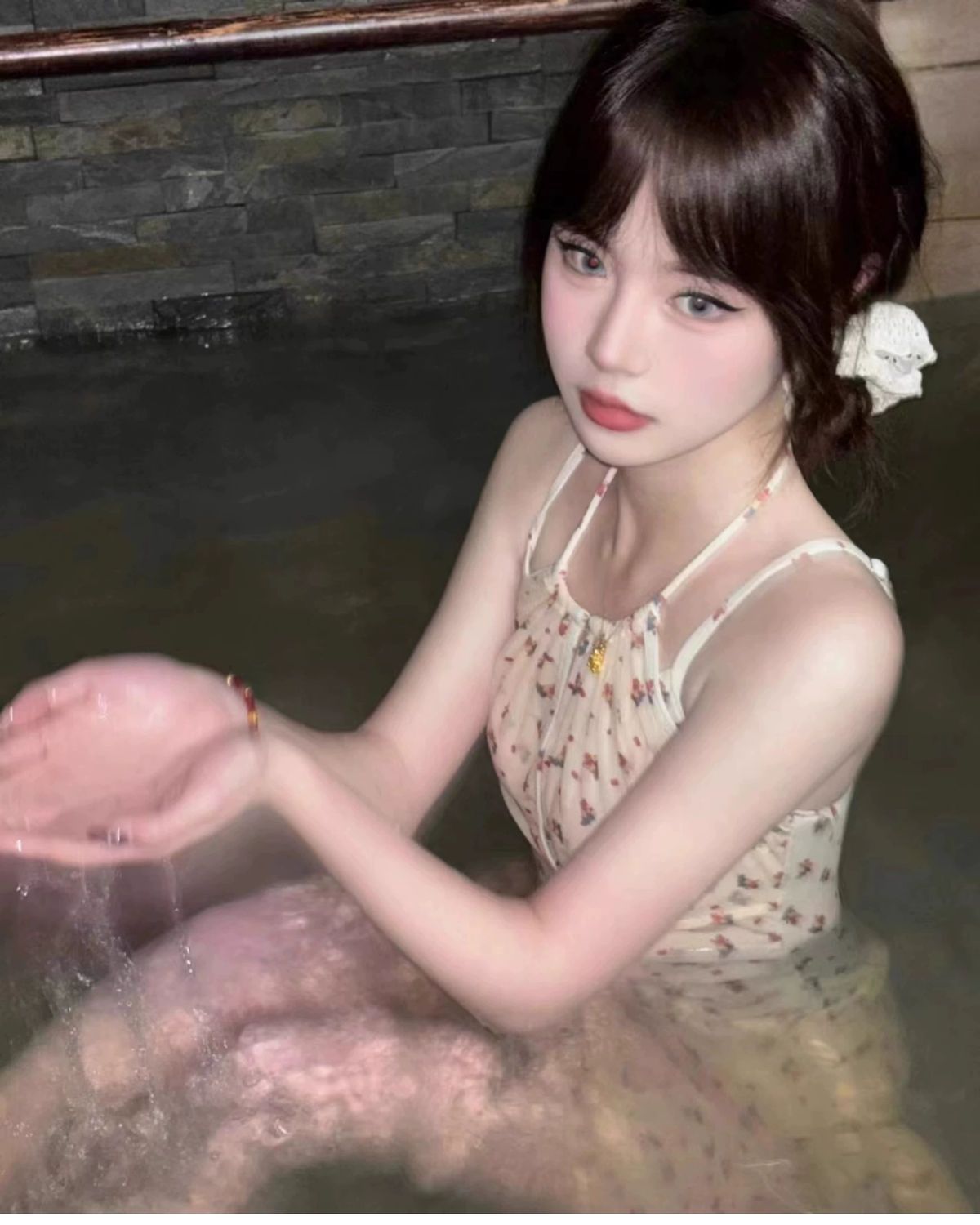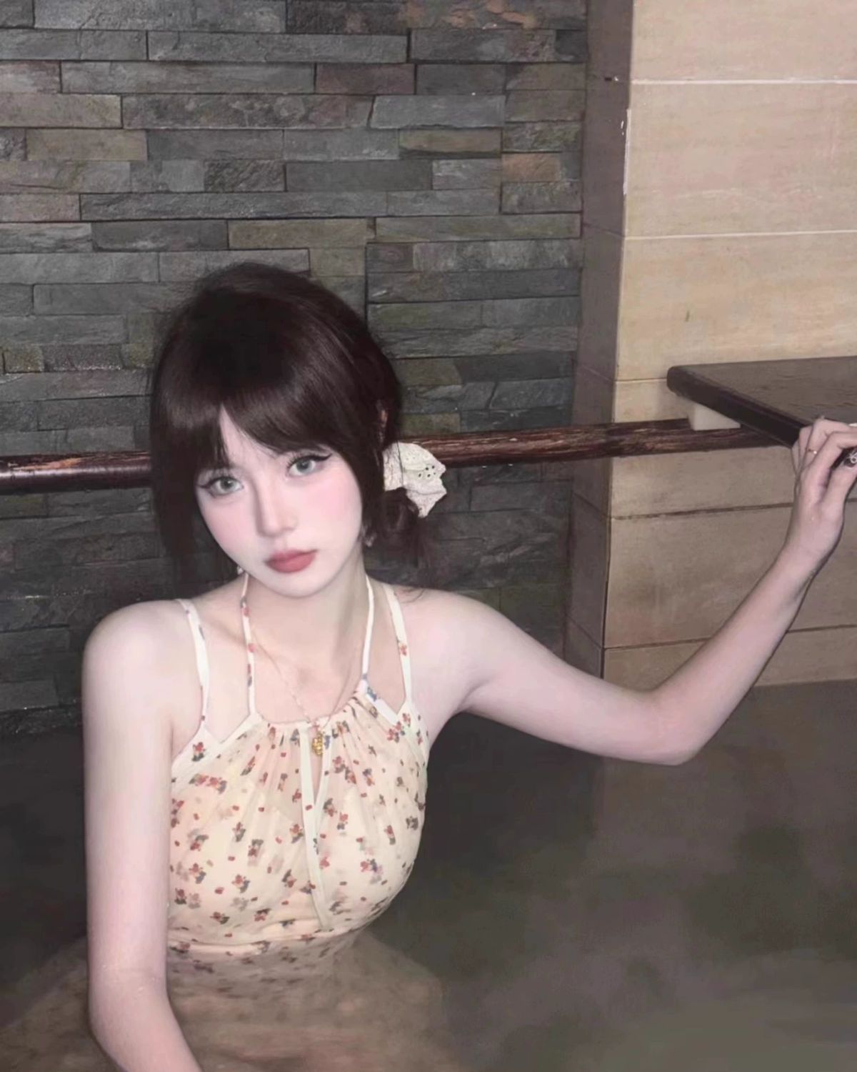 한국 2025 새로운 폭발 수영복 여성 원피스 스커트 스타일 신선하고 섹시한 순수한 욕망 바람 꽃 목 온천스토어 가기