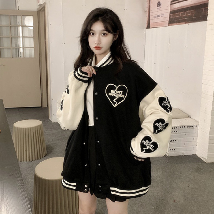 스웨트 셔츠 여자의 2024 새로운 유행 서양식 야구 세트 가을과 겨울 하라주쿠 자켓 슬리밍 탑 트렌디 쇼트 코트스토어 가기