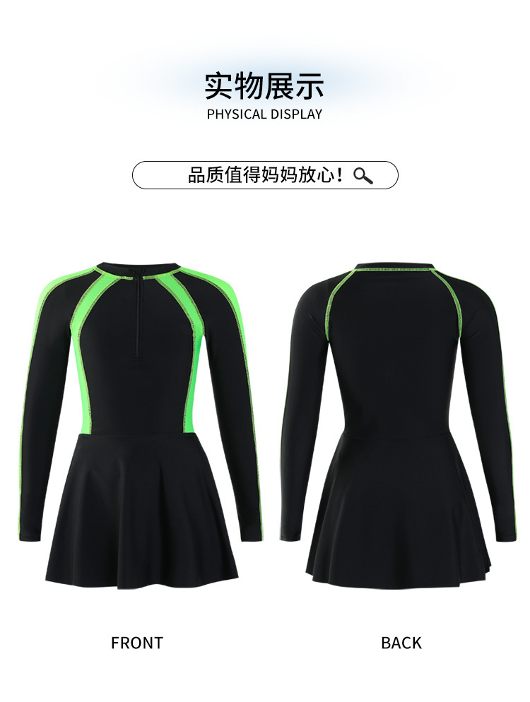수영복 여아 어린이 중학생 바디 스커트 긴 소매 태양 보호 따뜻한 스포츠 전문 교육 온천스토어 가기