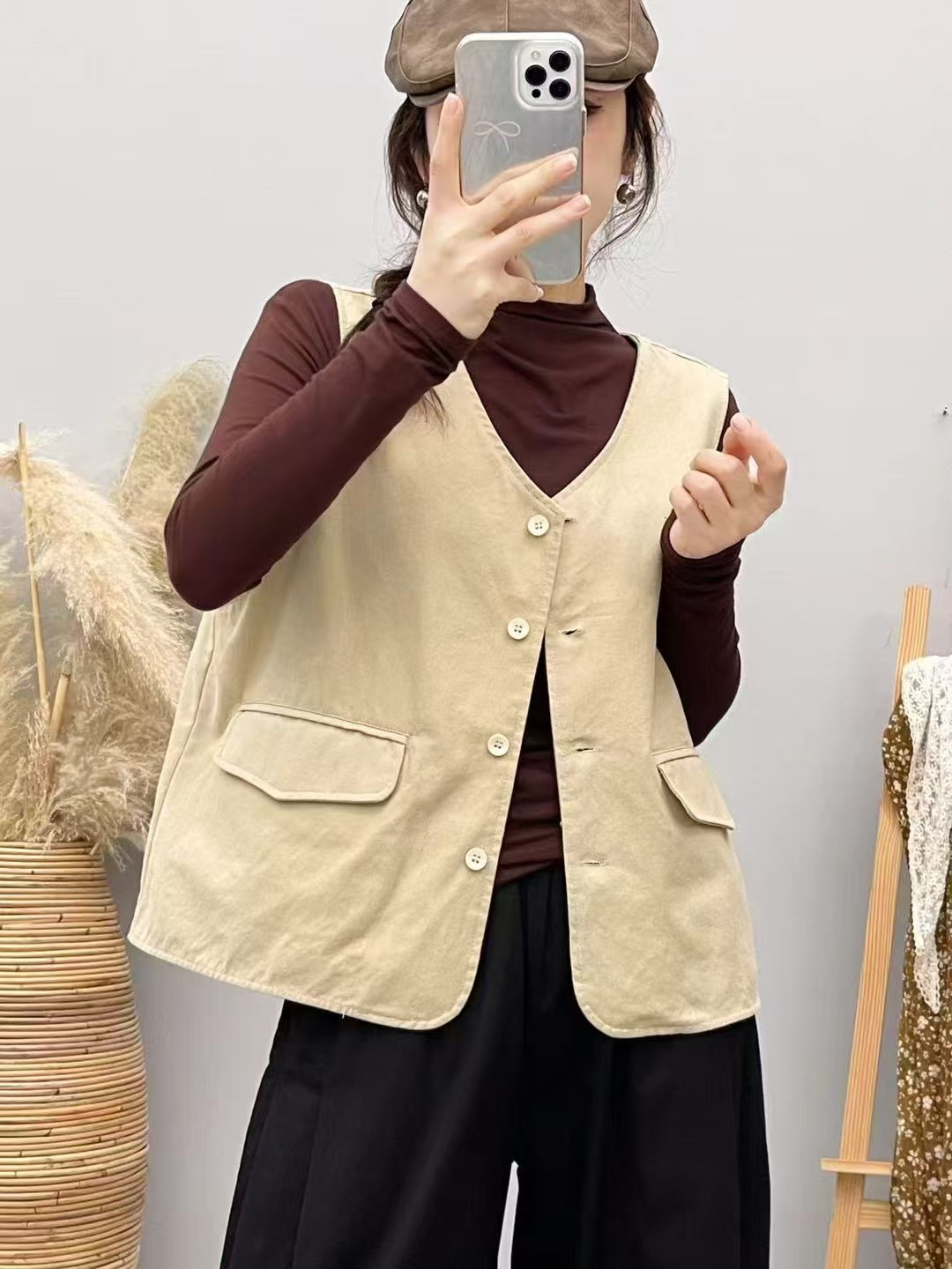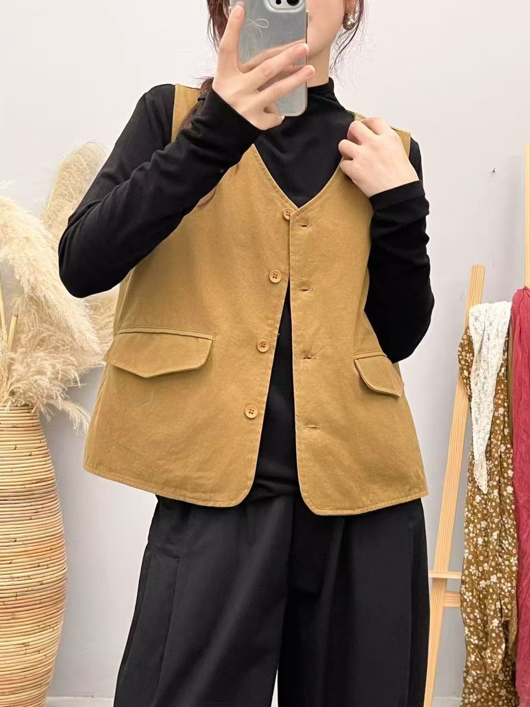 21505 Gaoke Heavy Reporter Vest 여자 2025 봄 새로운 3 차원 스타일 레저 일본 올 매치 조끼스토어 가기