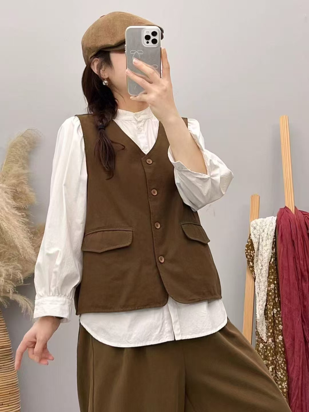 21505 Gaoke Heavy Reporter Vest 여자 2025 봄 새로운 3 차원 스타일 레저 일본 올 매치 조끼