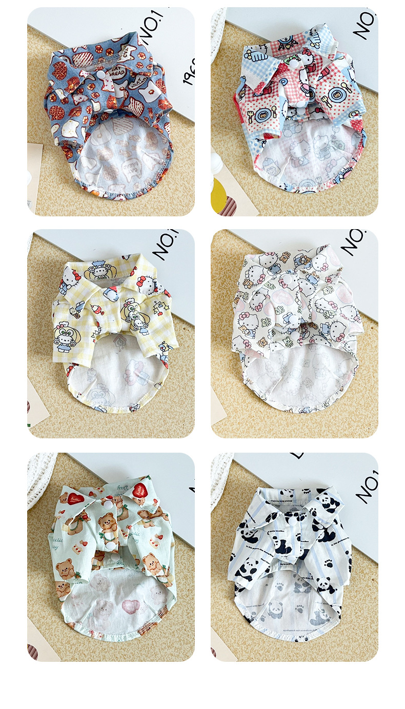 애완 동물 옷 개 봄과 여름면 귀여운 만화 셔츠 피부 친화적 인 통기성 중소 개 셔츠 얇은