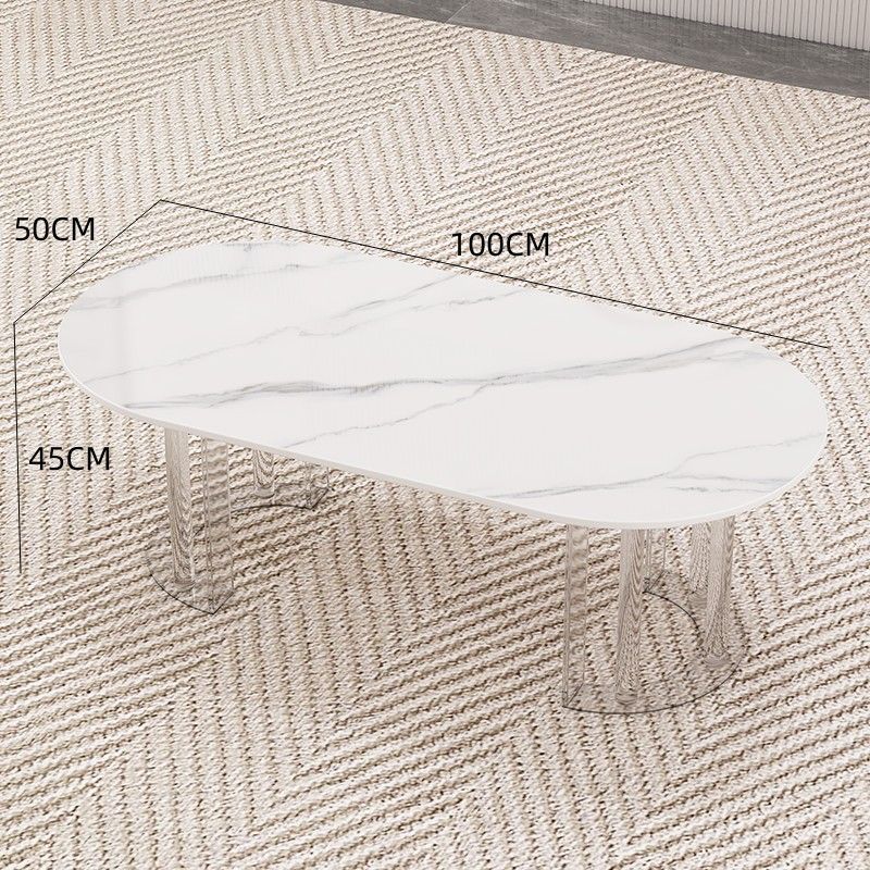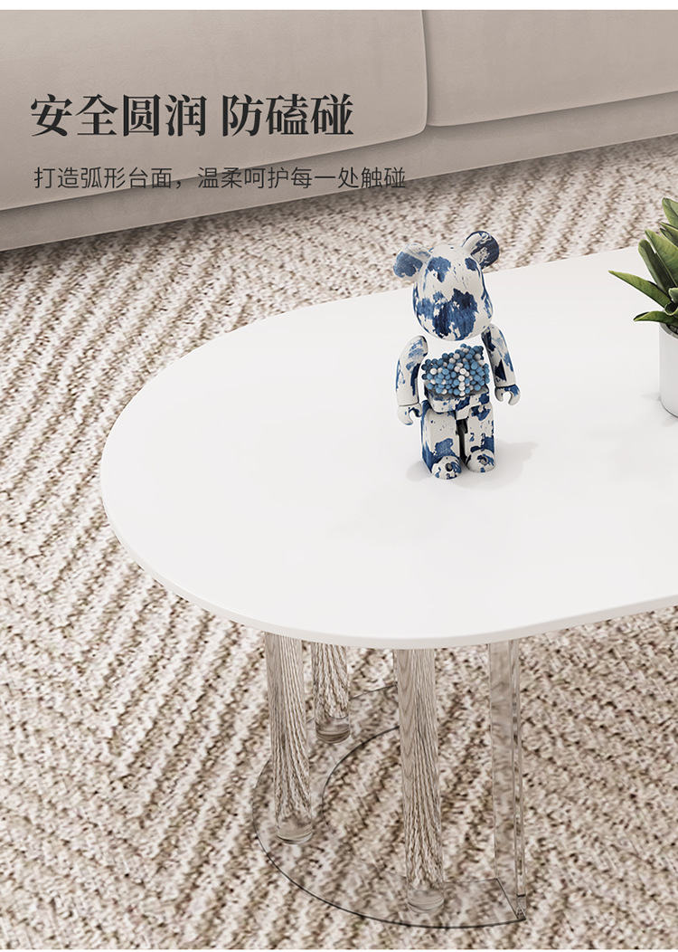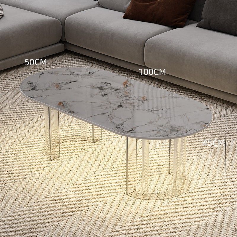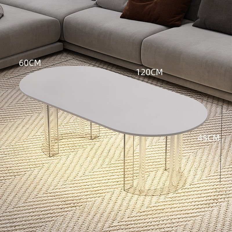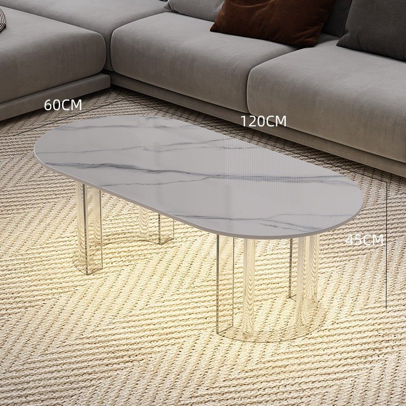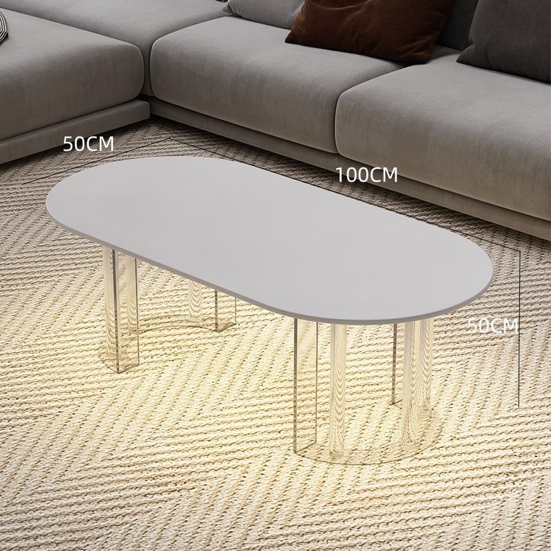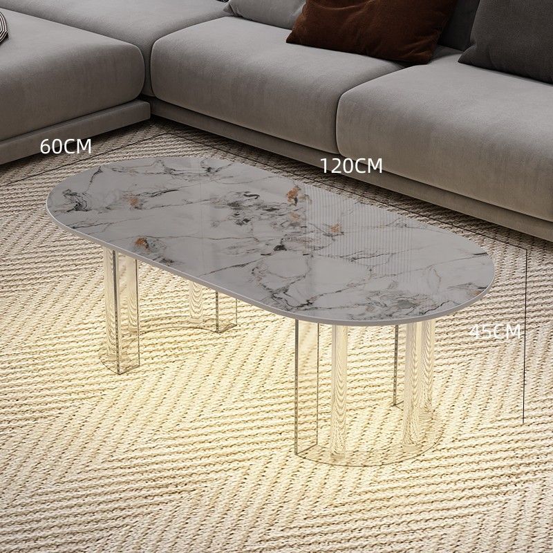 이탈리아 라이트 럭셔리 크림 스타일 현대 가정용 아크릴 서스펜션 타원형 거실 순수한 화이트 록 플레이트 커피 테이블 새로운 스타일