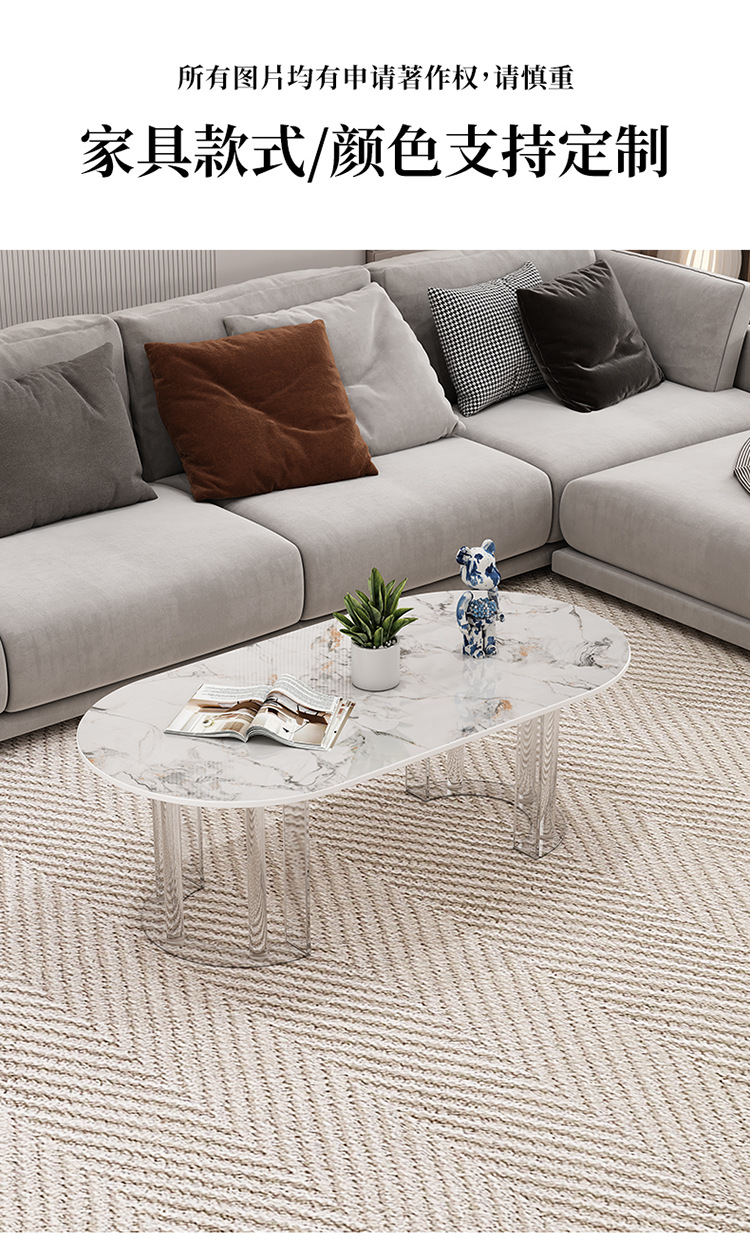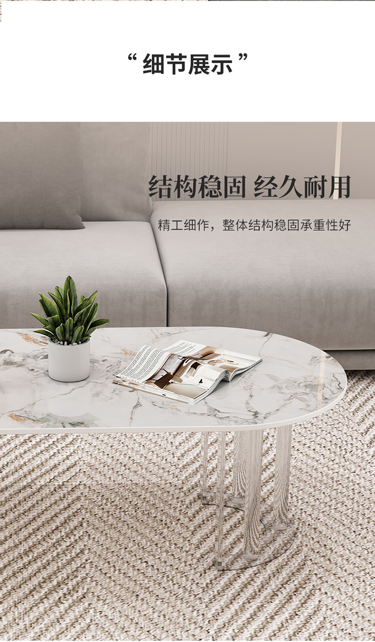 이탈리아 라이트 럭셔리 크림 스타일 현대 가정용 아크릴 서스펜션 타원형 거실 순수한 화이트 록 플레이트 커피 테이블 새로운 스타일스토어 가기
