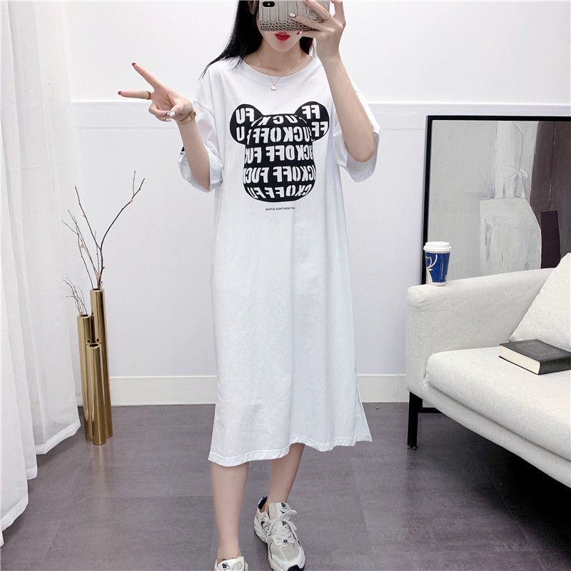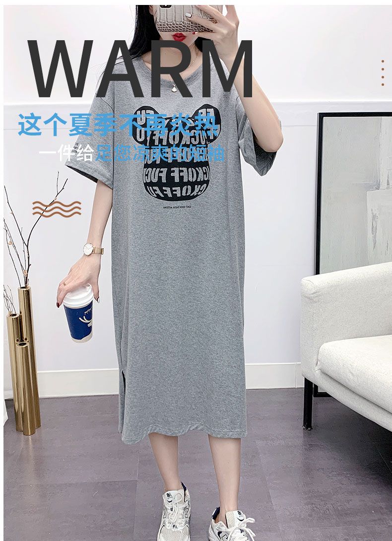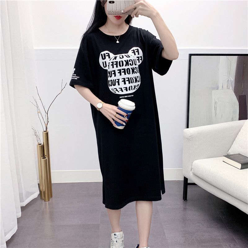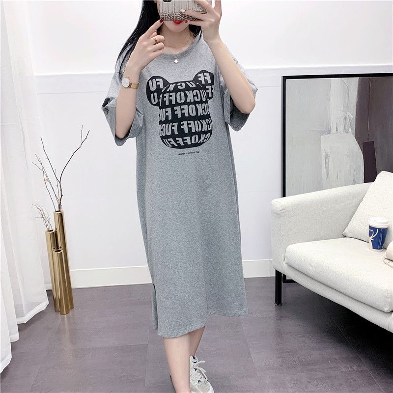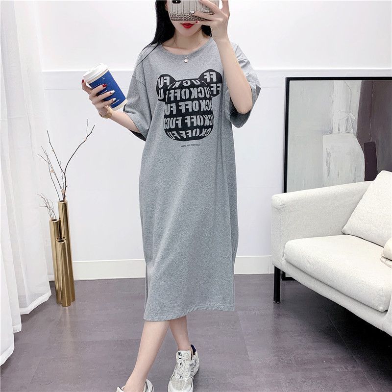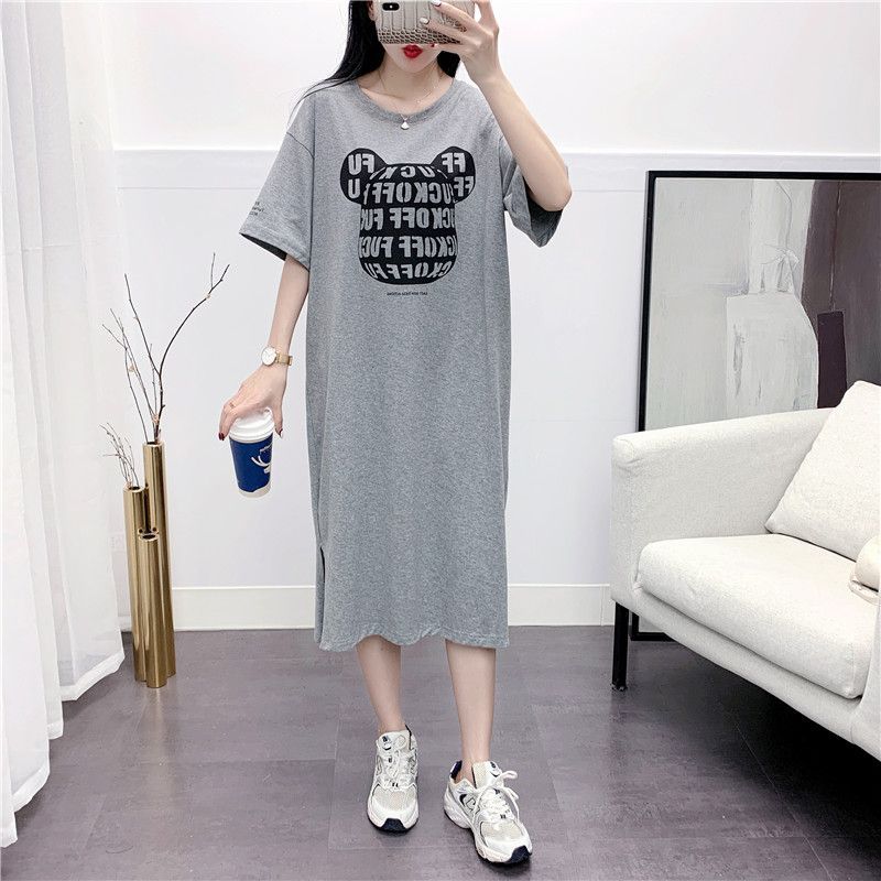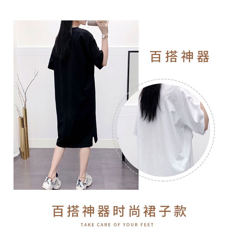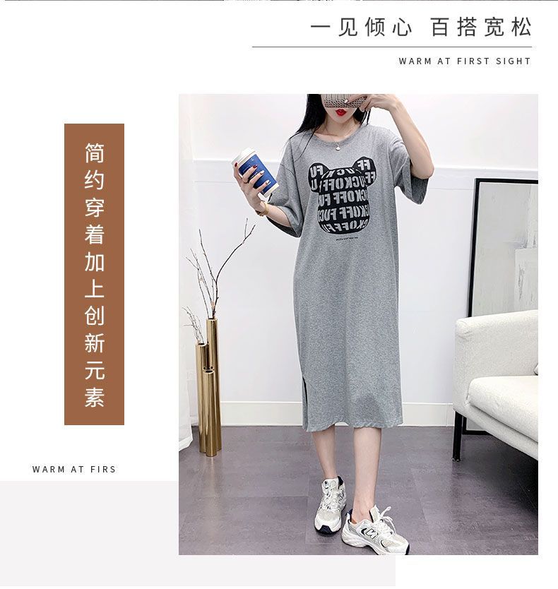 코튼 원피스 임산부 반팔 티셔츠 여성의 2025 여름 느슨한 플러스 사이즈 중간 길이의 캐주얼 게으른 원피스스토어 가기