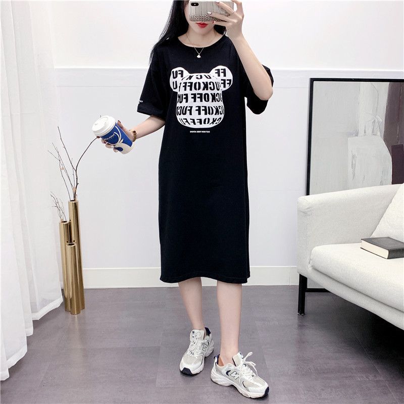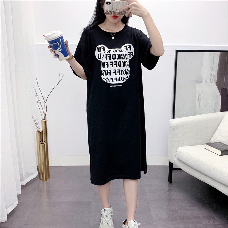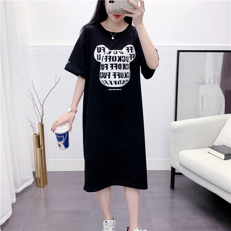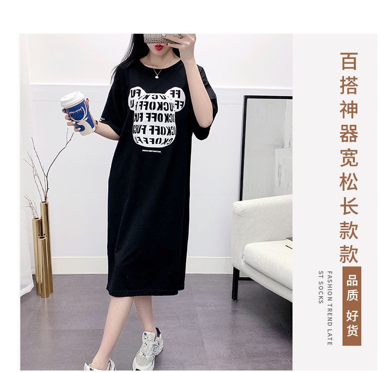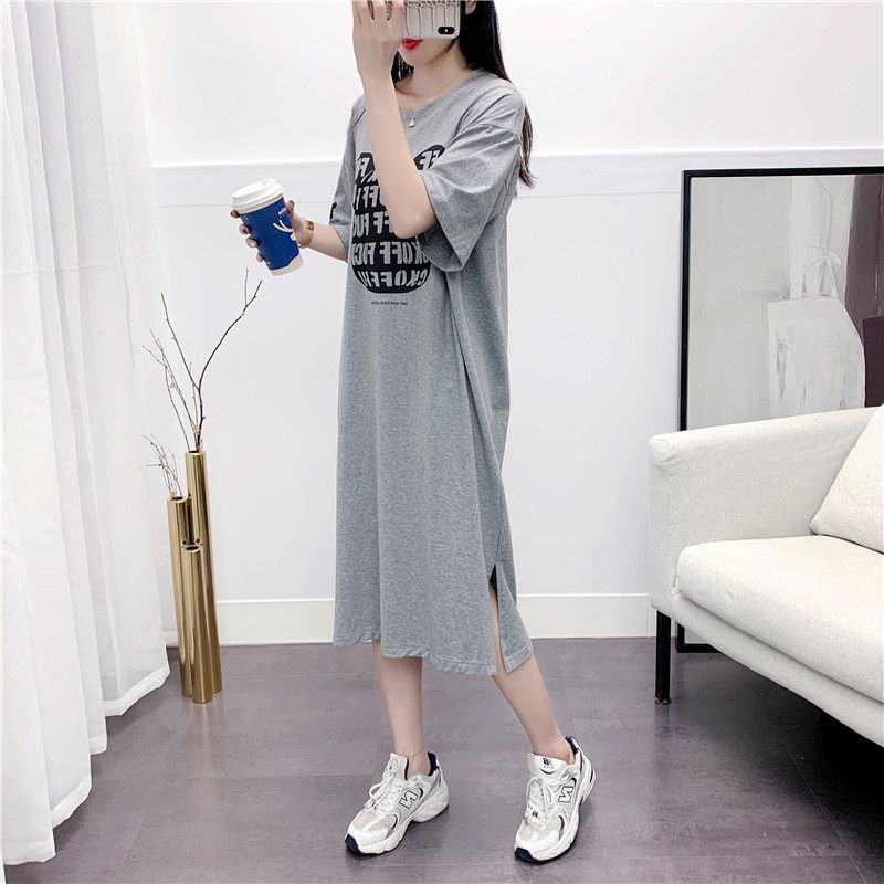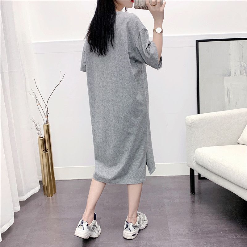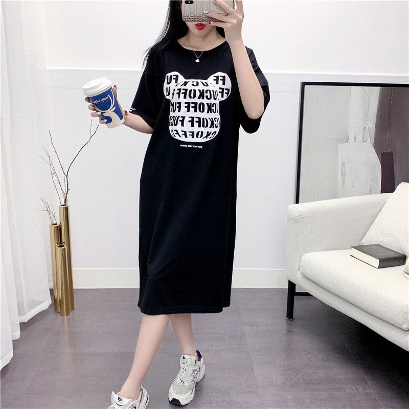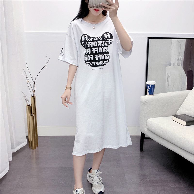 코튼 원피스 임산부 반팔 티셔츠 여성의 2025 여름 느슨한 플러스 사이즈 중간 길이의 캐주얼 게으른 원피스스토어 가기